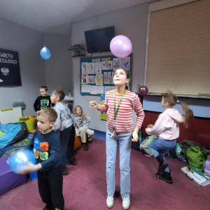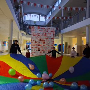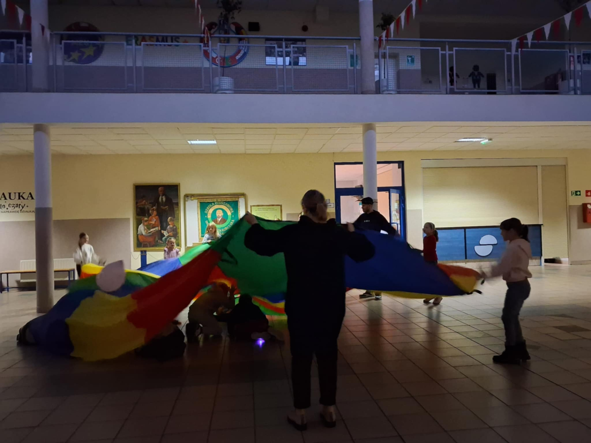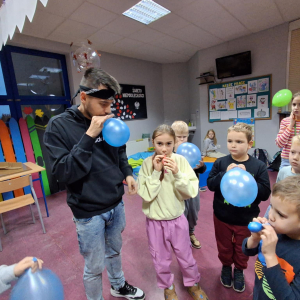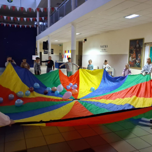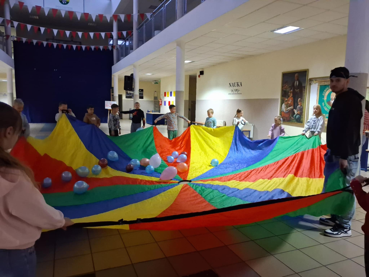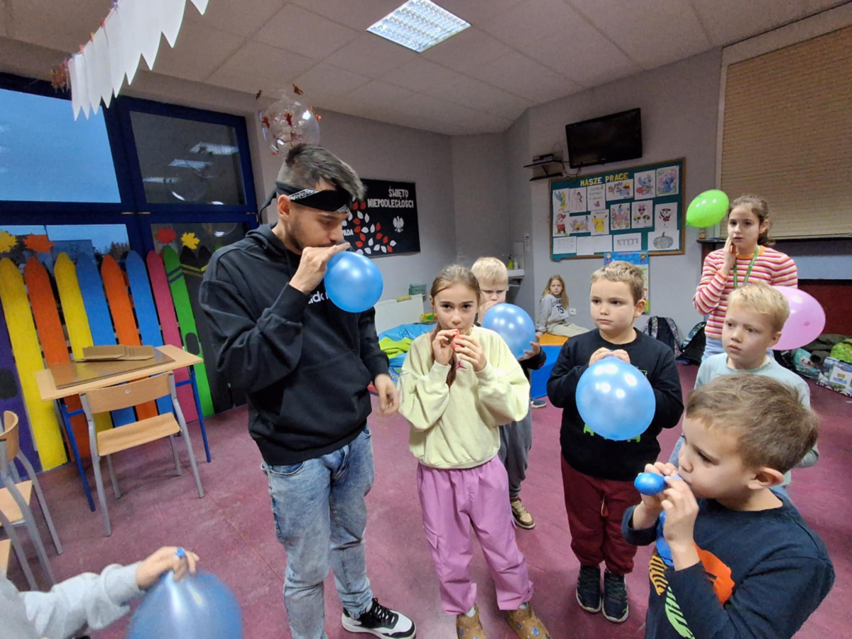 Wychowawcy dużej świetlicy szkolnej zorganizowali Dzień Balonów. W takcie zajęć dzieci samodzielnie dmuchały balony, były zabawy z balonami przy użyciu chusty animacyjnej. Celem zajęć była integracja dzieci w świetlicy.