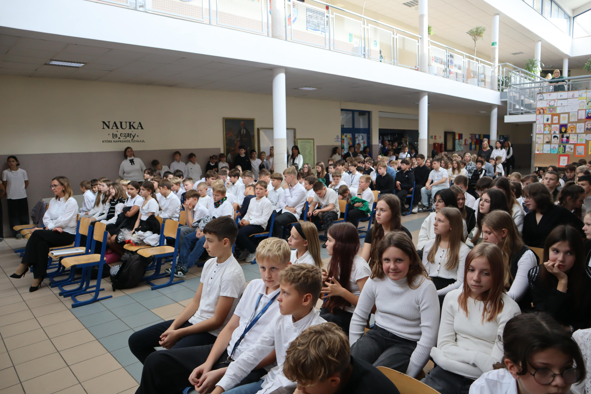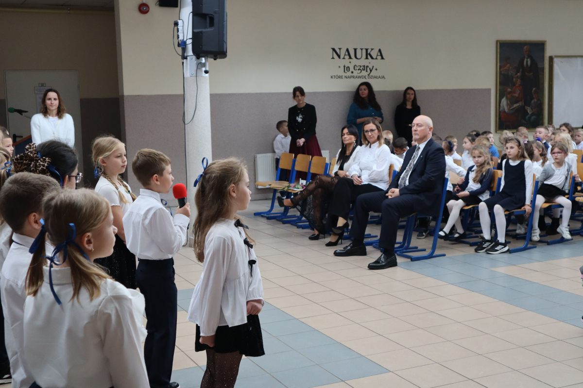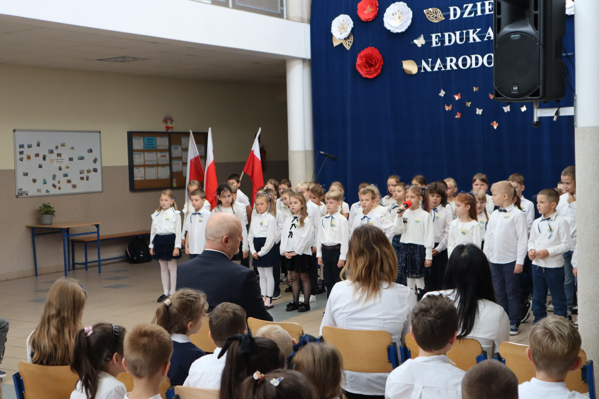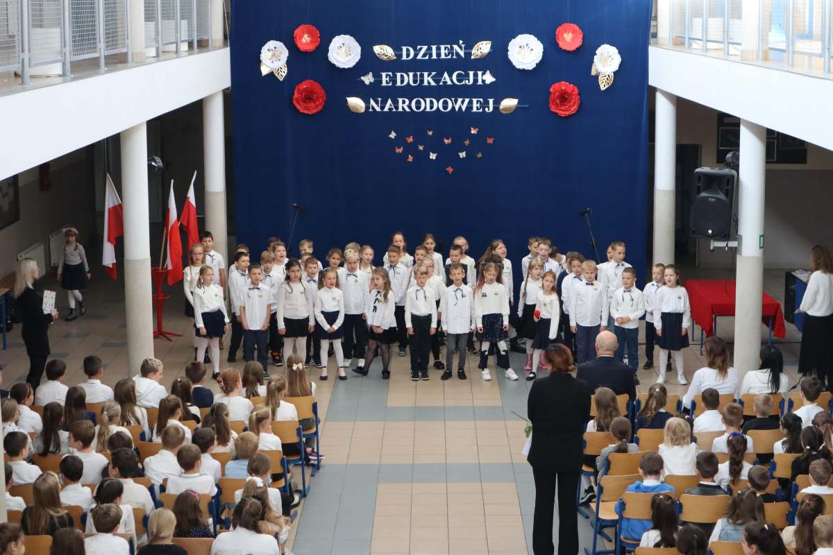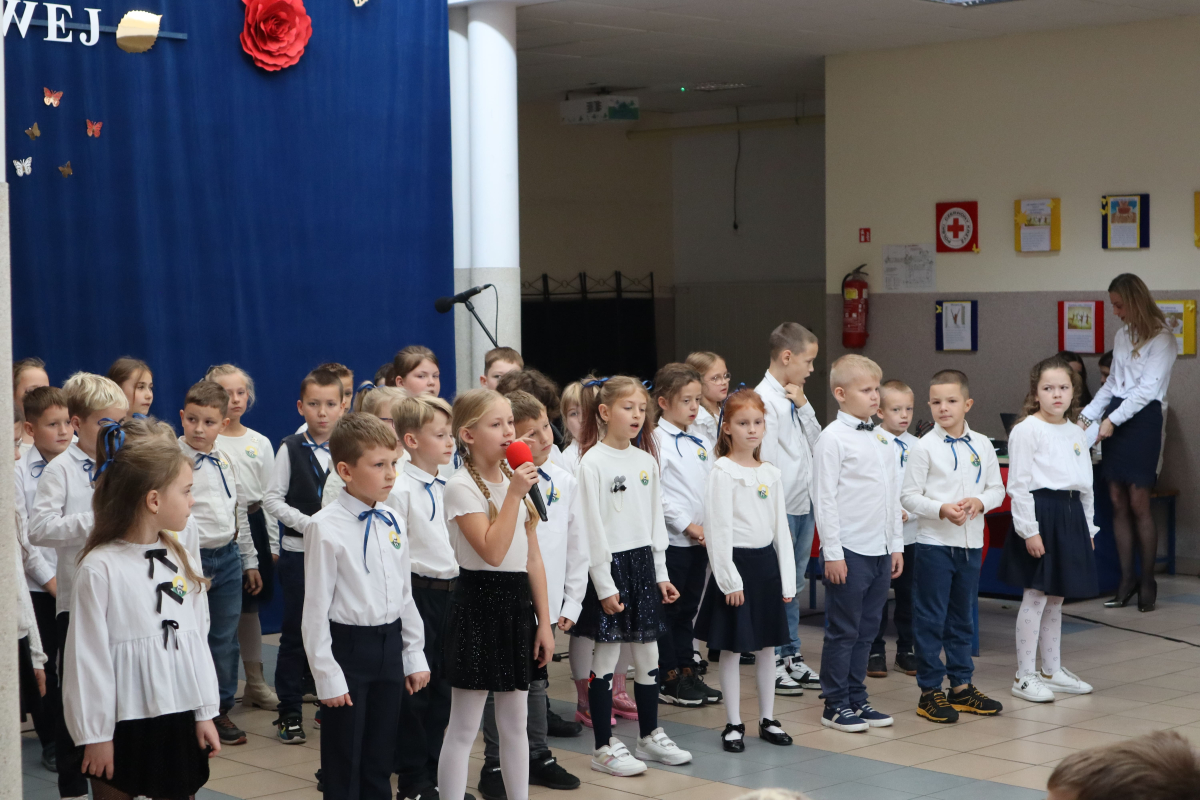 Młodsi uczniowie z wielkim sercem i zaangażowaniem zaprezentowali niezwykle wzruszające widowisko, które przeniosło nas przez historię polskiej edukacji – od czasów Komisji Edukacji Narodowej po współczesną szkołę.