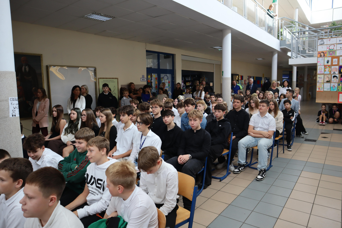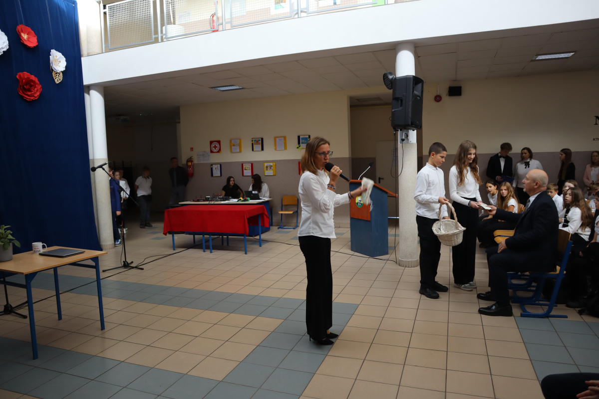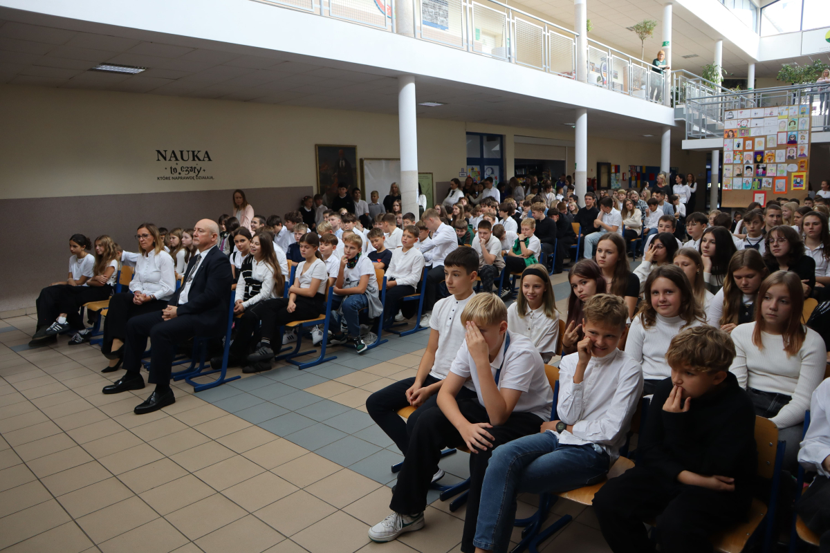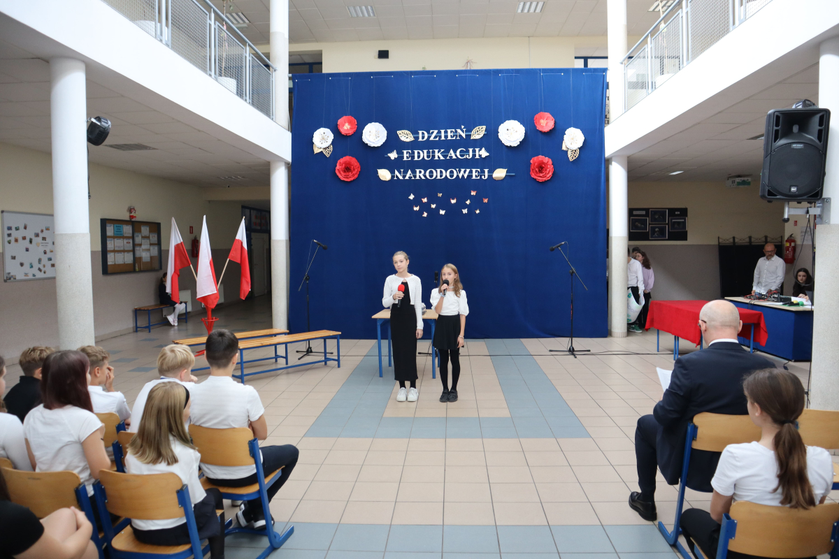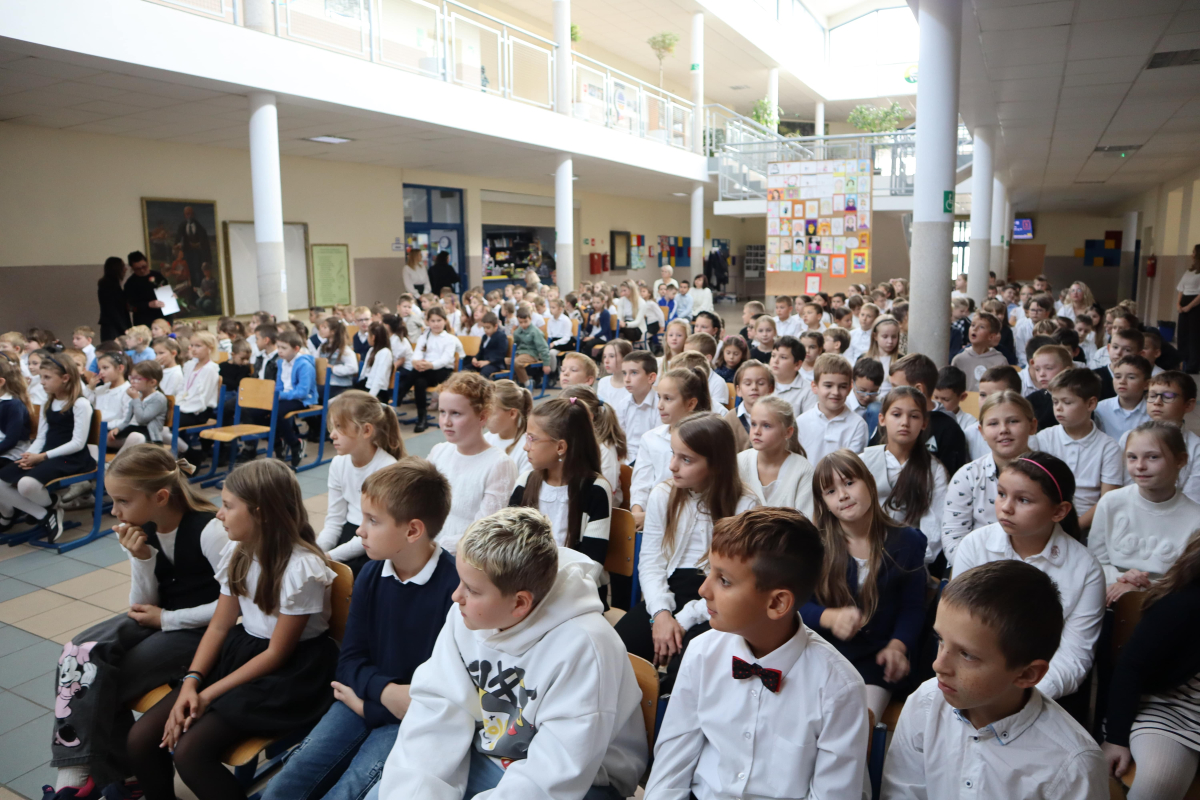 Młodsi uczniowie z wielkim sercem i zaangażowaniem zaprezentowali niezwykle wzruszające widowisko, które przeniosło nas przez historię polskiej edukacji – od czasów Komisji Edukacji Narodowej po współczesną szkołę.