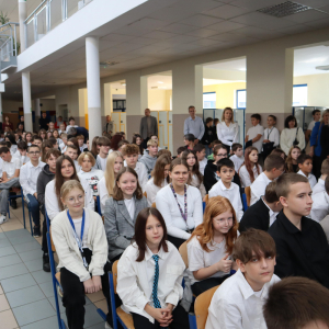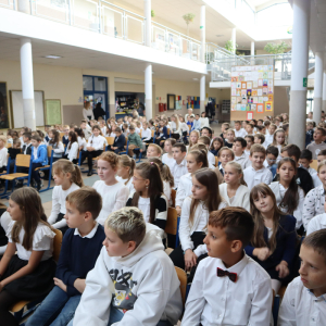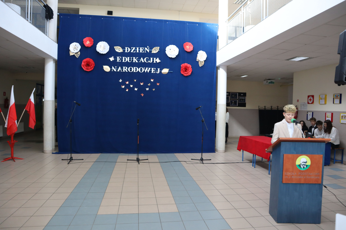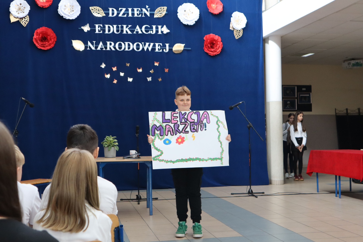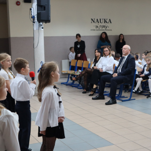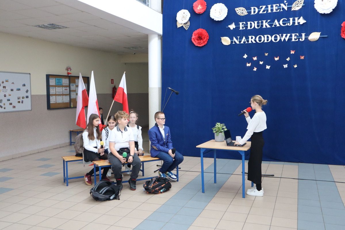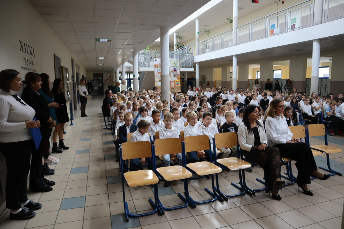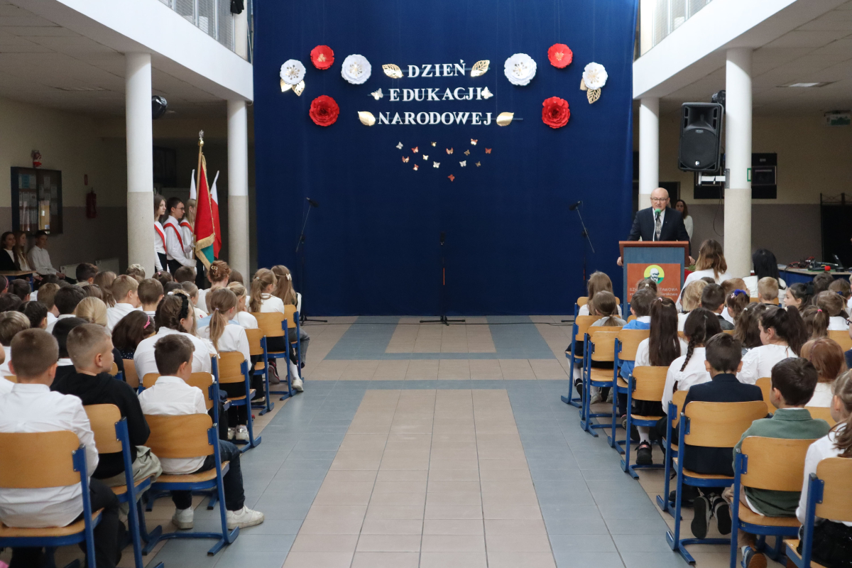 Młodsi uczniowie z wielkim sercem i zaangażowaniem zaprezentowali niezwykle wzruszające widowisko, które przeniosło nas przez historię polskiej edukacji – od czasów Komisji Edukacji Narodowej po współczesną szkołę.
