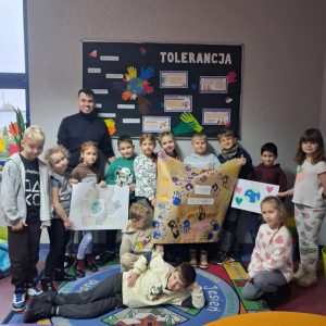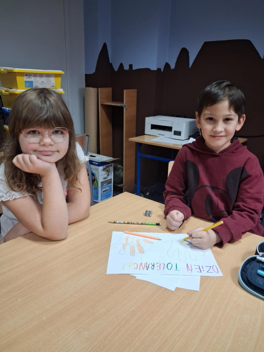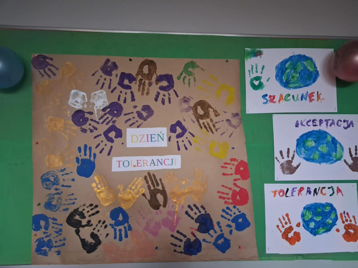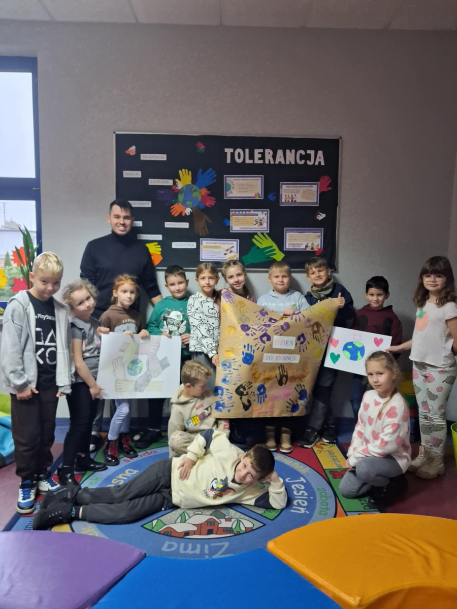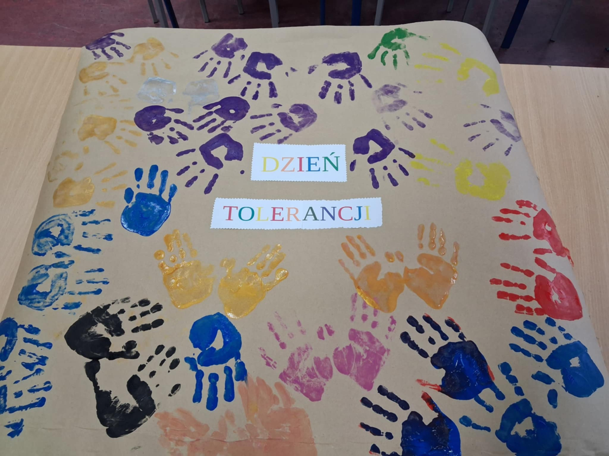 Wychowawcy świetlicy szkolnej zorganizowali zajęcia dla dzieci z okazji Dnia Tolerancji. Uczniowie obejrzeli film edukacyjny, który przybliżył im znaczenie tolerancji w codziennym życiu. Następnie odcisnęli swoje dłonie na specjalnym plakacie, symbolizującym szacunek i akceptację wobec innych, a także wspólnie wykonali własne plakaty promujące wartości tolerancji. Celem zajęć było przybliżenie uczniom znaczenia tolerancji w szkole oraz na świecie, zwłaszcza w relacjach z drugim człowiekiem. Dzięki tym działaniom dzieci mogły lepiej zrozumieć, jak ważne jest wzajemne poszanowanie i otwartość na różnorodność.