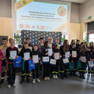 Dziś odbyły się gminne eliminacje Ogólnopolskiego Turnieju Wiedzy Pożarniczej „Młodzież Zapobiega Pożarom”, w którym swoją wiedzę, zaangażowanie i pasję zaprezentowało sześcioro uczniów naszej szkoły. Z dumą informujemy, że dwoje z nich awansowało do etapu powiatowego.