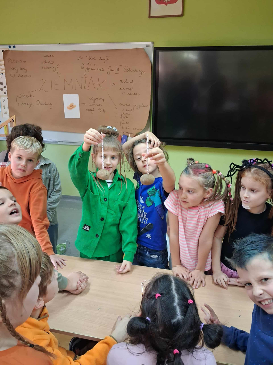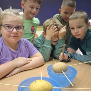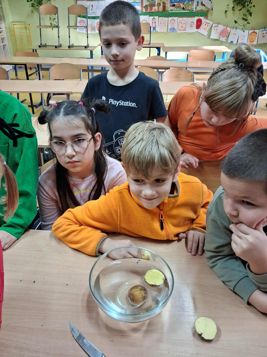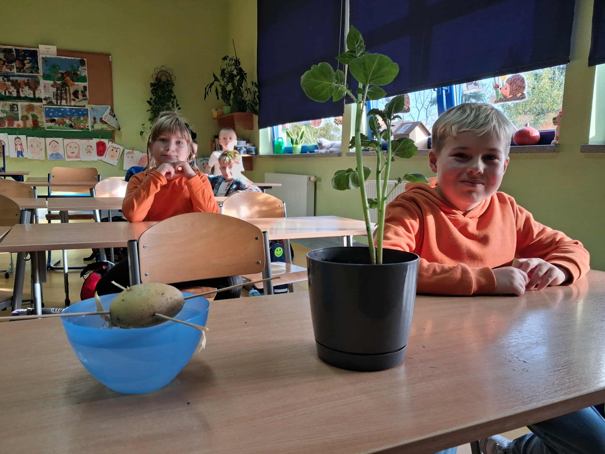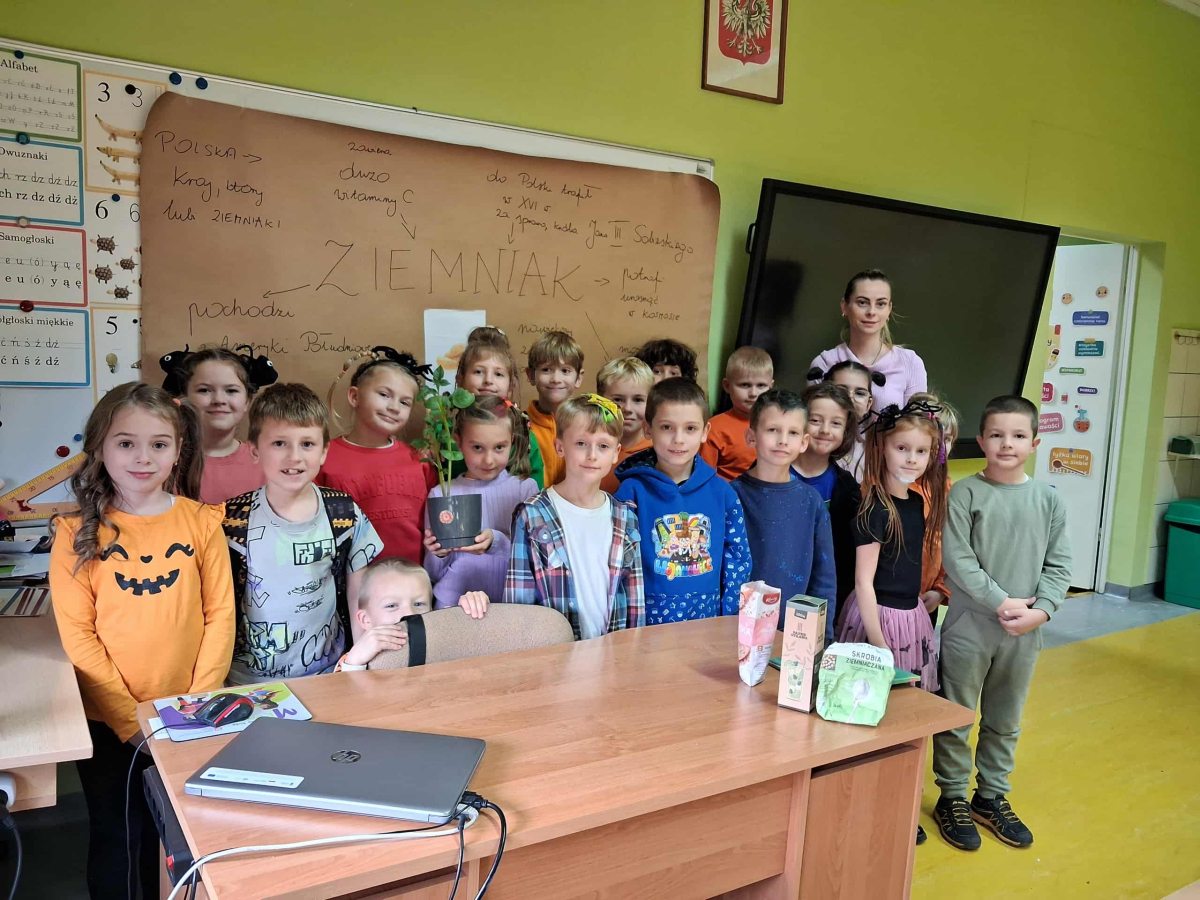 W ostatnich tygodniach tematem przewodnim innowacji pedagogicznej był "ziemniak". Uczniowie zdobyli cenną wiedzę na temat tego warzywa. Dzieci przede wszystkim uczestniczyły w doświadczeniach, których celem było zaobserwowanie różnego rodzaju zjawisk przyrodniczych, fizycznych oraz chemicznych. Wspólnie z uczniami posadzono ziemniaki w doniczce. Dzieci także brały udział w różnorodnych doświadczeniach, podczas których mogły: wydrążyć "studnię" w ziemniaku, odkryć tajemnicę skrobi, przebić ziemniaka papierową słomką, "nauczyć ziemniaka pływać" oraz "wykiełkować ziemniaka". Eksperymenty "cieszyły się" dużym zainteresowaniem wśród uczniów. C.d.n.
