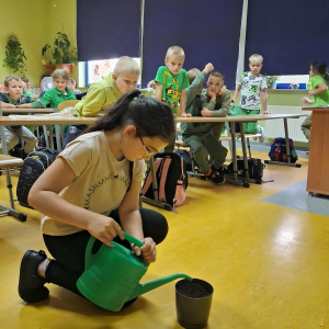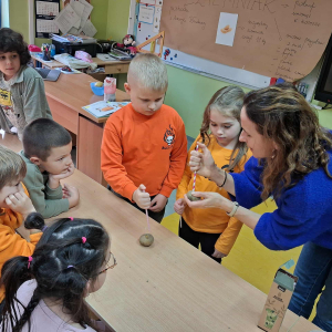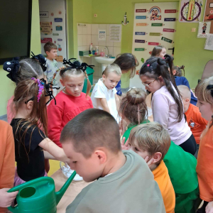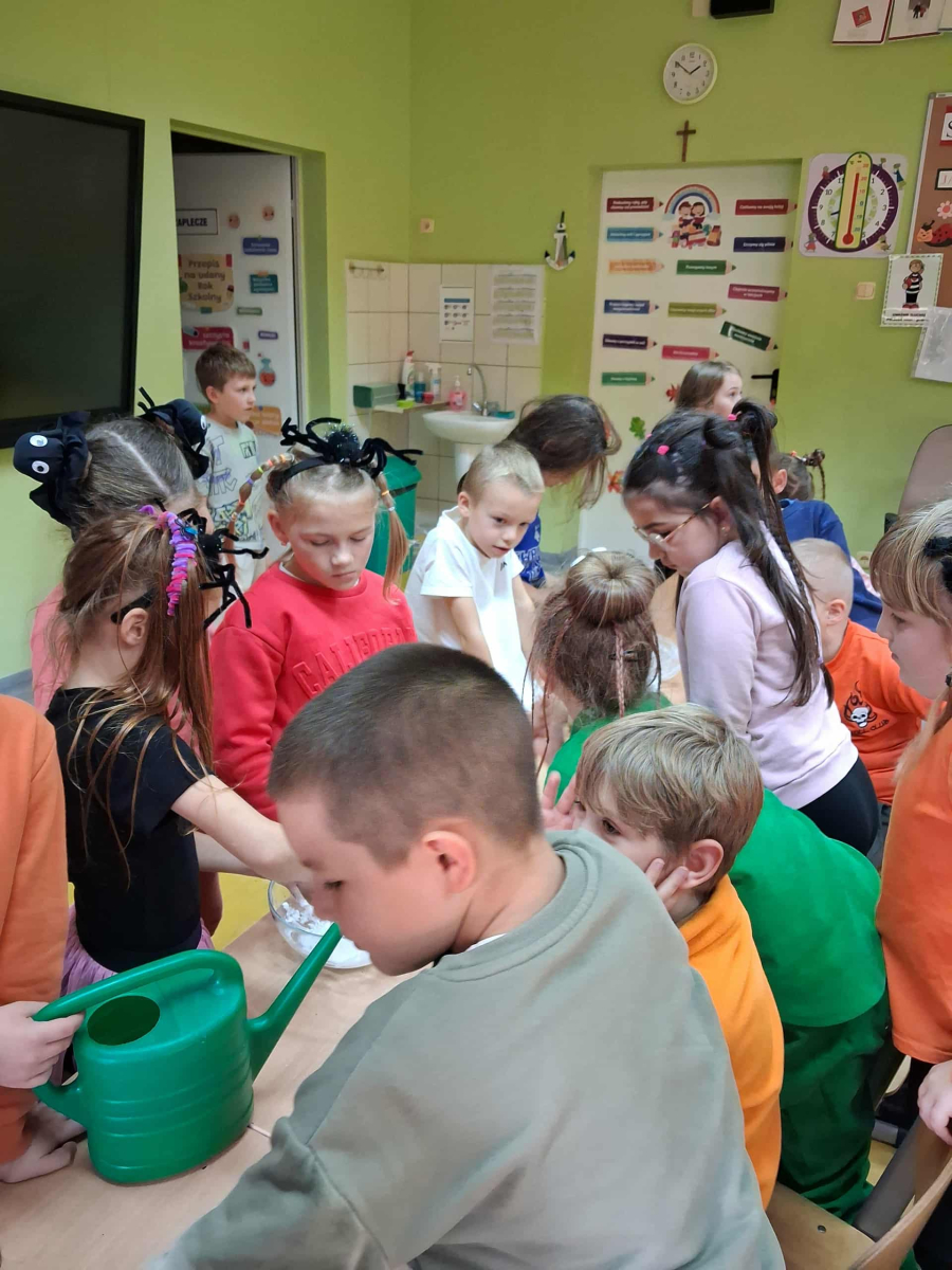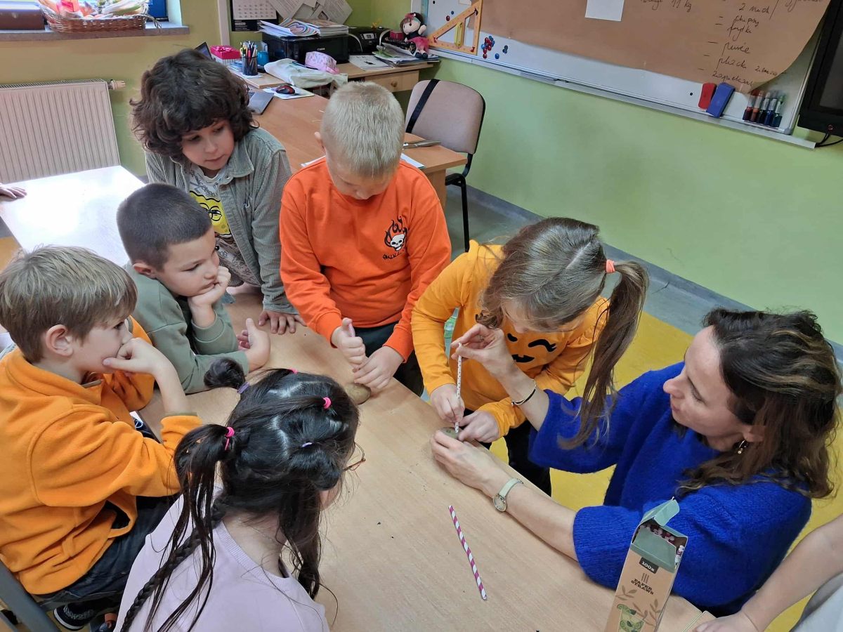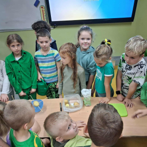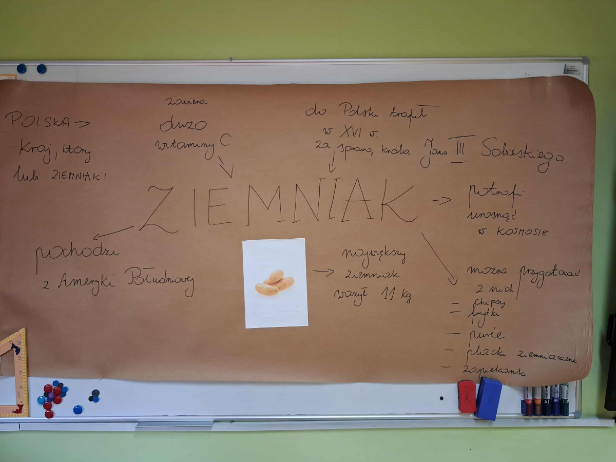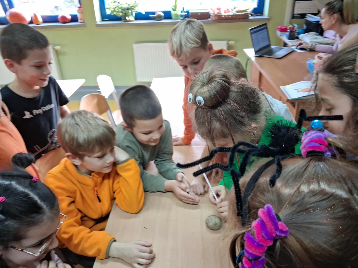 W ostatnich tygodniach tematem przewodnim innowacji pedagogicznej był "ziemniak". Uczniowie zdobyli cenną wiedzę na temat tego warzywa. Dzieci przede wszystkim uczestniczyły w doświadczeniach, których celem było zaobserwowanie różnego rodzaju zjawisk przyrodniczych, fizycznych oraz chemicznych. Wspólnie z uczniami posadzono ziemniaki w doniczce. Dzieci także brały udział w różnorodnych doświadczeniach, podczas których mogły: wydrążyć "studnię" w ziemniaku, odkryć tajemnicę skrobi, przebić ziemniaka papierową słomką, "nauczyć ziemniaka pływać" oraz "wykiełkować ziemniaka". Eksperymenty "cieszyły się" dużym zainteresowaniem wśród uczniów. C.d.n.