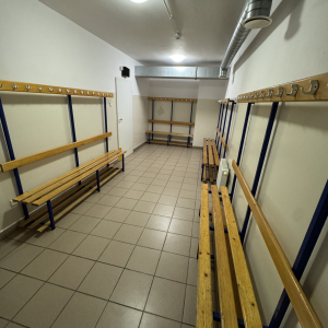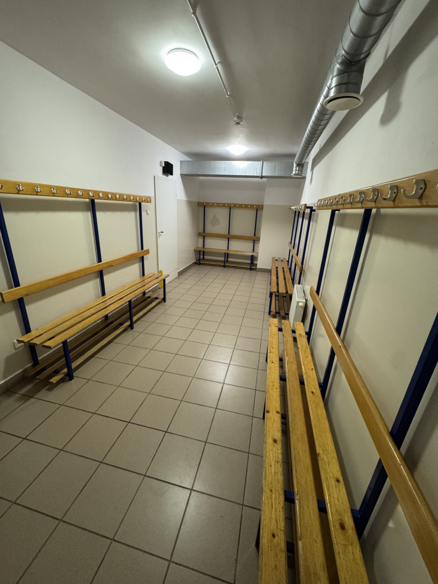 Tak, tak — te legendarne ławki, które skrzypią jak drzwi w horrorze… te haczyki, które widziały tyle, że powinny mieć już własne emerytury… i ta ściana, która wygląda, jakby sama prosiła o renowację.