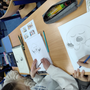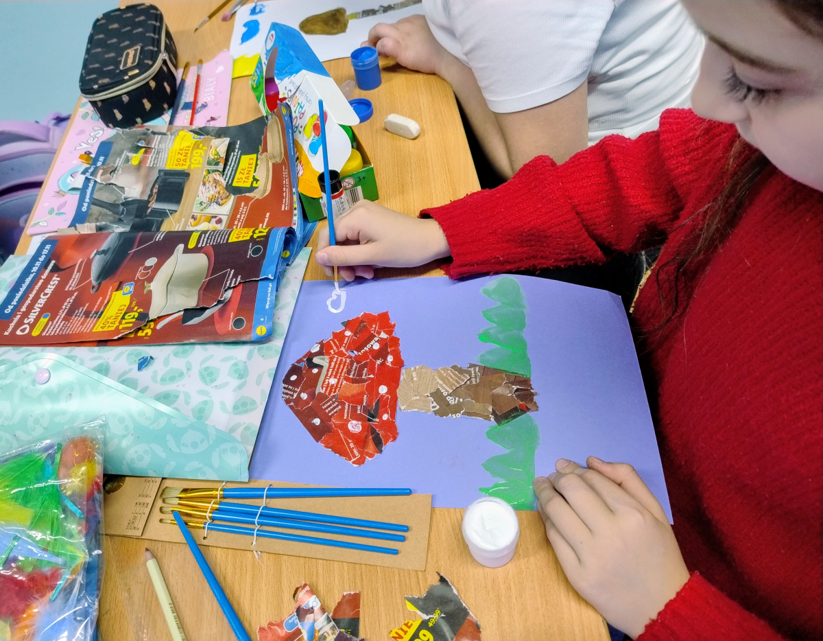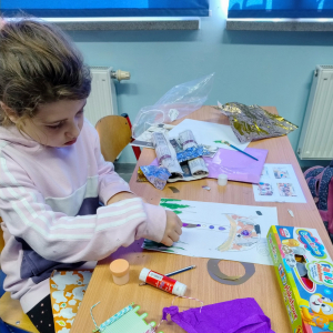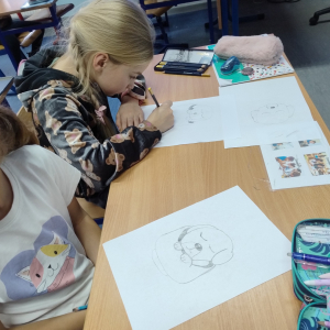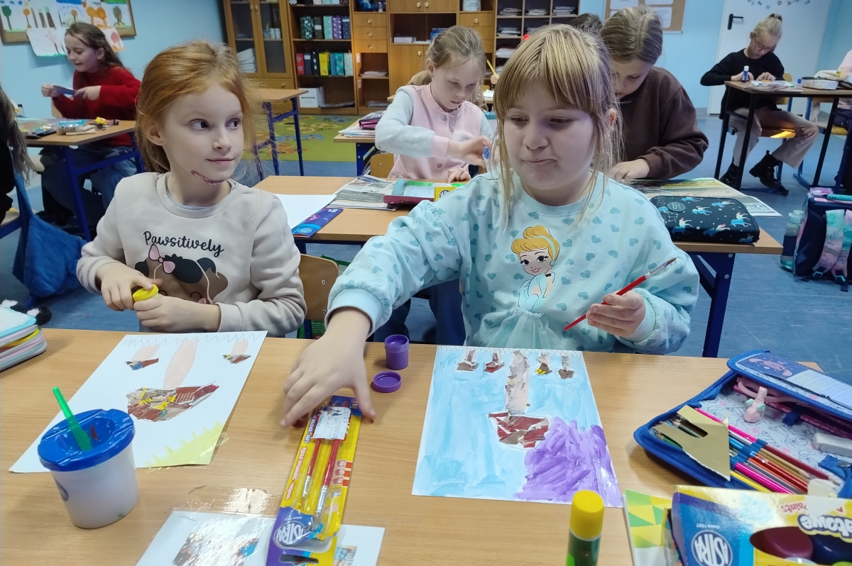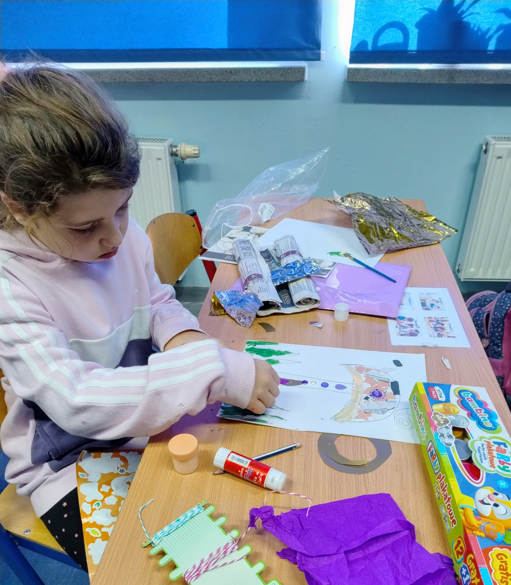 Uczniowie z radością tworzą różnorodne prace plastyczne – malują, wykonują kolaże, poznają podstawy rysunku oraz uczą się wyrażać emocje poprzez sztukę. Każde zajęcia to przestrzeń do rozwijania kreatywności, radości tworzenia i odkrywania własnego potencjału artystycznego.