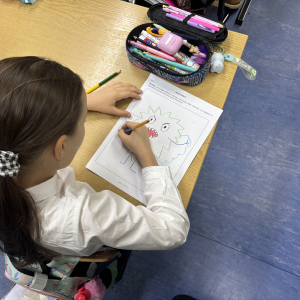 Dzieci wysłuchały opowiadania i rozmawiały o własnych doświadczeniach związanych że wspomnianą emocją. Wspólnie tłumaczyły także powiedzenie „strach ma wielkie oczy”, zastanawiając się, dlaczego czasem boimy się bardziej, niż wymaga tego sytuacja.