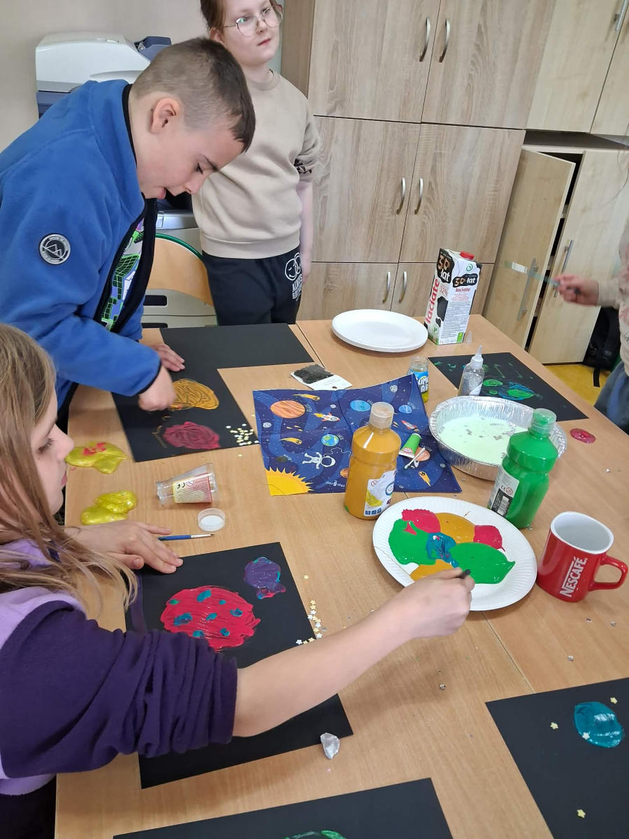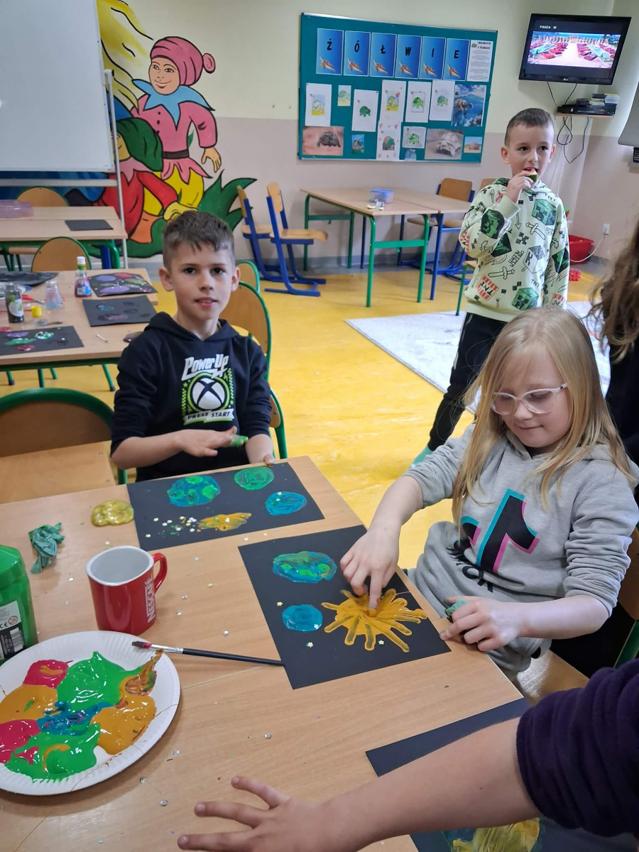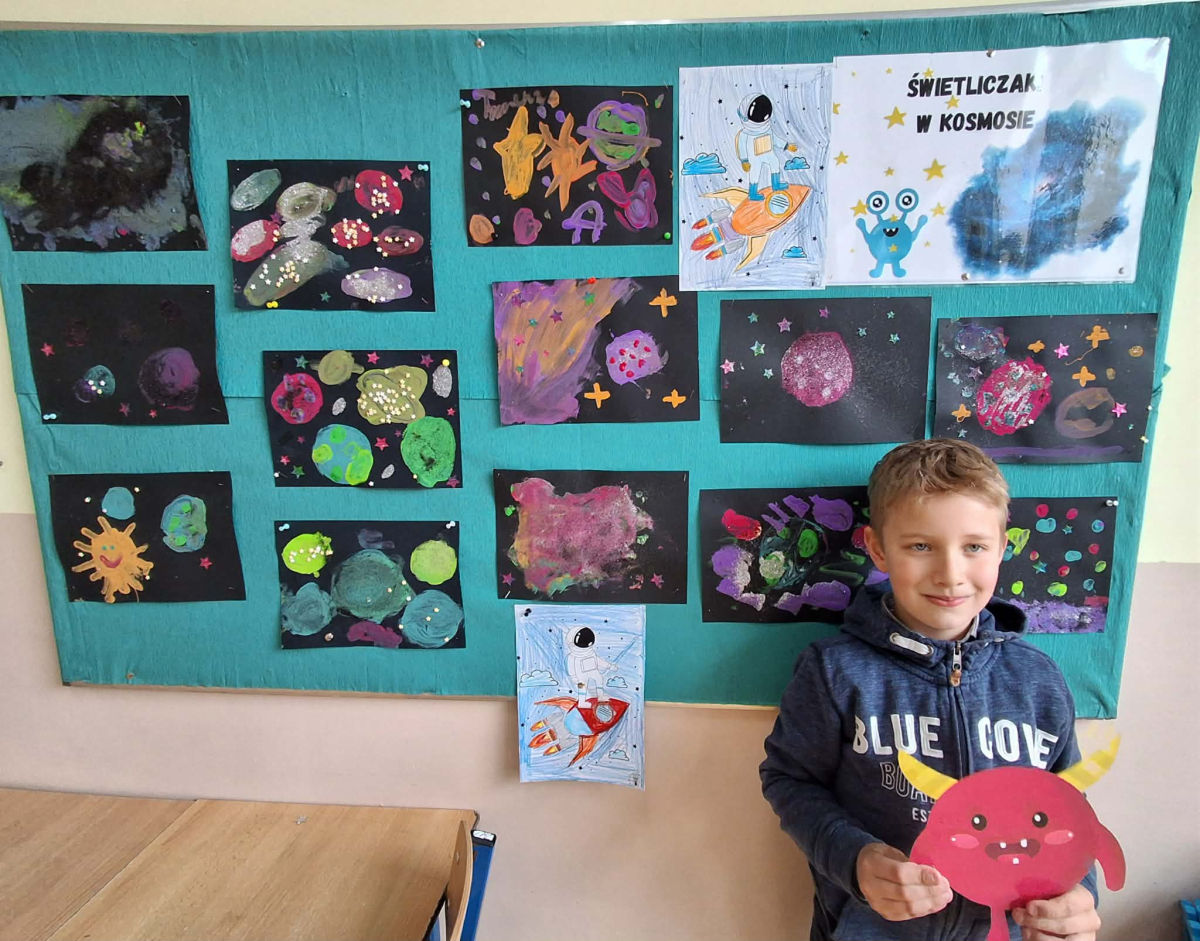 W świetlicy szkolnej odbył się Dzień Kosmosu. Dzieci wzięły udział w kosmicznej przygodzie, podczas której dowiedziały się wielu ciekawostek o kosmosie oraz Układzie Słonecznym. Odbyły się również warsztaty plastyczno-sensoryczne, które rozwijały kreatywność i wyobraźnię uczestników. Nie zabrakło także eksperymentów i doświadczeń kosmicznych, które wzbudziły duże zainteresowanie dzieci. Na zakończenie zorganizowano poczęstunek, który sprzyjał integracji grupy.
