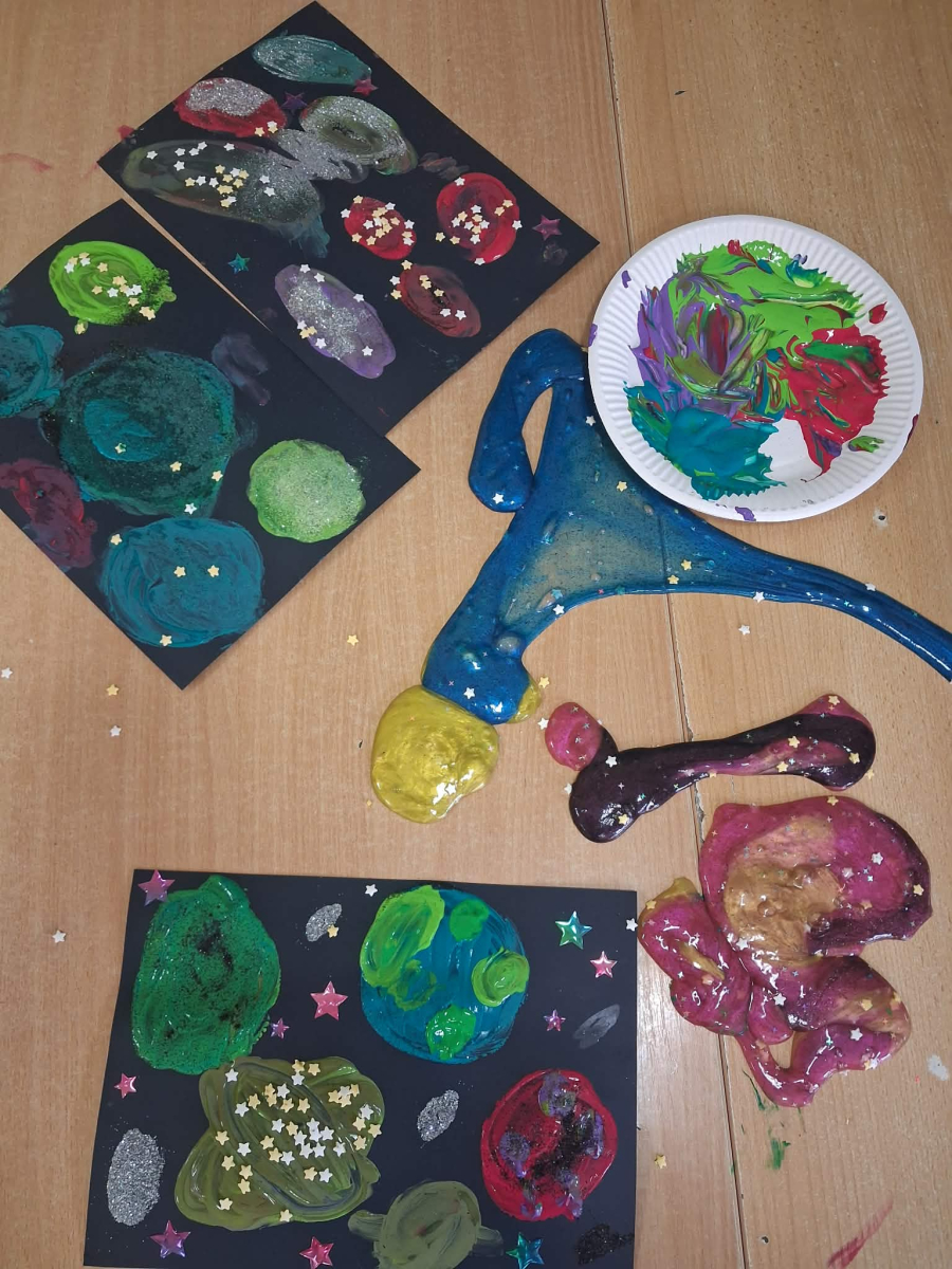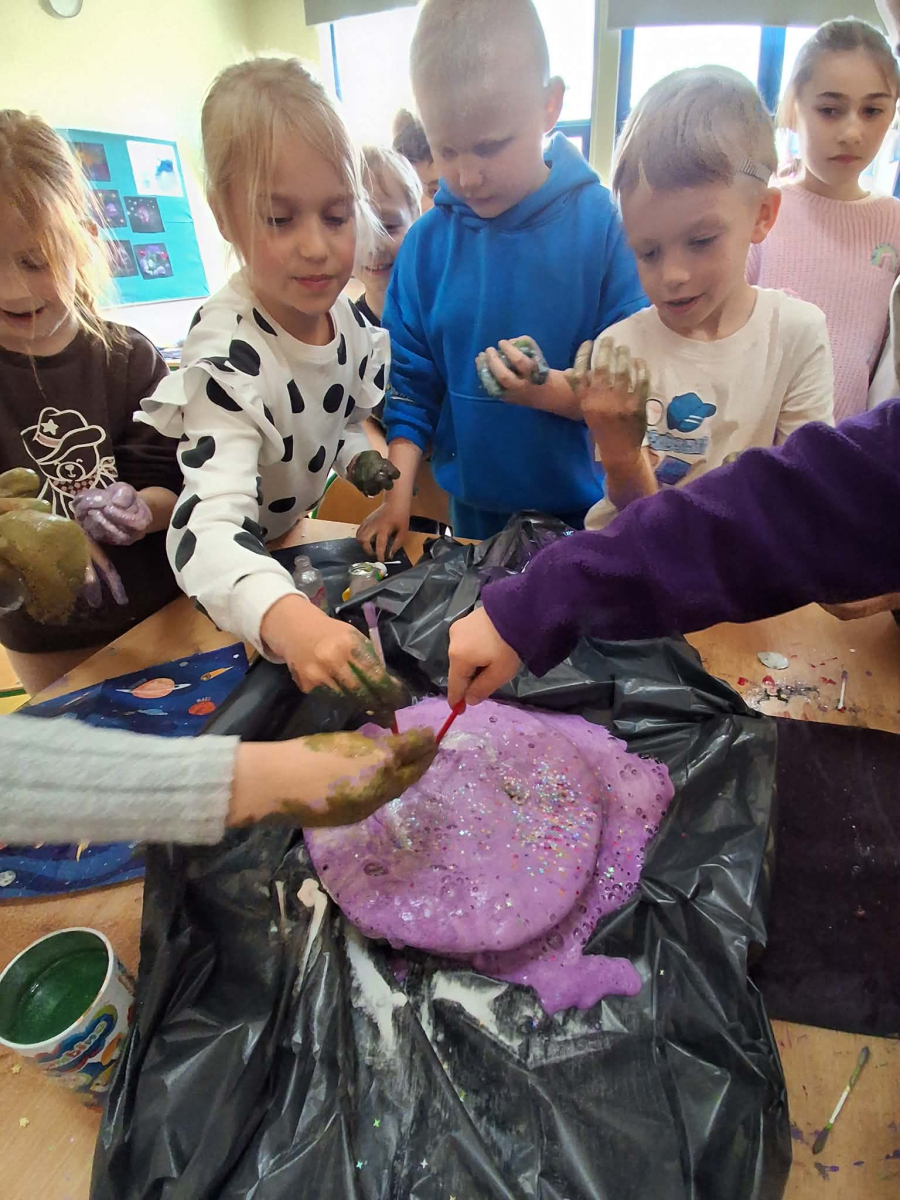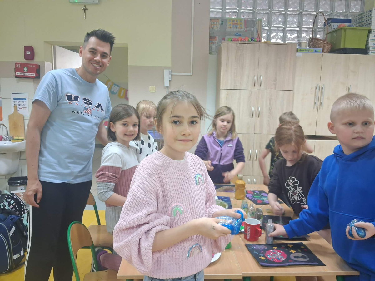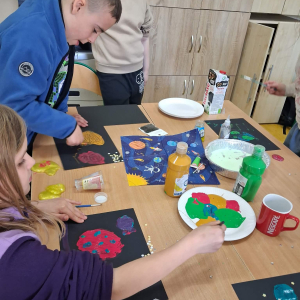 W świetlicy szkolnej odbył się Dzień Kosmosu. Dzieci wzięły udział w kosmicznej przygodzie, podczas której dowiedziały się wielu ciekawostek o kosmosie oraz Układzie Słonecznym. Odbyły się również warsztaty plastyczno-sensoryczne, które rozwijały kreatywność i wyobraźnię uczestników. Nie zabrakło także eksperymentów i doświadczeń kosmicznych, które wzbudziły duże zainteresowanie dzieci. Na zakończenie zorganizowano poczęstunek, który sprzyjał integracji grupy.
