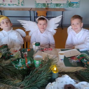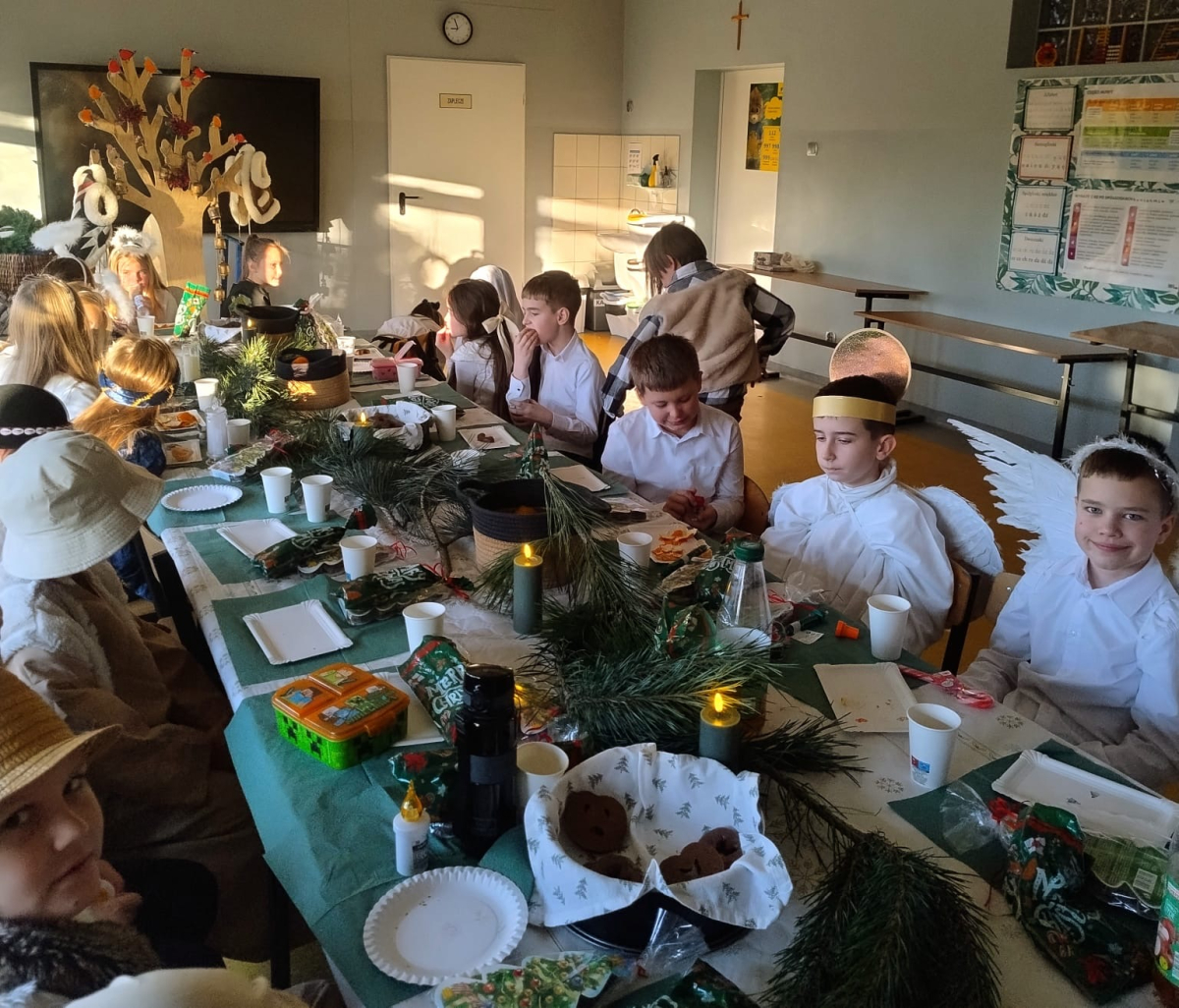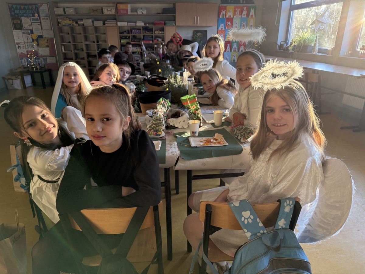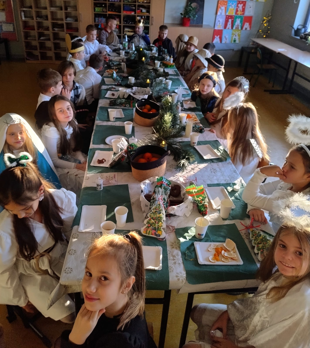 Na pamiątkę ważnego dla zespołu IIIb wydarzenia z 19 grudnia 2025 roku zostawiamy wpis w szkolnej kronice. Zdjęcia emanujące dziecięcą radością, życzliwością i poczuciem jedności pochodzą z ostatniej w tym składzie klasowej wigilii uchwyconych artystycznym okiem aktorów przedstawienia bożonarodzeniowego na chwilę przed występem.