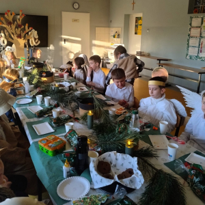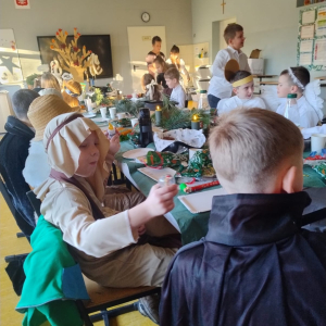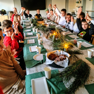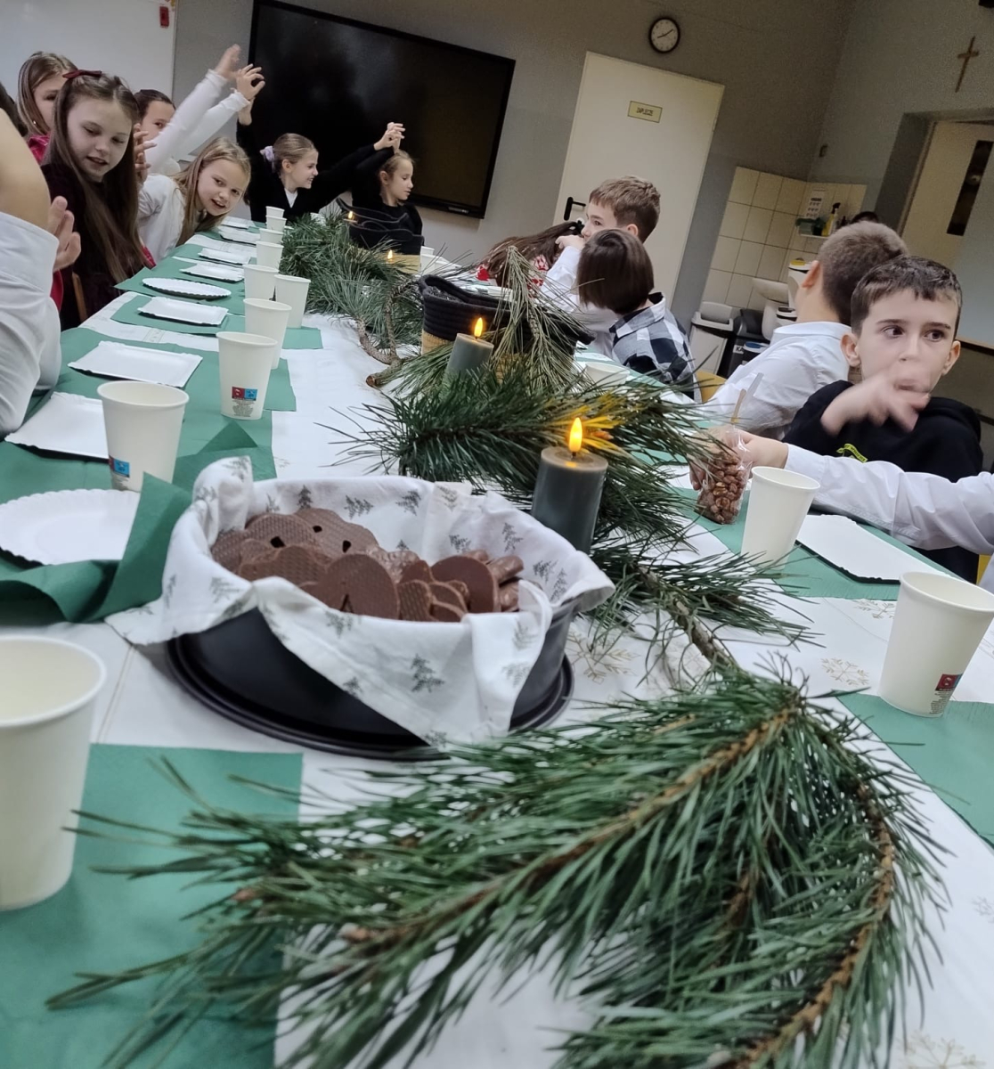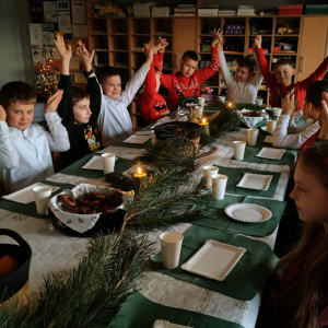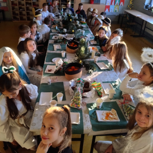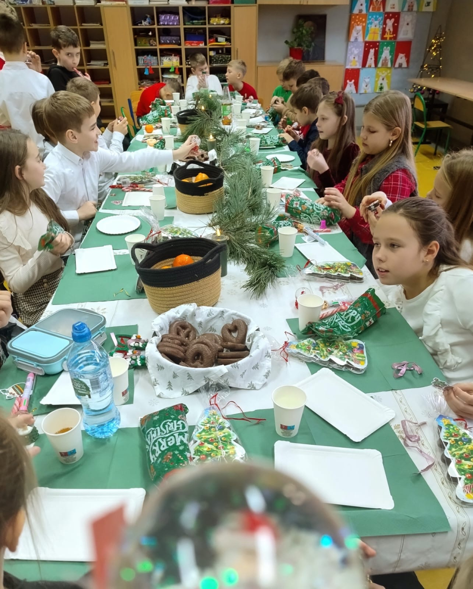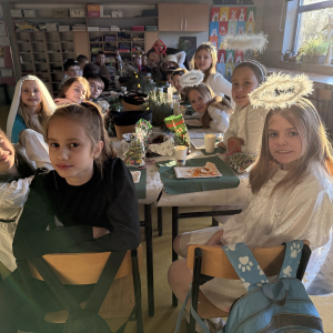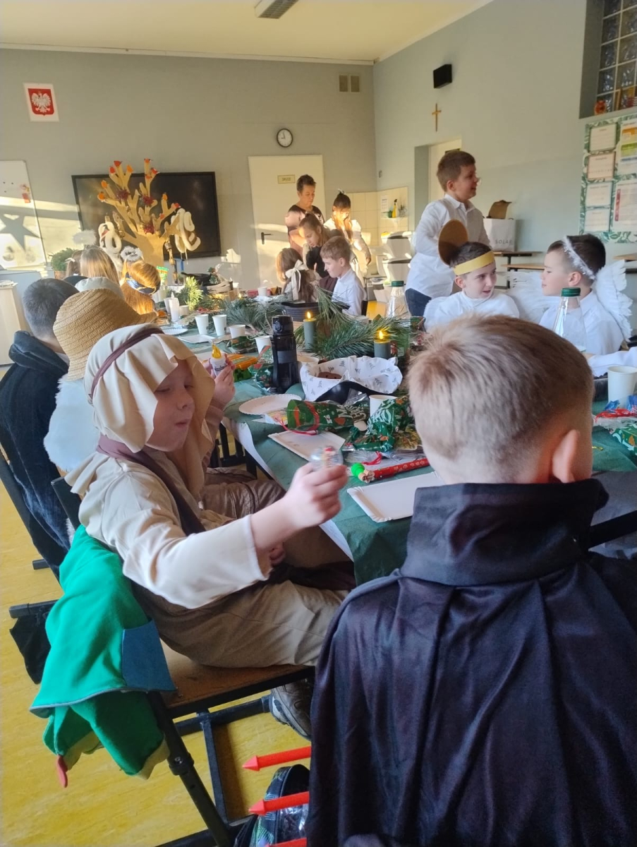 Na pamiątkę ważnego dla zespołu IIIb wydarzenia z 19 grudnia 2025 roku zostawiamy wpis w szkolnej kronice. Zdjęcia emanujące dziecięcą radością, życzliwością i poczuciem jedności pochodzą z ostatniej w tym składzie klasowej wigilii uchwyconych artystycznym okiem aktorów przedstawienia bożonarodzeniowego na chwilę przed występem.