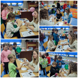 Klasa 2a przeżyła magiczne Andrzejki zamieniając salę w krainę wróżb i zabawy. Największe emocje wzbudziły wróżby: Kim będę? - dzieci losowały przyszłe zawody (lekarz, bankier, gwiazda), Jak będzie miała na imię..., czyli wróżba ze szpilką i papierowym sercem ujawniła imiona przyszłych sympatii, Wyścig butów - tradycyjne ustawianie obuwia wyłoniło osobę, która rzekomo najszybciej stanie na ślubnym kobiercu, co wywołało salwy śmiechu, wróżby z balonów dostarczyły pozytywnych przepowiedni.