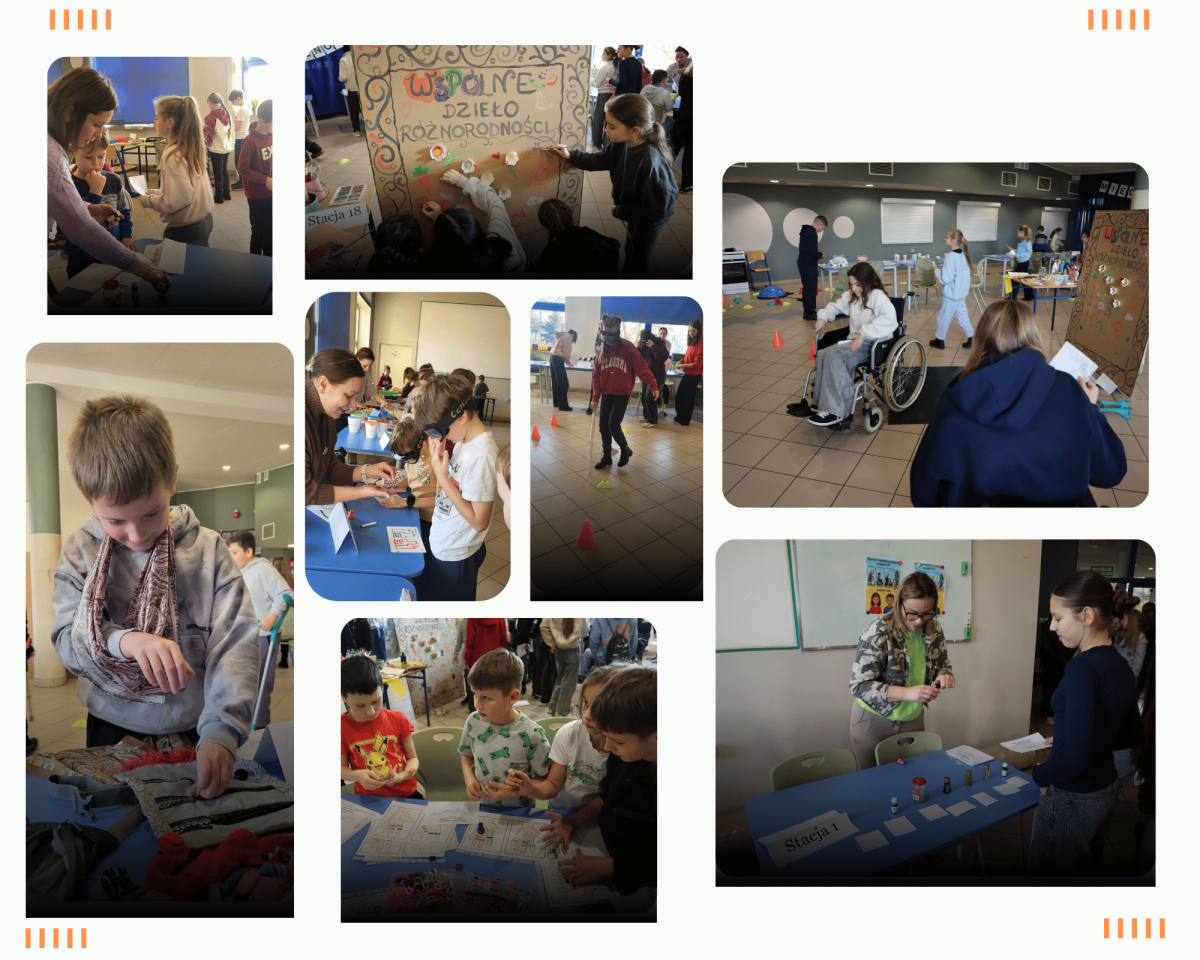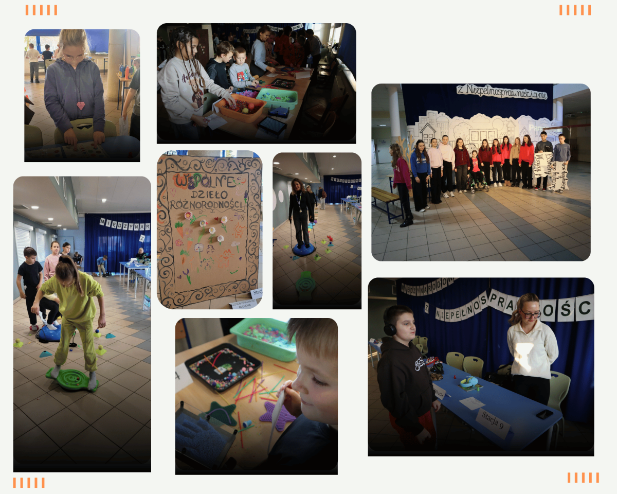 Następnie uczniowie mieli możliwość udziału w specjalnie przygotowanych stacjach doświadczeń, gdzie mogli na własnej skórze poczuć, z jakimi trudnościami mierzą się inni – w ruchu, komunikacji czy odbiorze świata. Była to cenna lekcja empatii, uważności i zrozumienia.