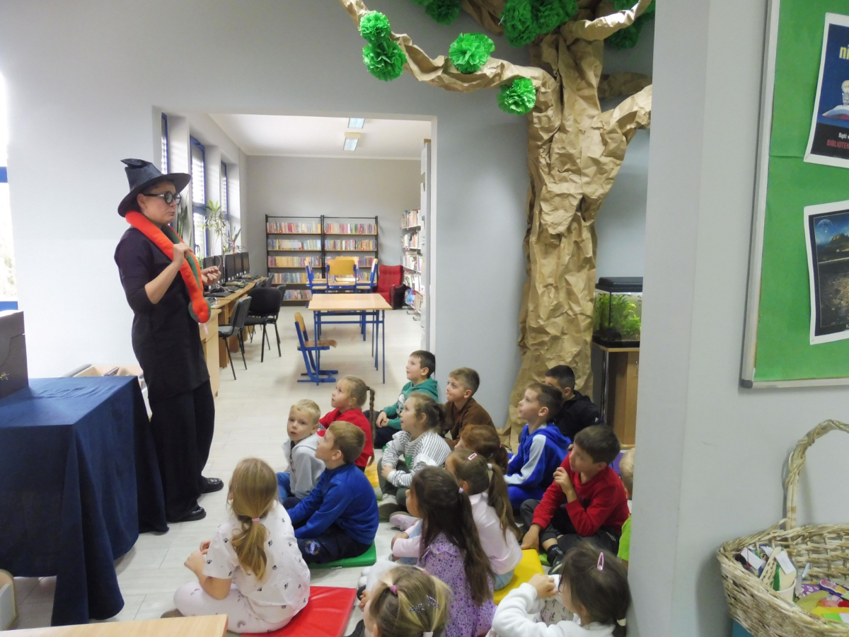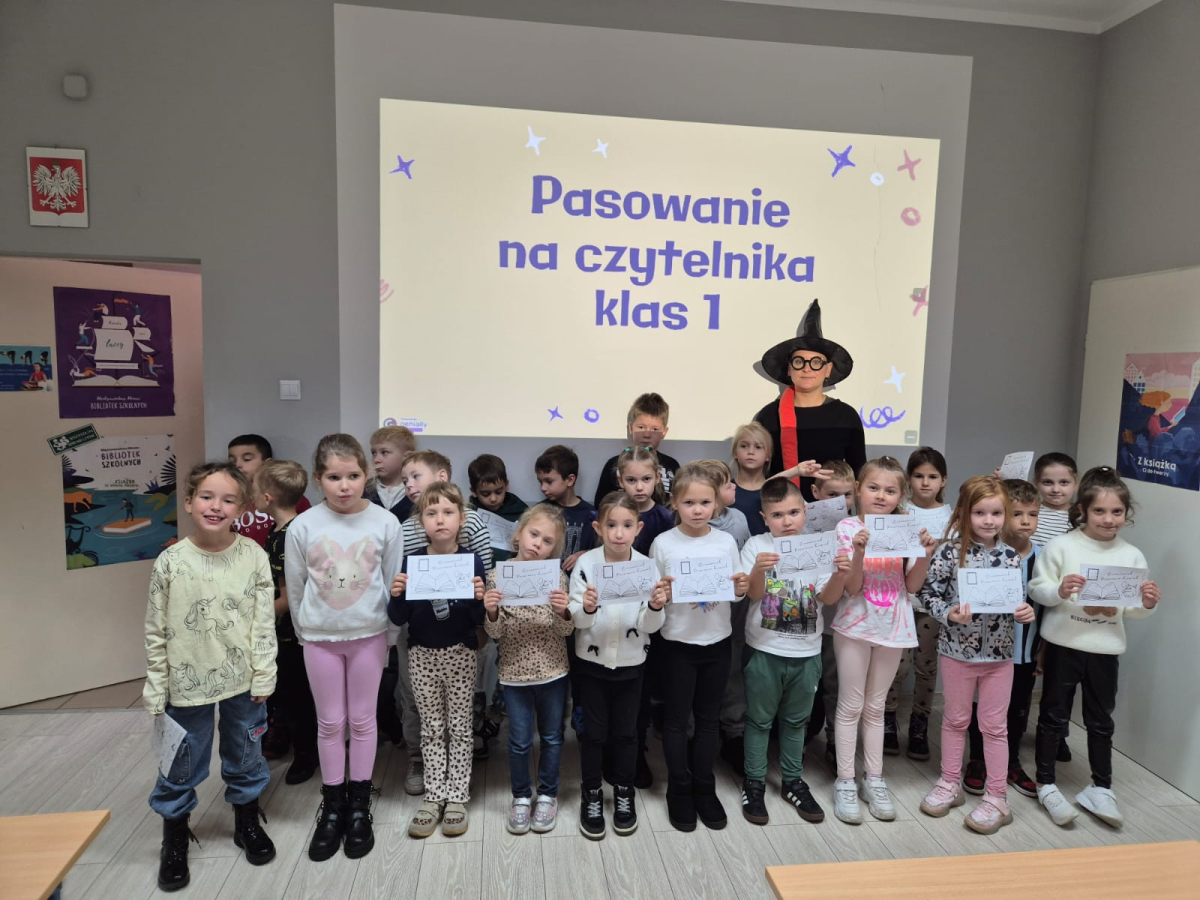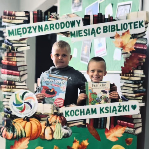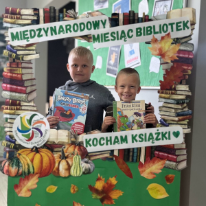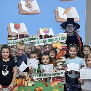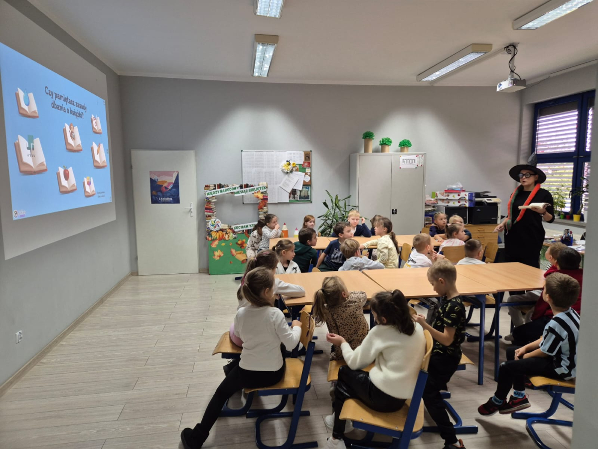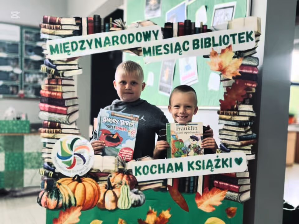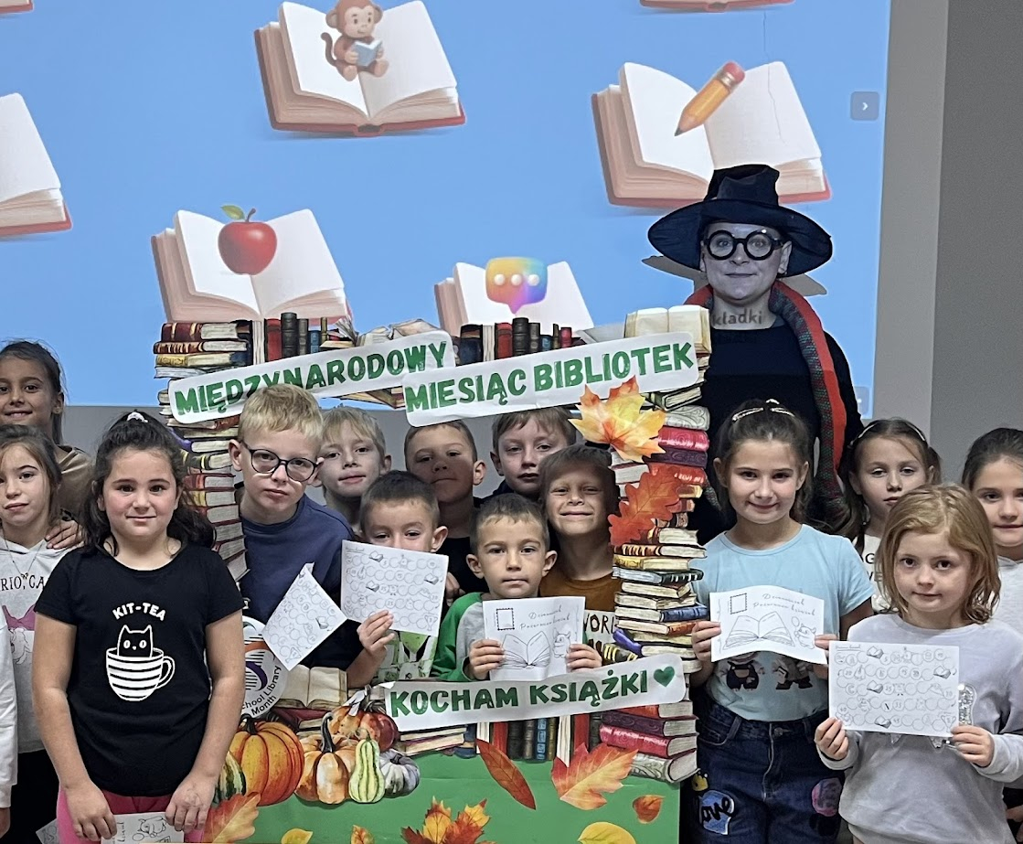 W październiku w naszej szkole obchodziliśmy Miesiąc Bibliotek Szkolnych. Z tej okazji przygotowano wiele ciekawych wydarzeń, które zachęcały uczniów do czytania i rozwijały ich zainteresowania literaturą. Uroczystości rozpoczęło pasowanie uczniów klas 1 na czytelnika, podczas którego najmłodsi oficjalnie zostali przyjęci do grona czytelników biblioteki. Kolejnym punktem programu był Teatrzyk Kamishibai „Noc w bibliotece”, który wprowadził dzieci w magiczny świat książek i bibliotecznych przygód, uczniowie poznali także regulamin biblioteki oraz zasady dbania o książki. Dużym zainteresowaniem cieszyły się warsztaty robienia zakładek origami, podczas których uczniowie tworzyli własne, kolorowe zakładki do książek. W świetlicy szkolnej odbyła się również lekcja z gościem z Biblioteki Pedagogicznej pt. „Jesienny bal w lesie”, która połączyła aktywne czytanie z zajęciami manualnymi. Nie zabrakło też atrakcji dla miłośników fotografii – uczniowie chętnie korzystali z książkowej fotobudki, robiąc pamiątkowe zdjęcia z ulubionymi lekturami. W ramach obchodów zorganizowano także doroczny szkolny konkurs na „Samodzielnie wykonaną zakładkę do książki”, w którym przyznano następujące nagrody: