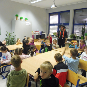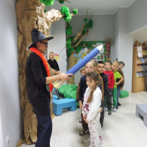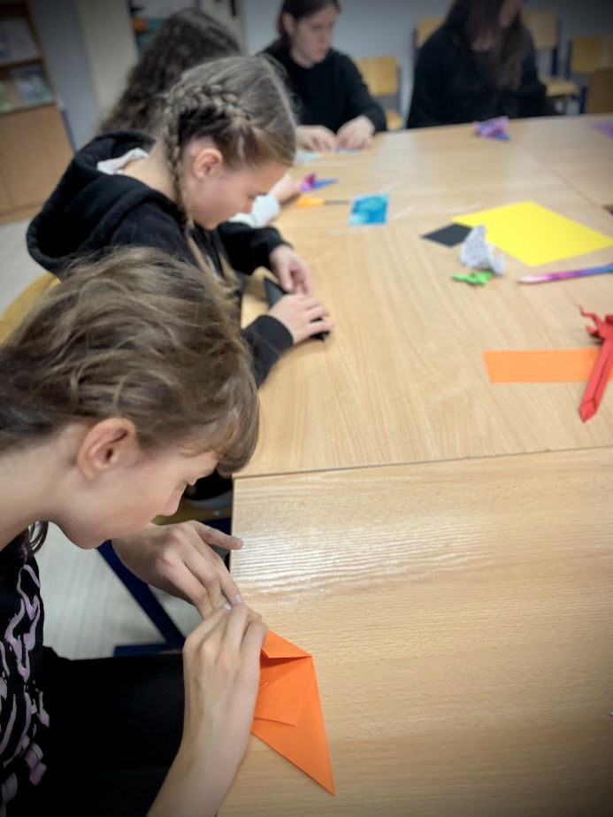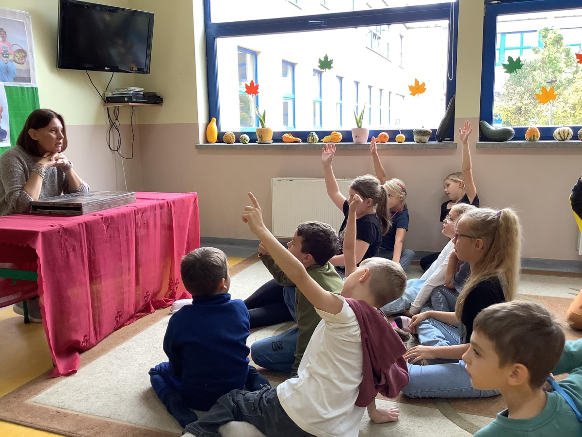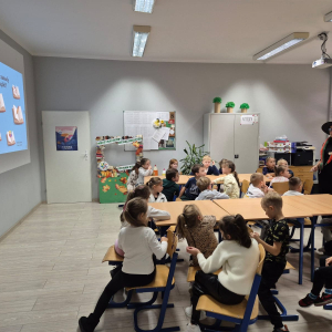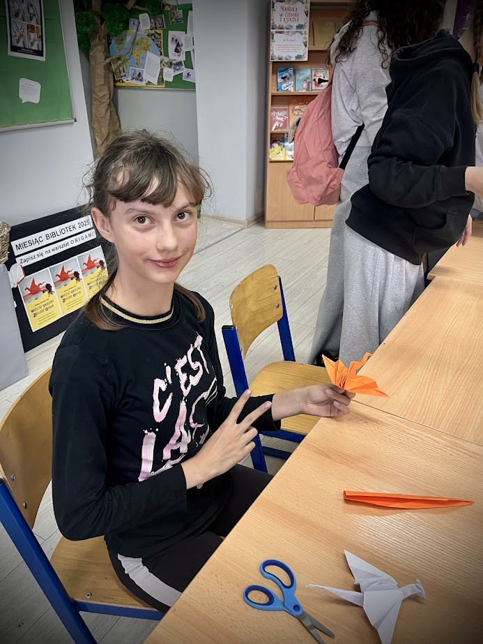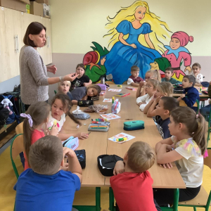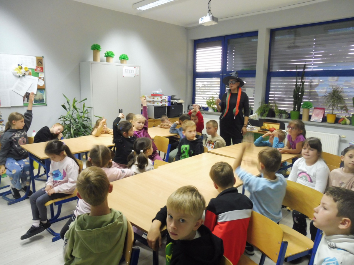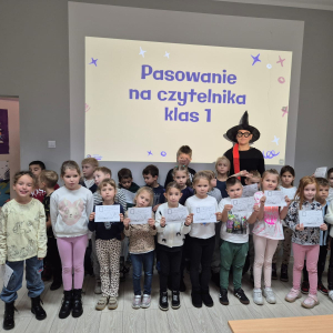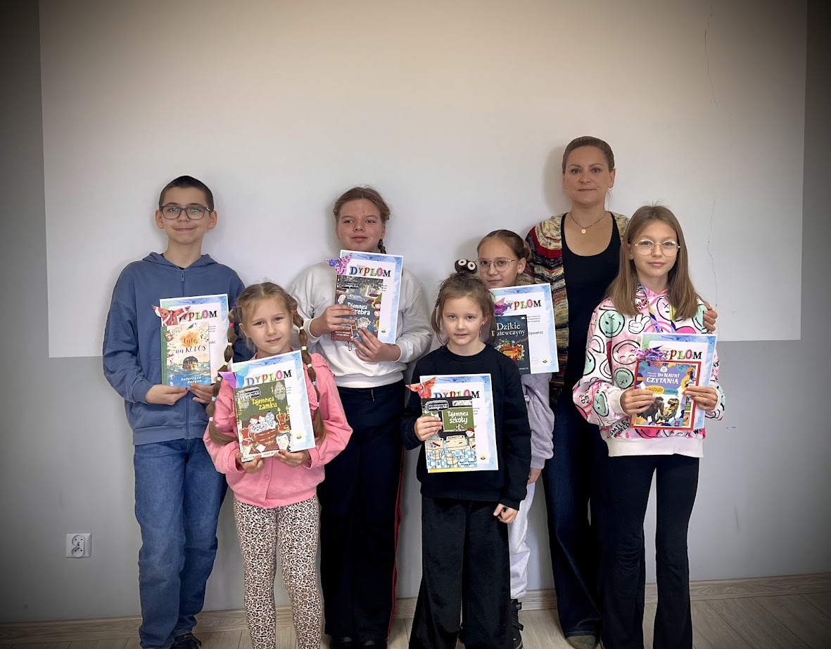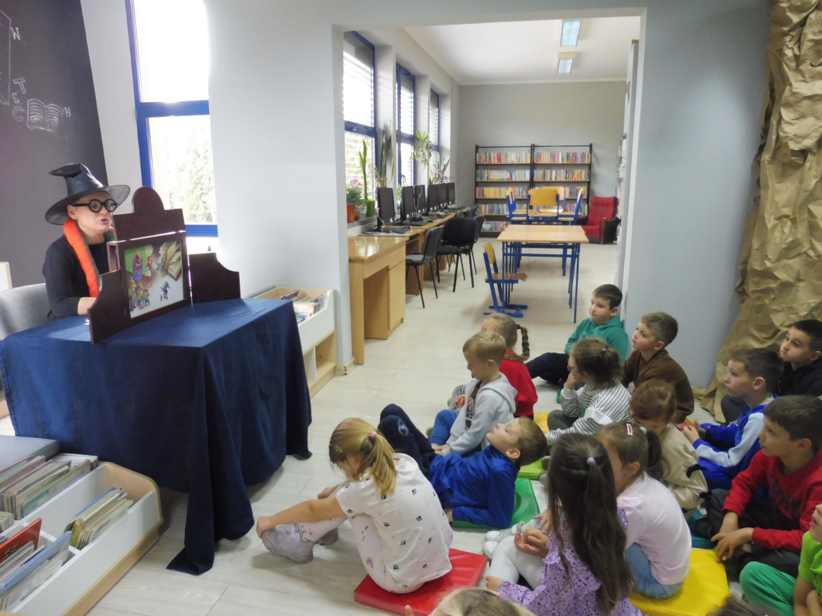 W październiku w naszej szkole obchodziliśmy Miesiąc Bibliotek Szkolnych. Z tej okazji przygotowano wiele ciekawych wydarzeń, które zachęcały uczniów do czytania i rozwijały ich zainteresowania literaturą. Uroczystości rozpoczęło pasowanie uczniów klas 1 na czytelnika, podczas którego najmłodsi oficjalnie zostali przyjęci do grona czytelników biblioteki. Kolejnym punktem programu był Teatrzyk Kamishibai „Noc w bibliotece”, który wprowadził dzieci w magiczny świat książek i bibliotecznych przygód, uczniowie poznali także regulamin biblioteki oraz zasady dbania o książki. Dużym zainteresowaniem cieszyły się warsztaty robienia zakładek origami, podczas których uczniowie tworzyli własne, kolorowe zakładki do książek. W świetlicy szkolnej odbyła się również lekcja z gościem z Biblioteki Pedagogicznej pt. „Jesienny bal w lesie”, która połączyła aktywne czytanie z zajęciami manualnymi. Nie zabrakło też atrakcji dla miłośników fotografii – uczniowie chętnie korzystali z książkowej fotobudki, robiąc pamiątkowe zdjęcia z ulubionymi lekturami. W ramach obchodów zorganizowano także doroczny szkolny konkurs na „Samodzielnie wykonaną zakładkę do książki”, w którym przyznano następujące nagrody: