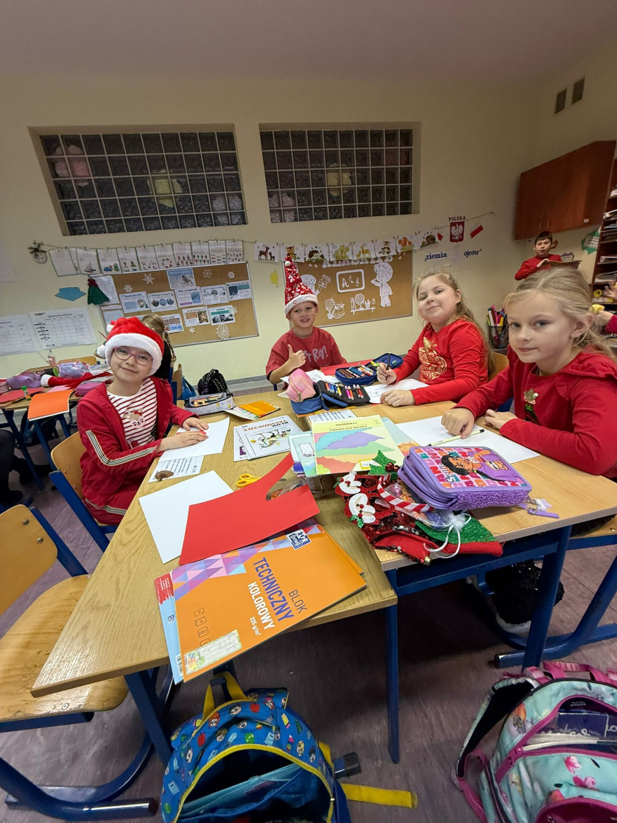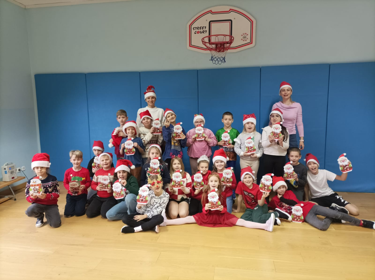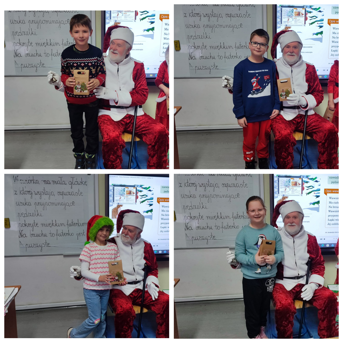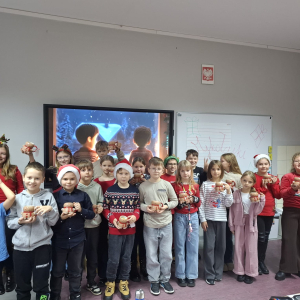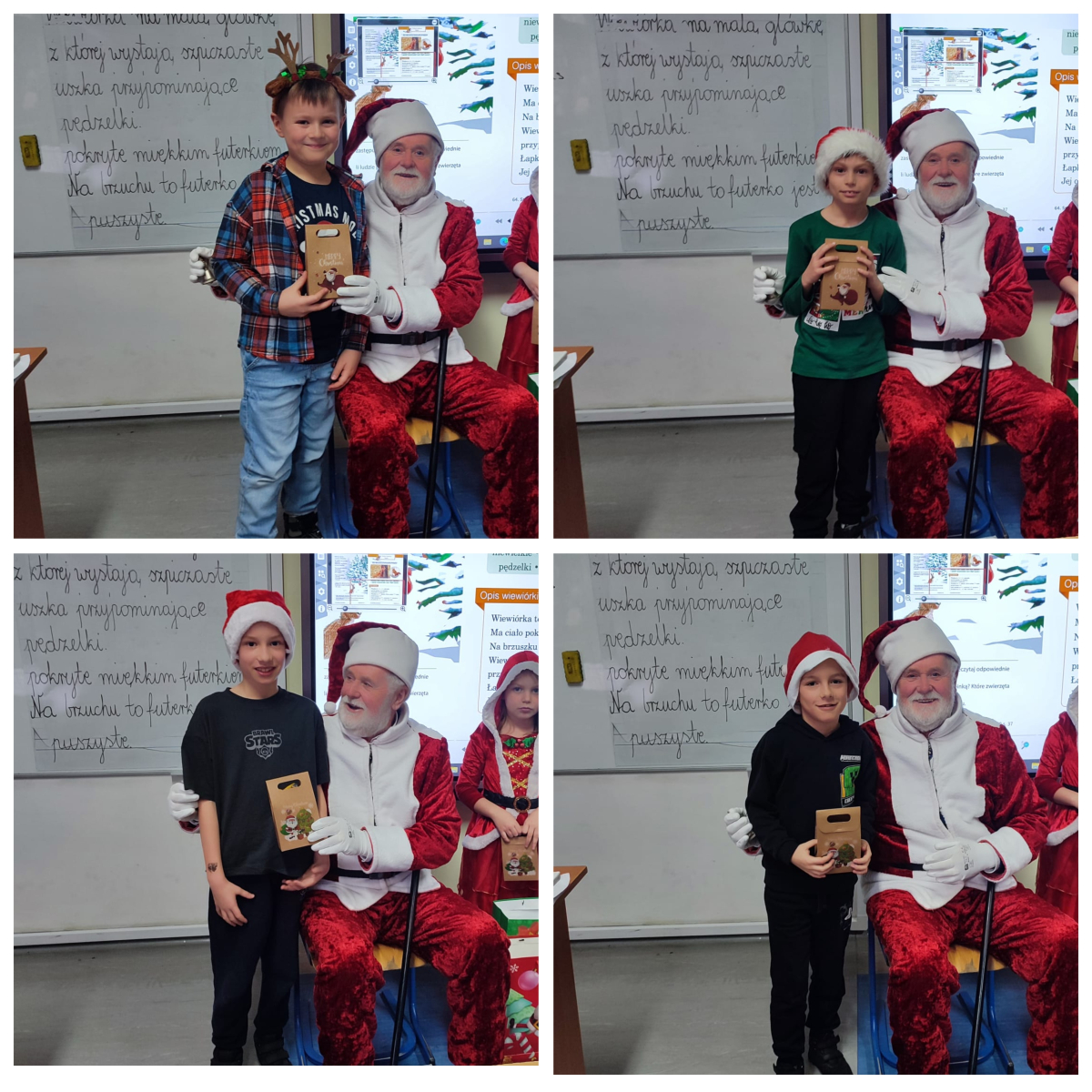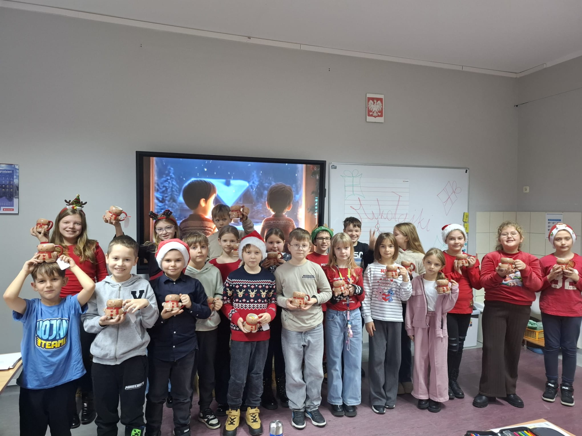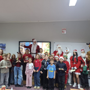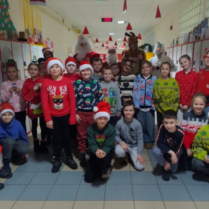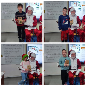 Największą niespodzianką była wizyta Świętego Mikołaja, który, rozmawiał z dziećmi i obdarował je upominkami. Uczniowie z ogromnym zaangażowaniem dekorowali także swoje sale lekcyjne, tworząc prawdziwie magiczną, zimową atmosferę.