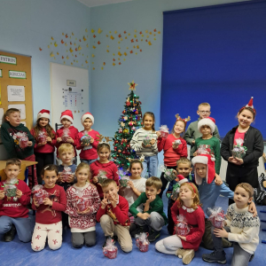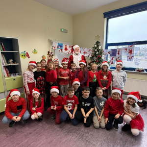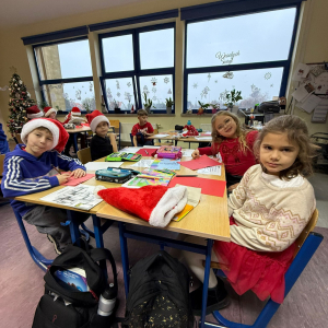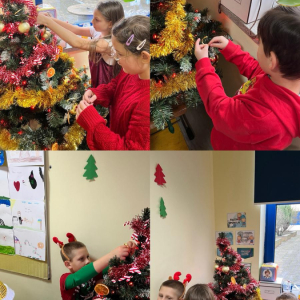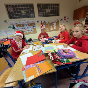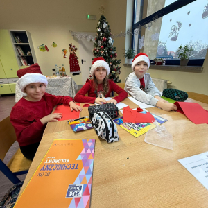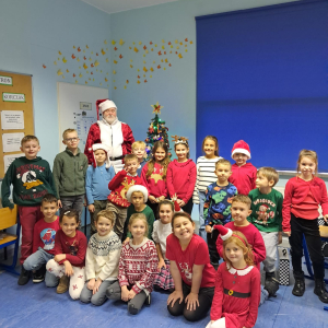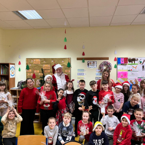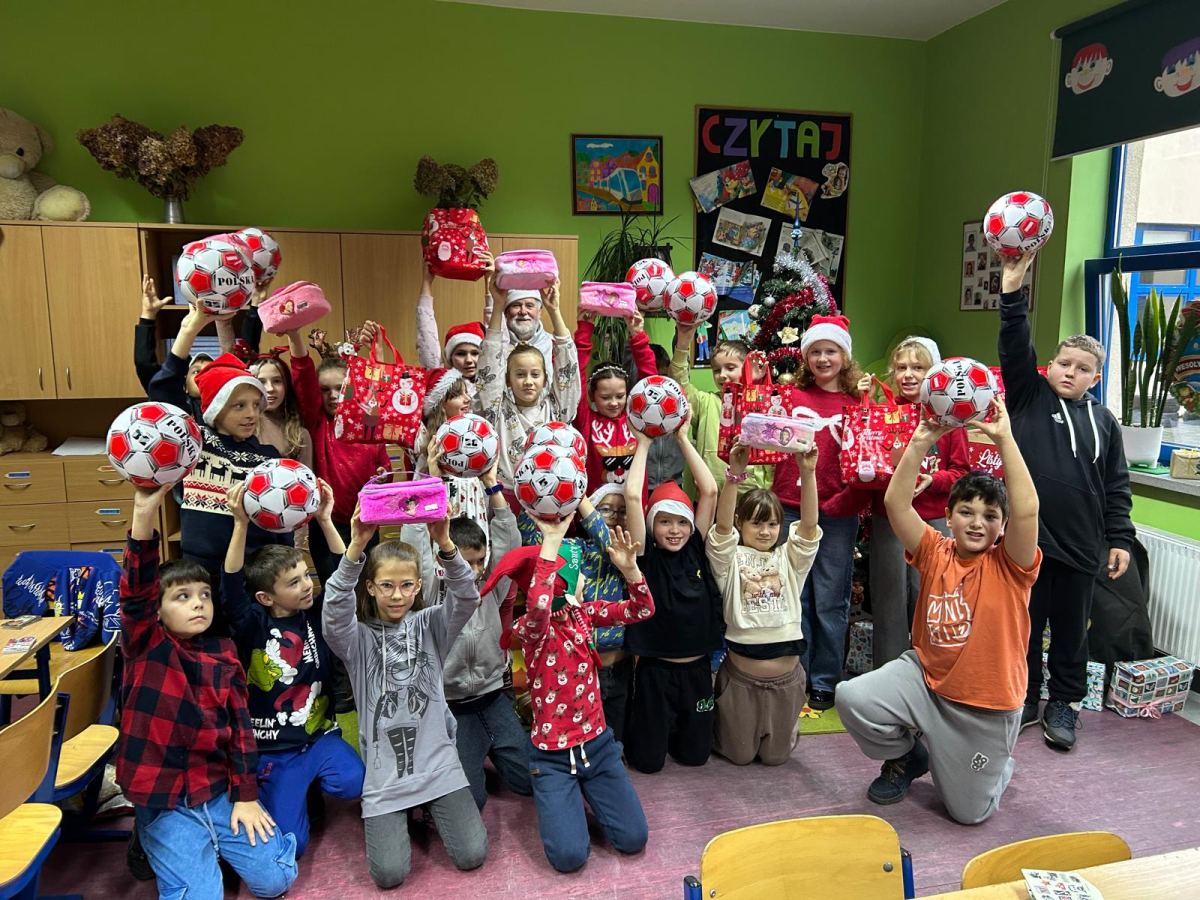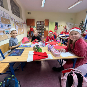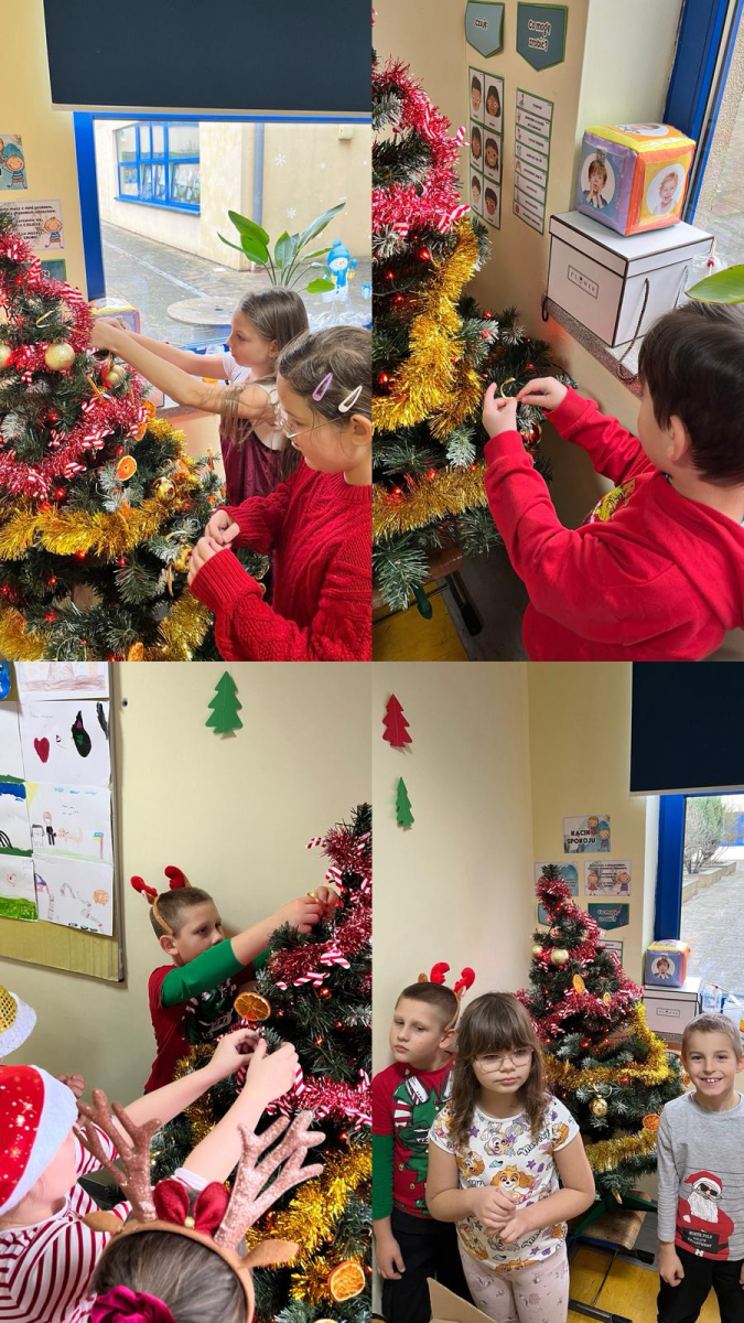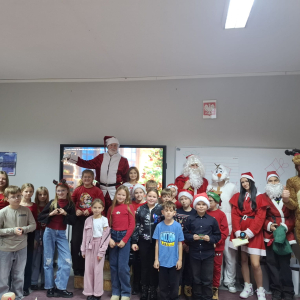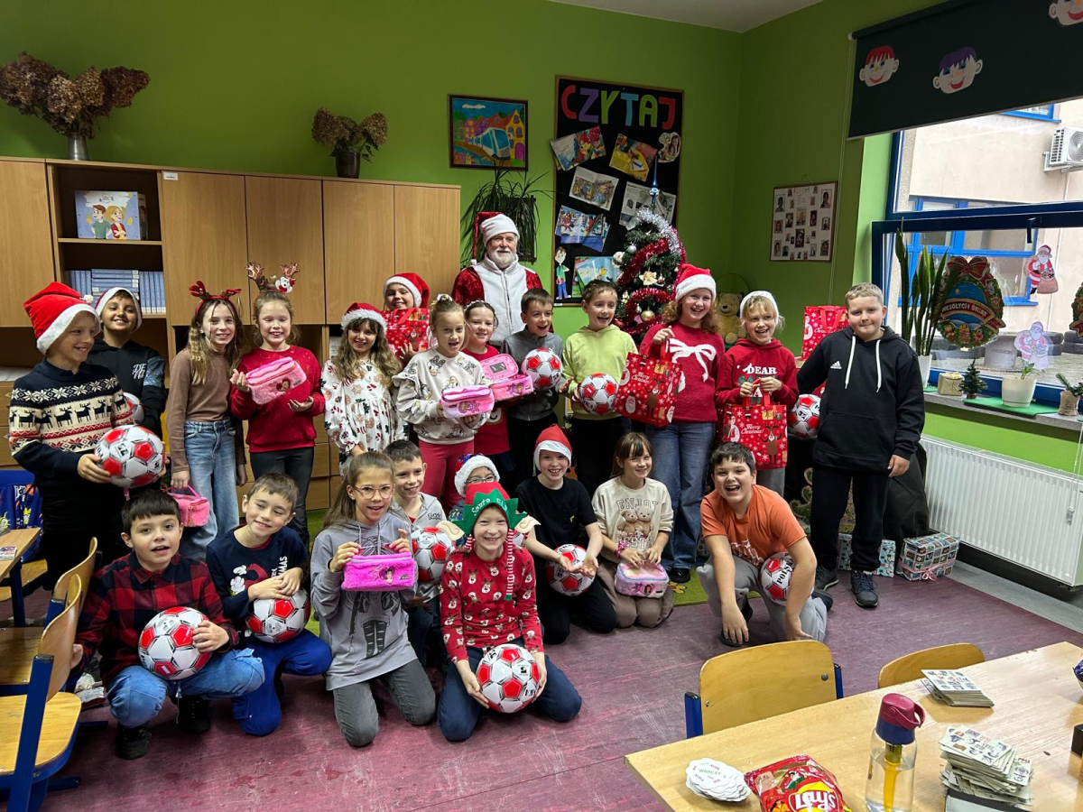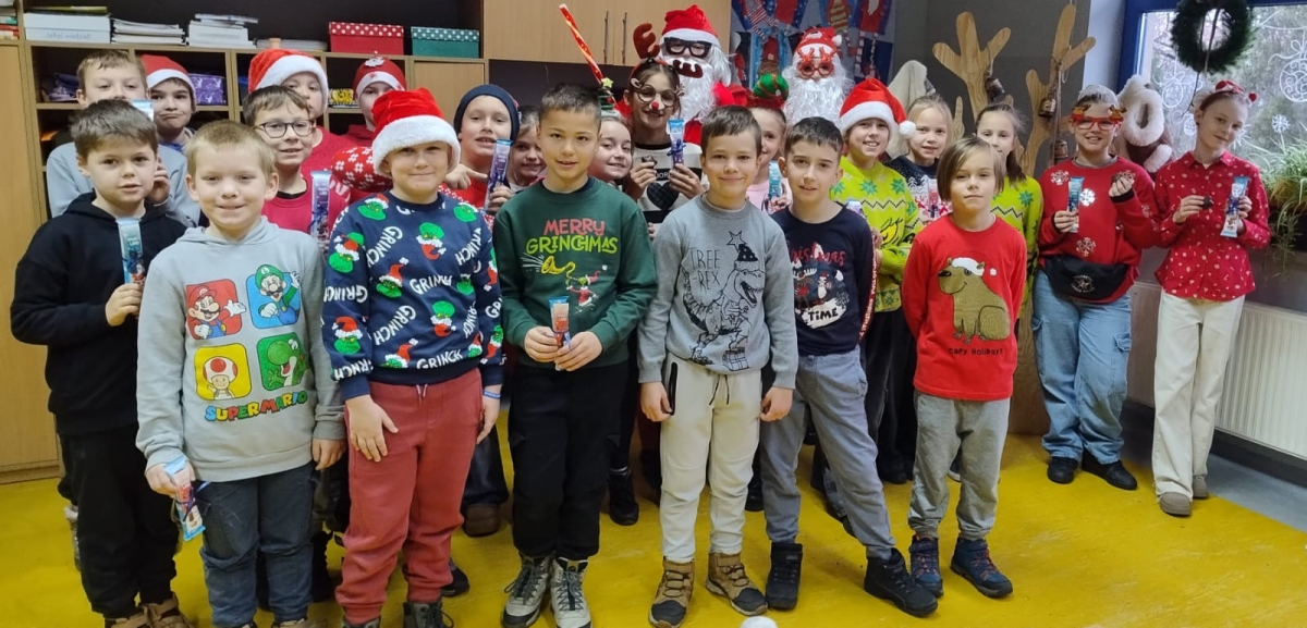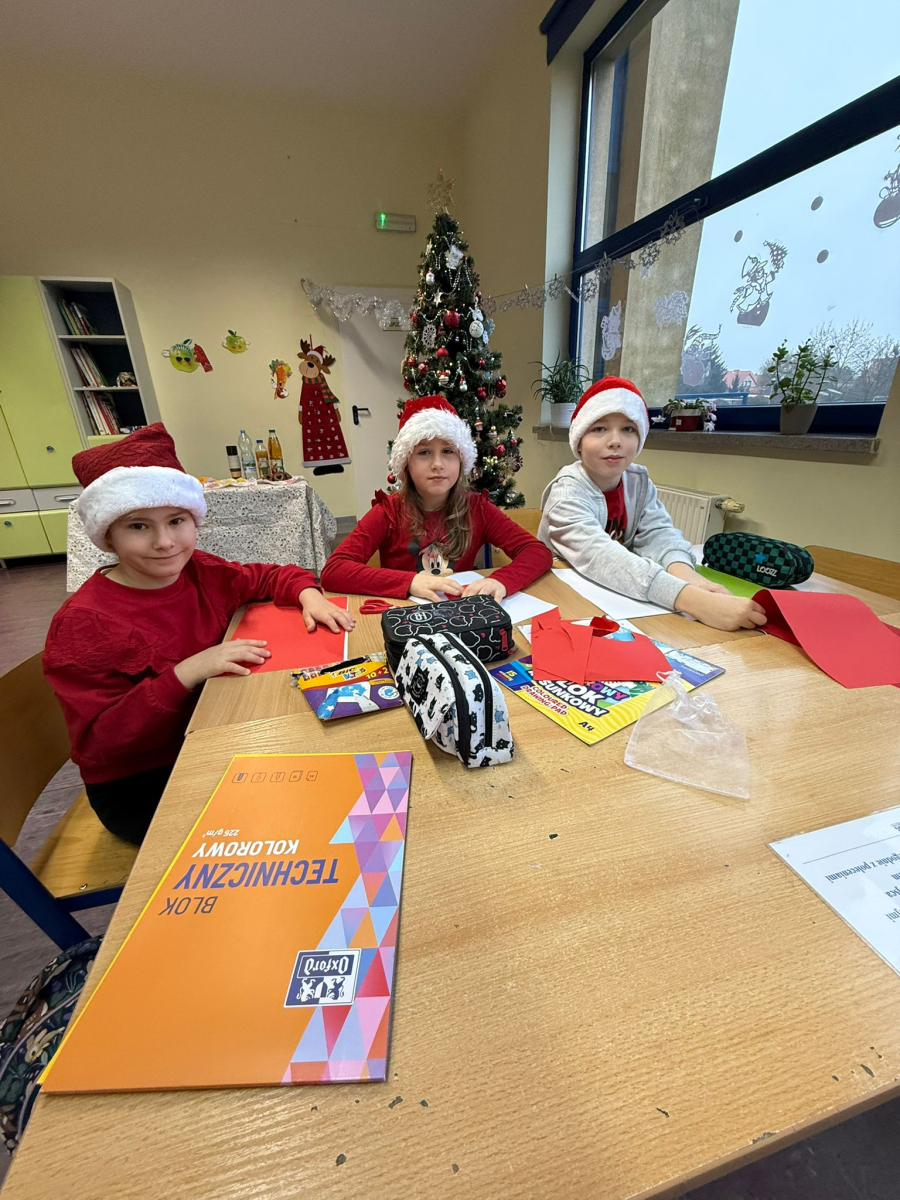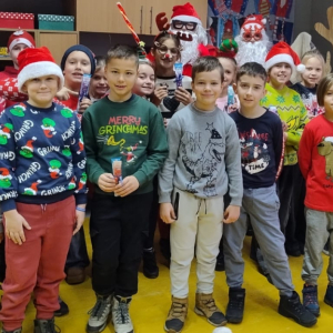 Największą niespodzianką była wizyta Świętego Mikołaja, który, rozmawiał z dziećmi i obdarował je upominkami. Uczniowie z ogromnym zaangażowaniem dekorowali także swoje sale lekcyjne, tworząc prawdziwie magiczną, zimową atmosferę.