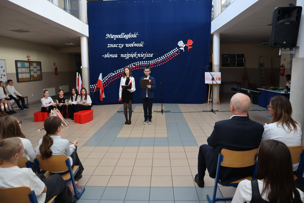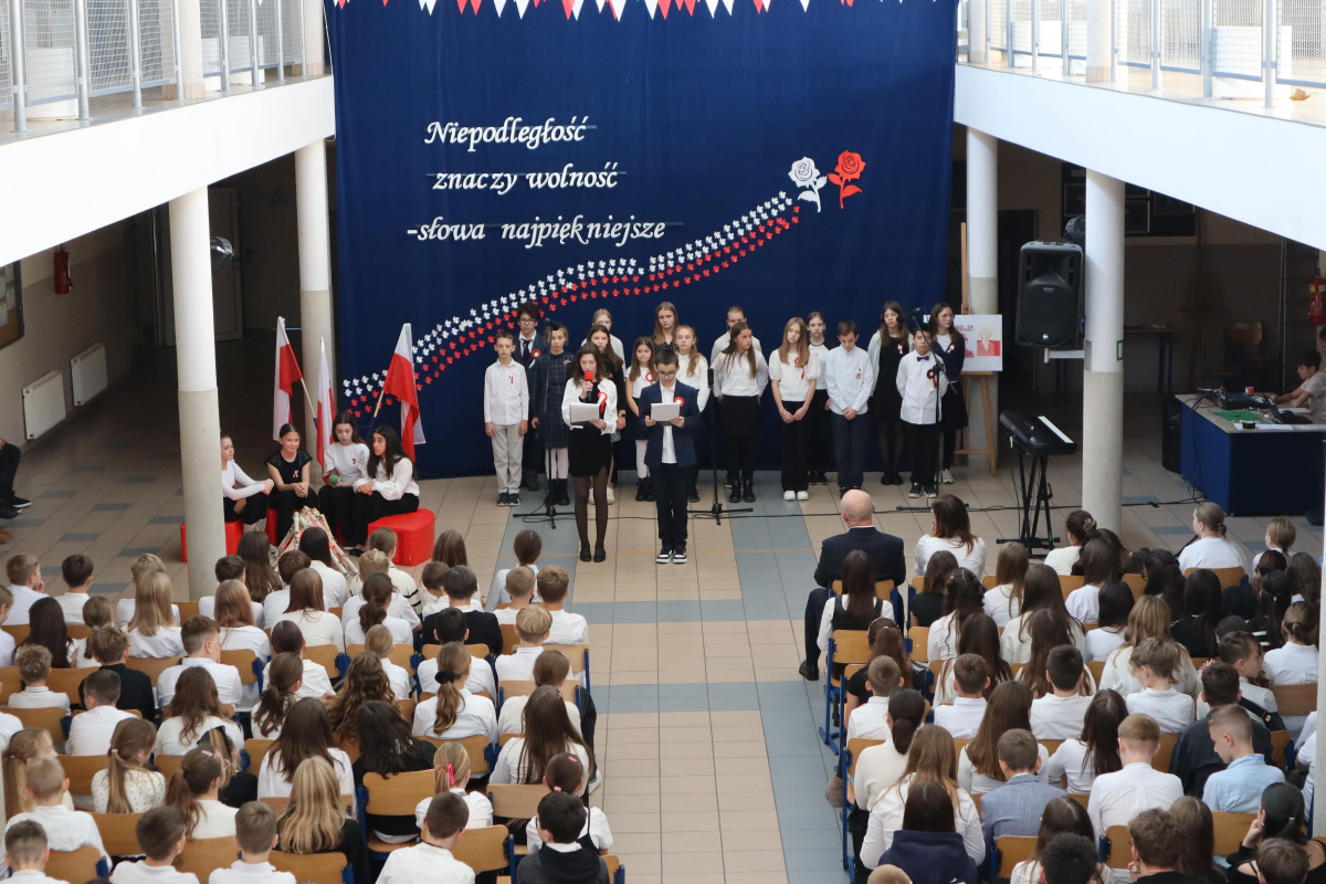 7 listopada w naszej szkole odbyły się uroczyste apele upamiętniające Narodowe Święto Niepodległości. Uczniowie przygotowali program artystyczny poświęcony historii odzyskania wolności po 123 latach zaborów. Występy recytatorskie, pieśni patriotyczne oraz krótkie scenki historyczne przypomniały, jak ważna jest pamięć o tych, którzy walczyli o niepodległą Polskę.