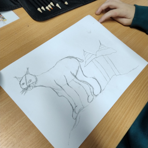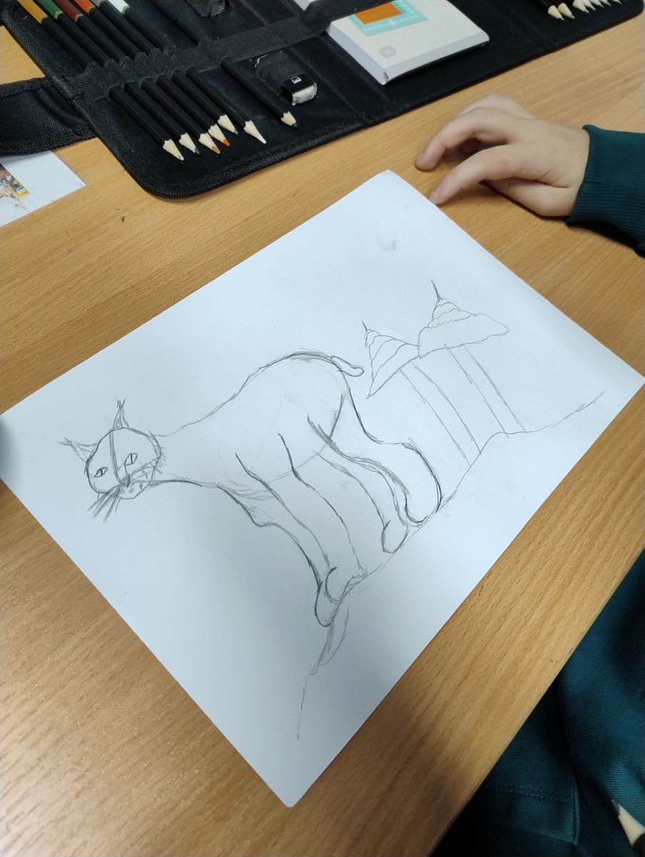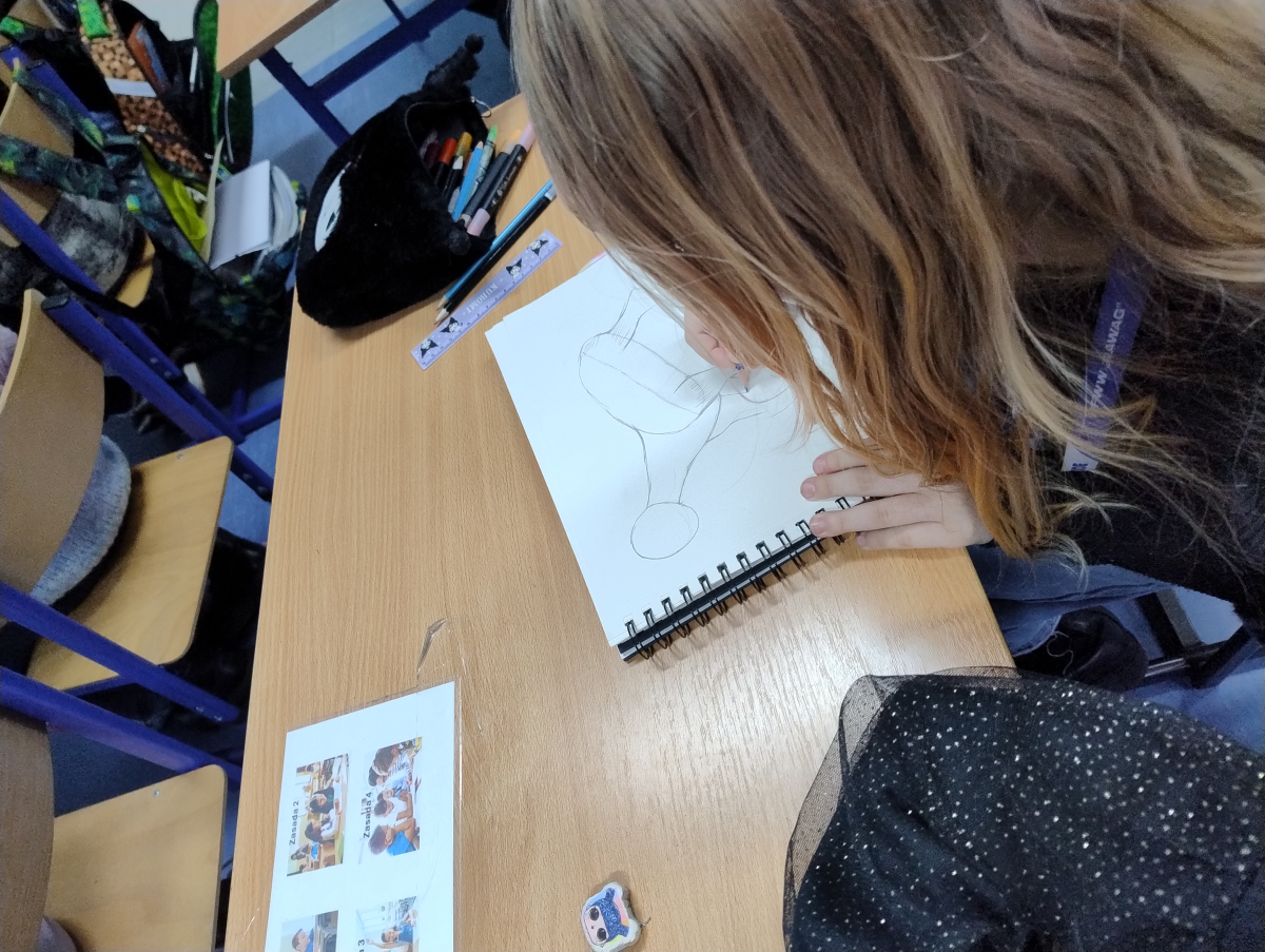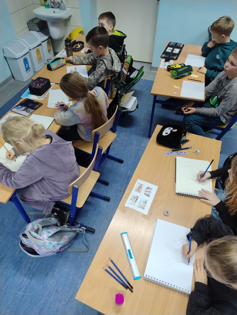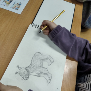 Podczas spotkań uczniowie m.in. pracowali nad studium sylwetki rysia. Skupili się na zachowaniu właściwych proporcji zwierzęcia oraz na budowaniu formy przy użyciu światłocienia. Uczestnicy uważnie analizowali charakterystyczne cechy wyglądu tego pięknego drapieżnika i starali się wiernie oddać je w swoich rysunkach. Pracowali bardzo uważnie, odkrywając, jak wiele detali i zależności kryje w sobie pozornie prosta budowa ciała.