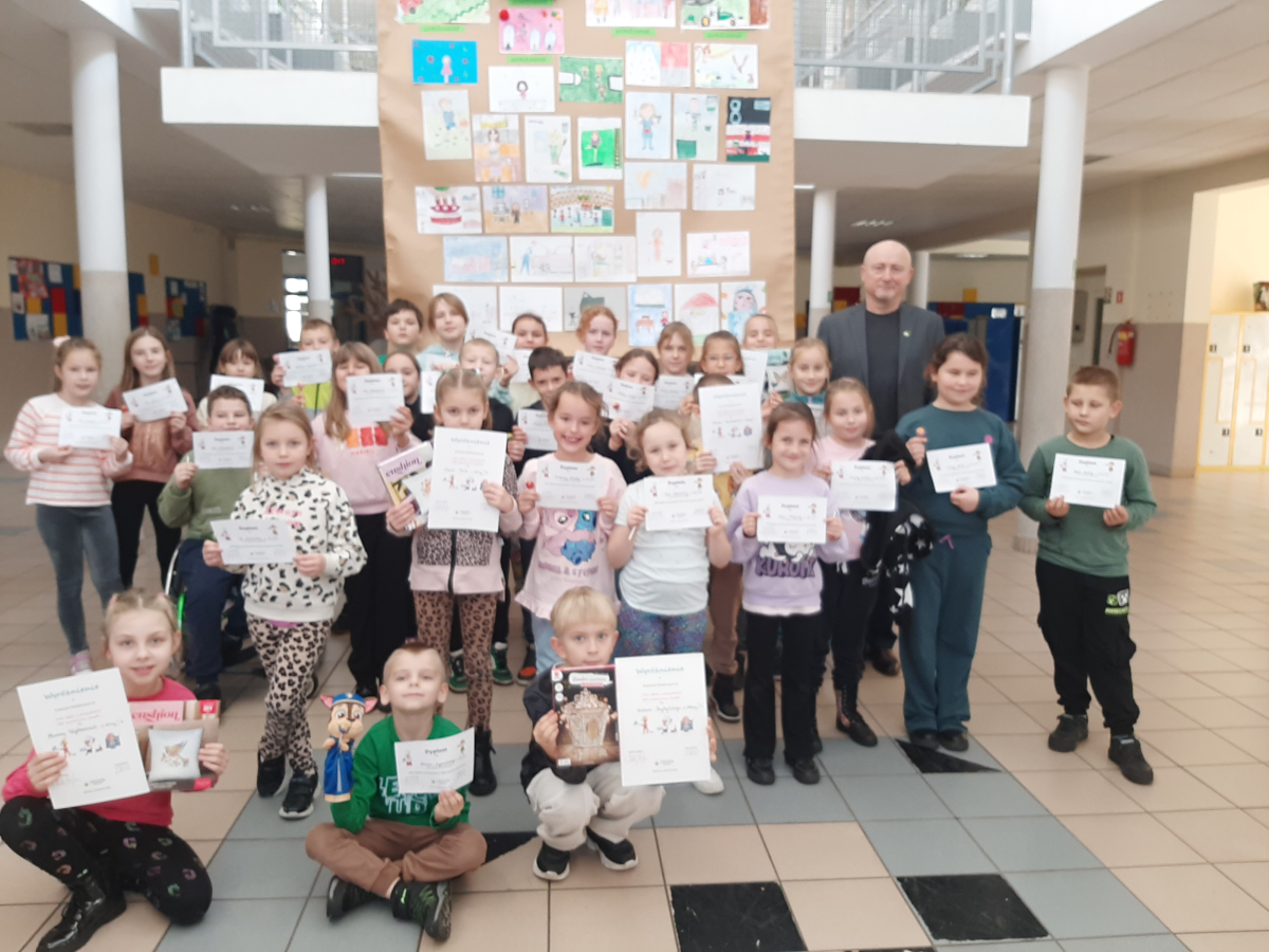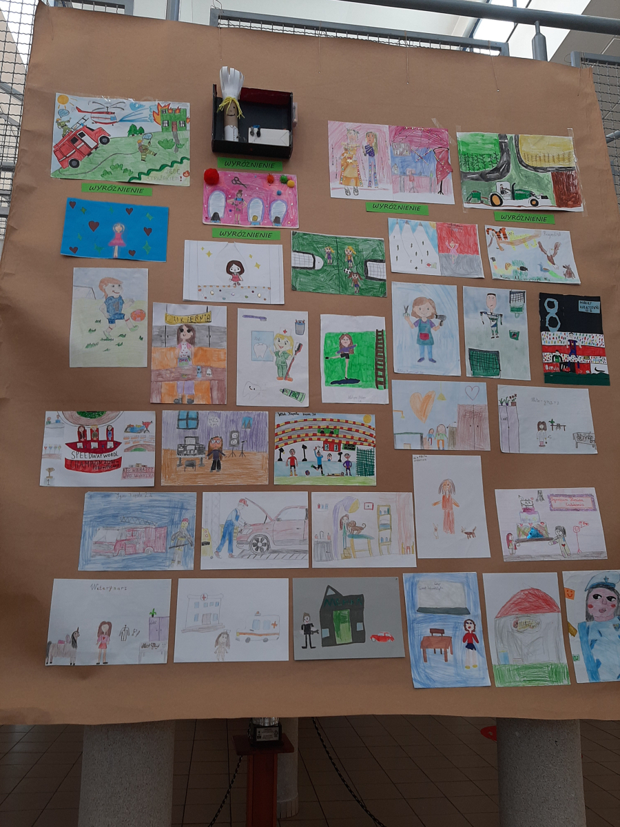 Zwieńczeniem tygodnia kariery była wystawa prac i podsumowanie konkursu plastycznego pt.”Kim będę w przyszłości? Mój wymarzony zawód” W konkursie uczestniczyło 32 dzieci z klas I-IV, a przyznano 5 wyróżnień. Trafiły one do Hanny Wojtkowiak z klasy I b, Emilii Rosik z klasy I a, Martyny Gierlik z klasy III a, Wiktora Przybylskiego i Marcela Frąckowiaka z klasy I c. Zwycięzcom gratulujemy, a wszystkim dzieciom dziękujemy za tak liczny udział w konkursie.