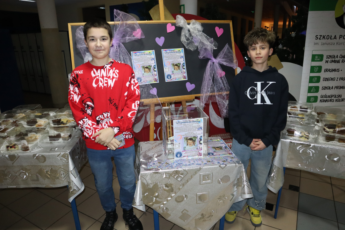 Wyrazy uznania kierujemy do wolontariatu szkolnego za ogromne zaangażowanie w organizację zbiórki dla Nikodema (udało się w niej zebrać kwotę 3152,46 zł) oraz przygotowanie kawiarenki – Wasza pomoc i otwarte serca miały nieocenioną wartość.