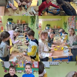 Przygotowania do klasowej wigilii w klasie II e. Zdobienie pierników