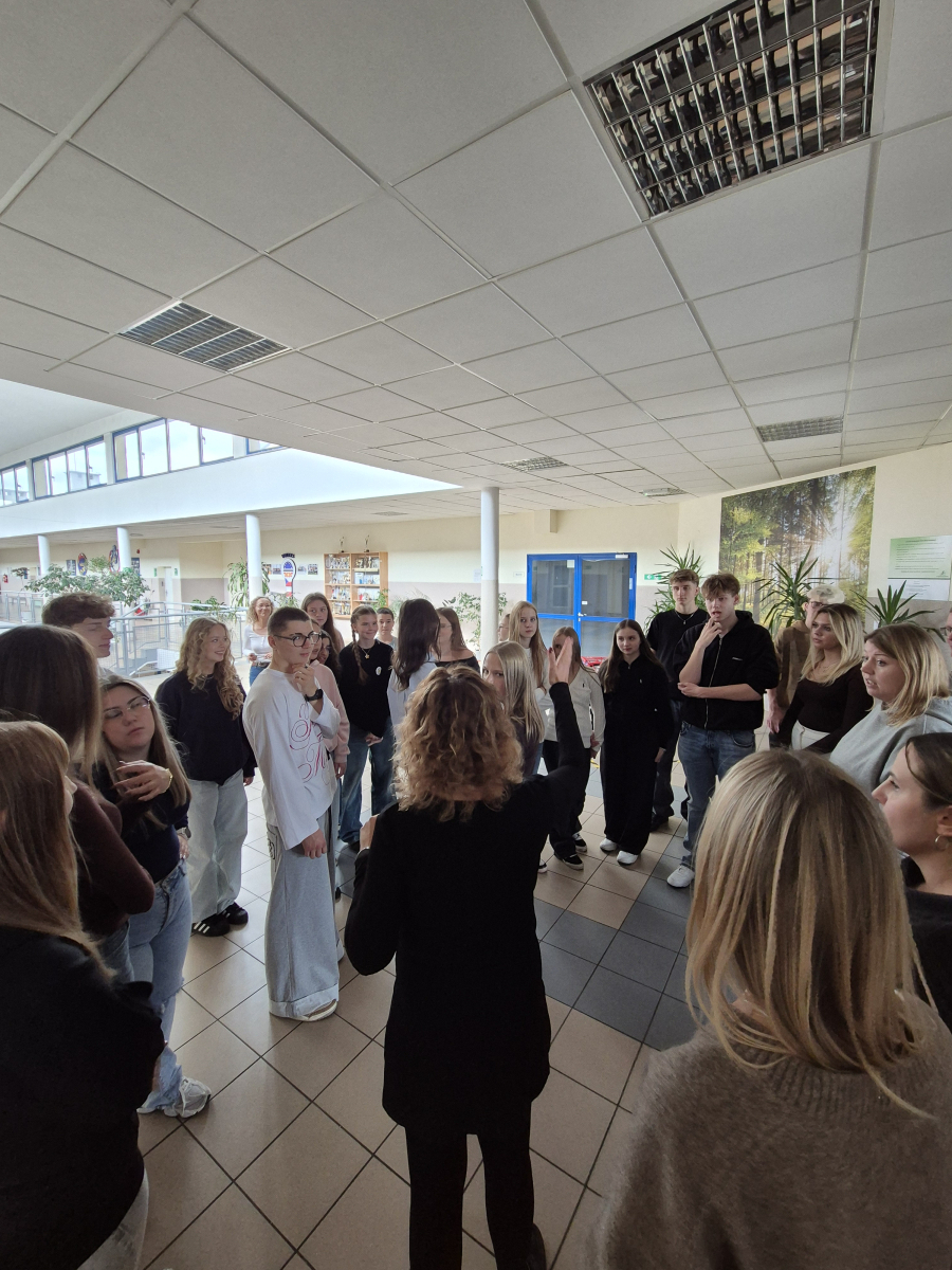 Pierwszy dzień rozpoczął się od wizyty w I Liceum Ogólnokształcącym w Rawiczu, gdzie młodzież miała okazję zwiedzić budynek szkoły i zapoznać się z jego przestrzenią edukacyjną. Następnie uczestnicy udali się do Szkoły Podstawowej w Sierakowie, gdzie zostali powitani przez dyrektora placówki – Pana Andrzeja Szyszko. Tam rozpoczęła się część integracyjna – pełna gier, zabaw i wspólnych aktywności, które sprzyjały przełamaniu pierwszych lodów i stworzyły przestrzeń do budowania relacji.