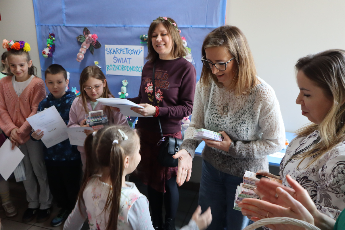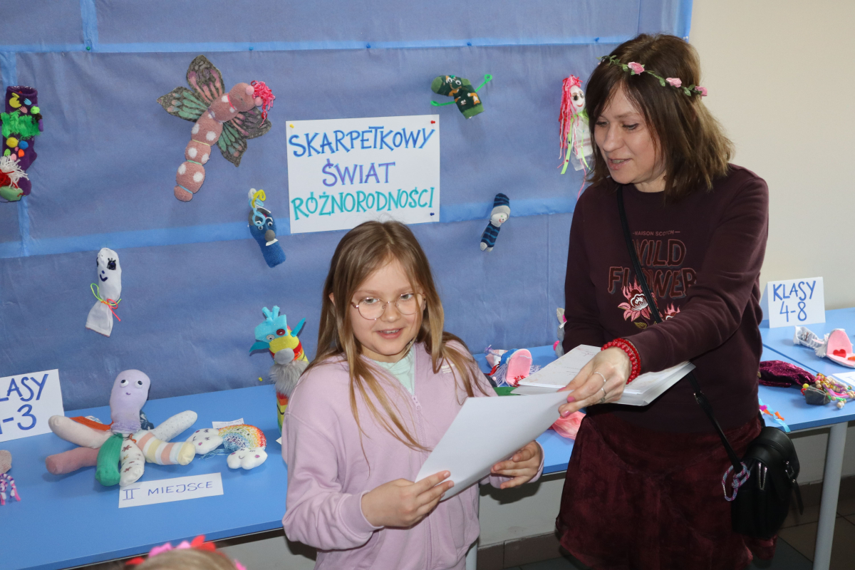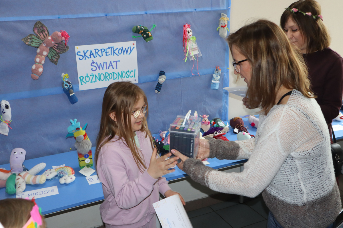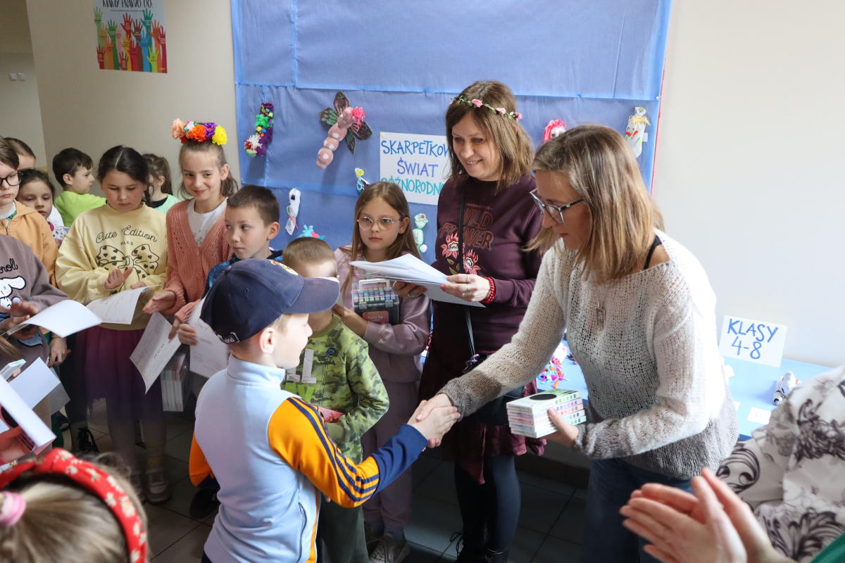 Z okazji Światowego Dnia Zespołu Downa, obchodzonego 21 marca 2026 roku jako Dzień Kolorowej Skarpetki, w naszej szkole został zorganizowany konkurs plastyczny pt. „Skarpetkowy Świat Różnorodności”. W wydarzeniu wzięli udział uczniowie klas I–III oraz IV–VIII, którzy poprzez twórczą ekspresję mieli okazję wyrazić solidarność z osobami z trisomią 21 oraz promować wartości takie jak empatia, tolerancja i akceptacja.