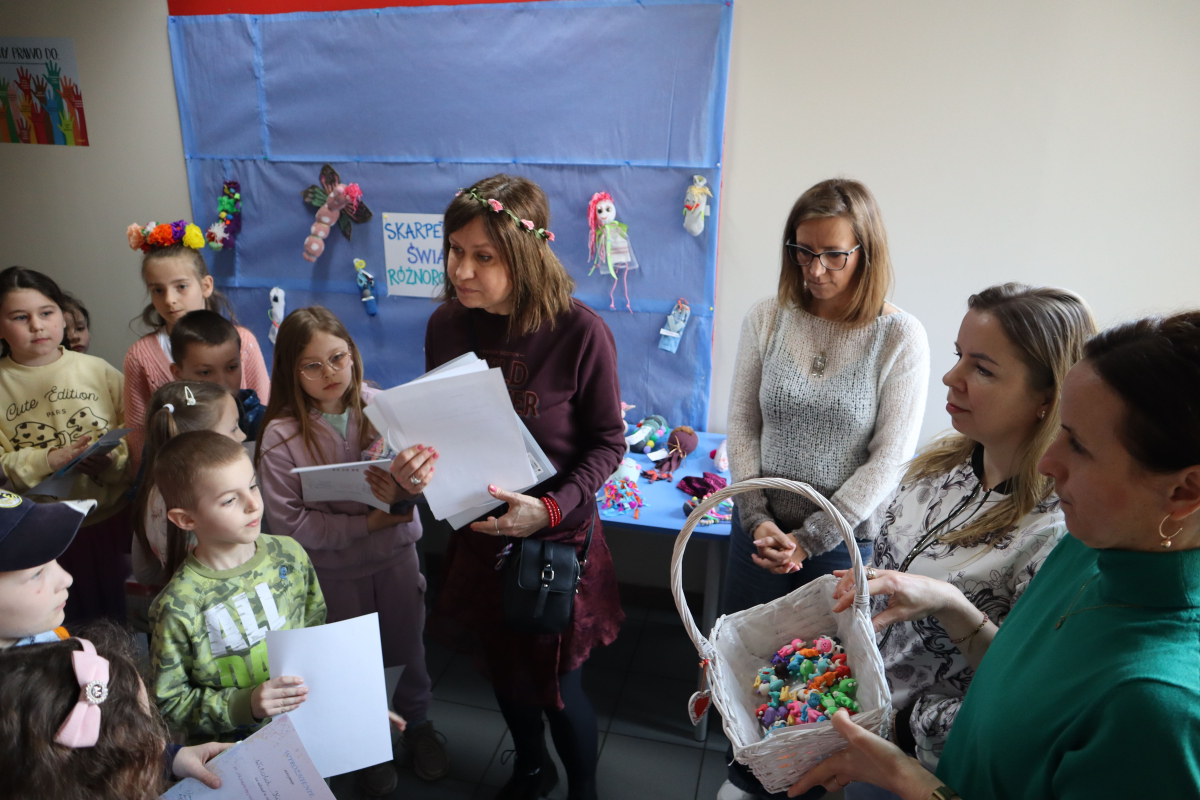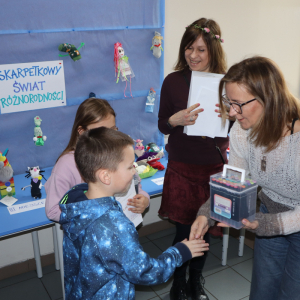 Kolorowe skarpetki, będące symbolem Dnia Zespołu Downa, stały się inspiracją do stworzenia wyjątkowych prac plastycznych. Uczniowie przygotowali niepowtarzalne formy przestrzenne – maskotki, pacynki, zabawki i inne kreatywne projekty, wykorzystując skarpetki oraz różnorodne materiały plastyczne.