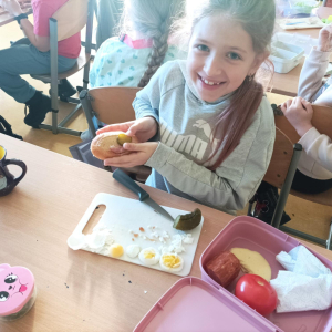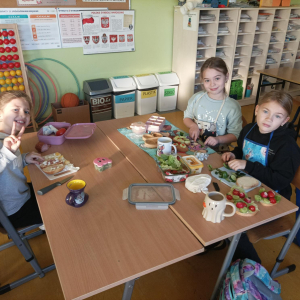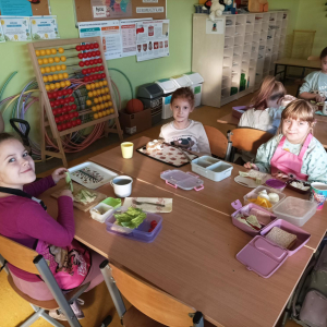 Było wesoło, smacznie i sympatycznie. Takie śniadanie było dla nich prawdziwą frajdą. Na twarzach promieniał uśmiech i zachwyt. Śniadanka przygotowane przez dzieci były przepyszne, urozmaicone, niecodzienne… uuum palce lizać!