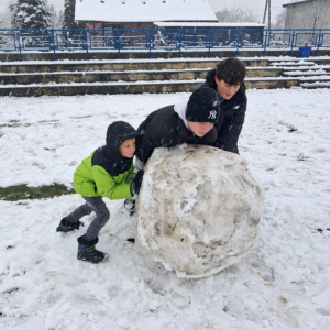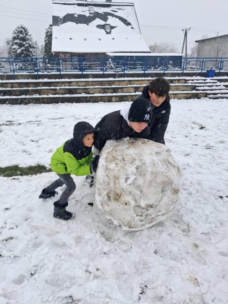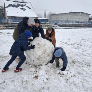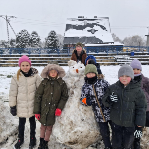 W ramach tutoringu rówieśniczego uczniowie z klasy 7A odwiedzili młodsze koleżanki i kolegów ze świetlicy. Wszyscy wspólnie spędzili czas na szkolnym boisku, korzystając z zimowej aury i świeżego śniegu. Podczas zajęć starsi i młodsi uczniowie bawili się razem, a ich wspólnym dziełem był piękny, śnieżny bałwan. Celem spotkania była integracja uczniów młodszych i starszych, wspólna zabawa oraz nauka współpracy. Zimowe aktywności na świeżym powietrzu sprawiły uczniom wiele radości i na długo pozostaną miłym wspomnieniem.