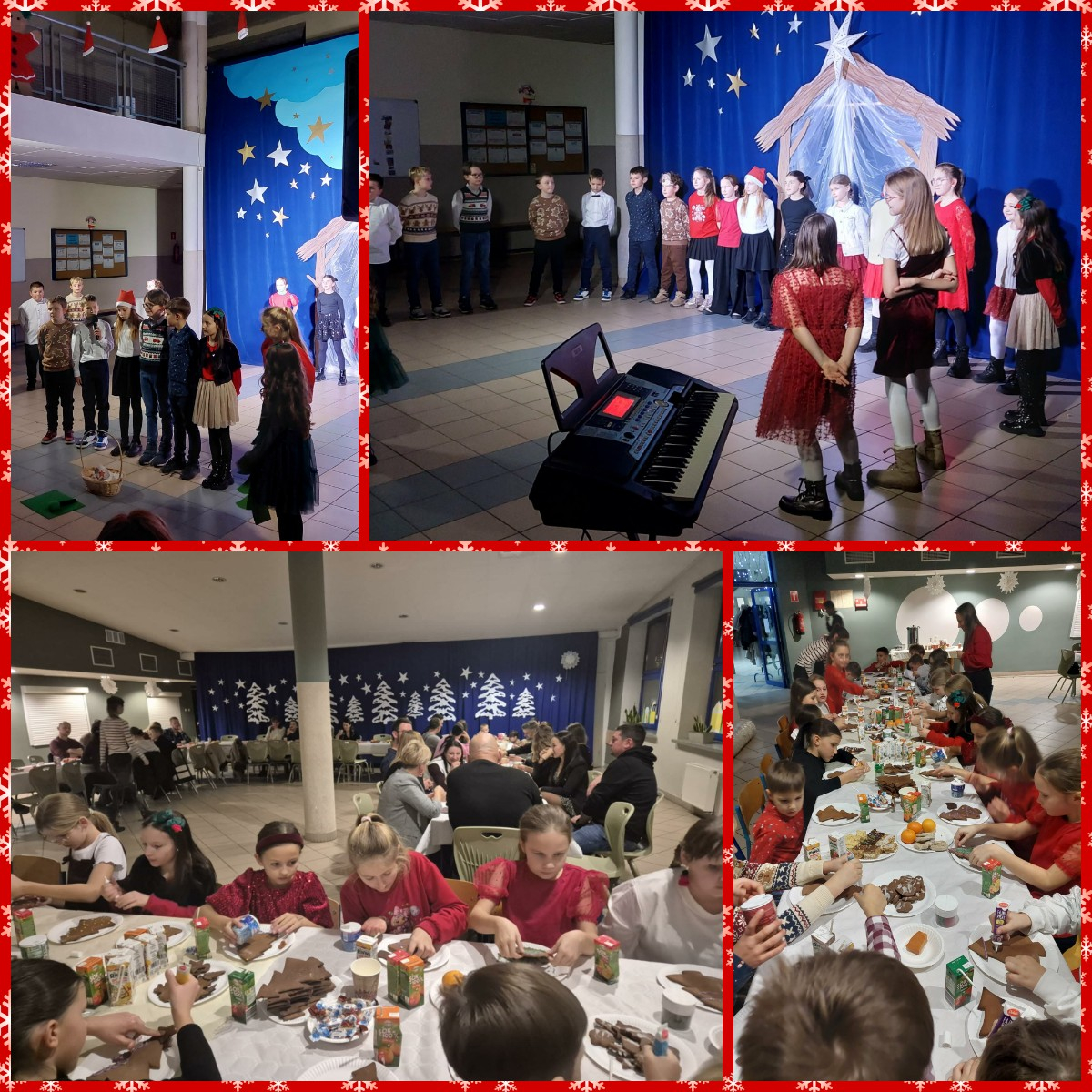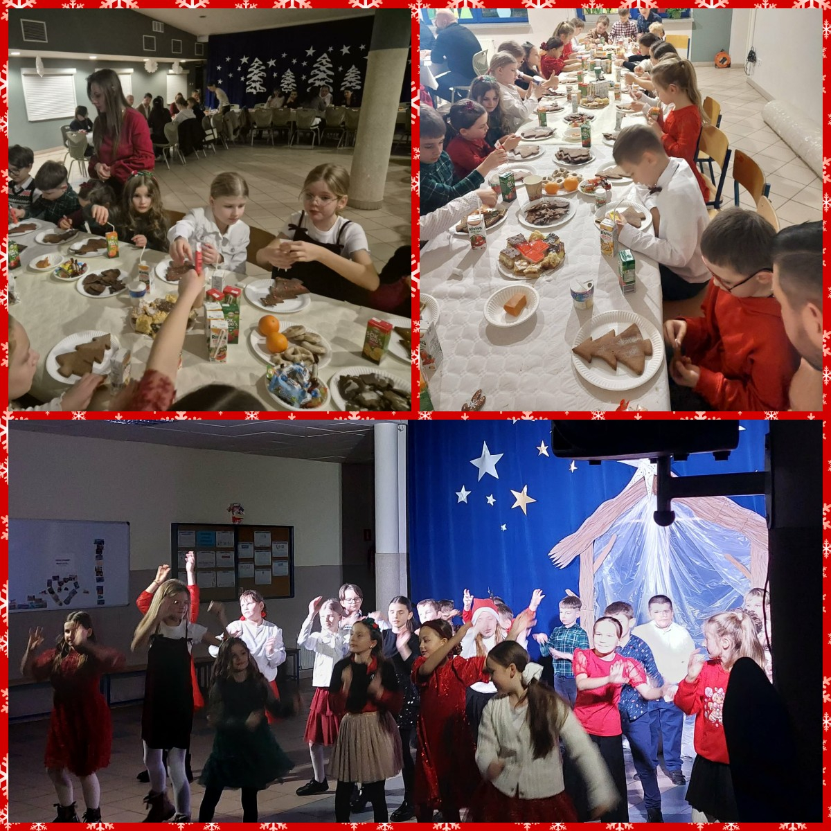 Bożonarodzeniowy klimat dopełniały okolicznościowe dekoracje, lampki, choinka oraz odświętnie nakryty stół z poczęstunkiem. Dużą atrakcją dla dzieci było dekorowanie pierników upieczonych przez rodziców. Nie zabrakło również życzeń, dzielenia się opłatkiem, ciepłych słów, rozmów przy słodkim poczęstunku, a przede wszystkim spędzonego wspólnie czasu. Spotkanie upłynęło w miłej i serdecznej atmosferze, na długo pozostanie w naszej pamięci. Takie szczególne momenty wzmacniają wzajemne relacje, integrują dorosłych i dzieci.