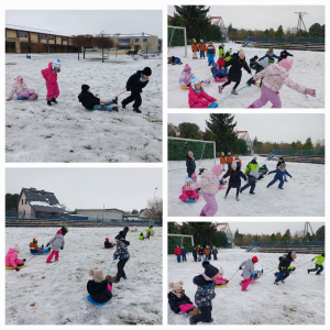 Wiele radości sprawił dzieciom długo oczekiwany śnieg. Uczniowie klasy 1c w ramach realizacji programu „Mały Mistrz” zażyli ruchu na świeżym powietrzu. Zdobywając sprawność saneczkarza. Dzieciaki doskonale się bawiły, a uśmiechy nie schodziły im z twarzy.