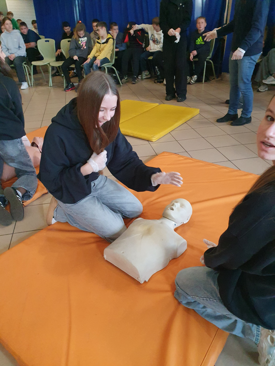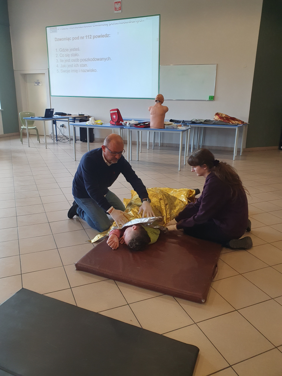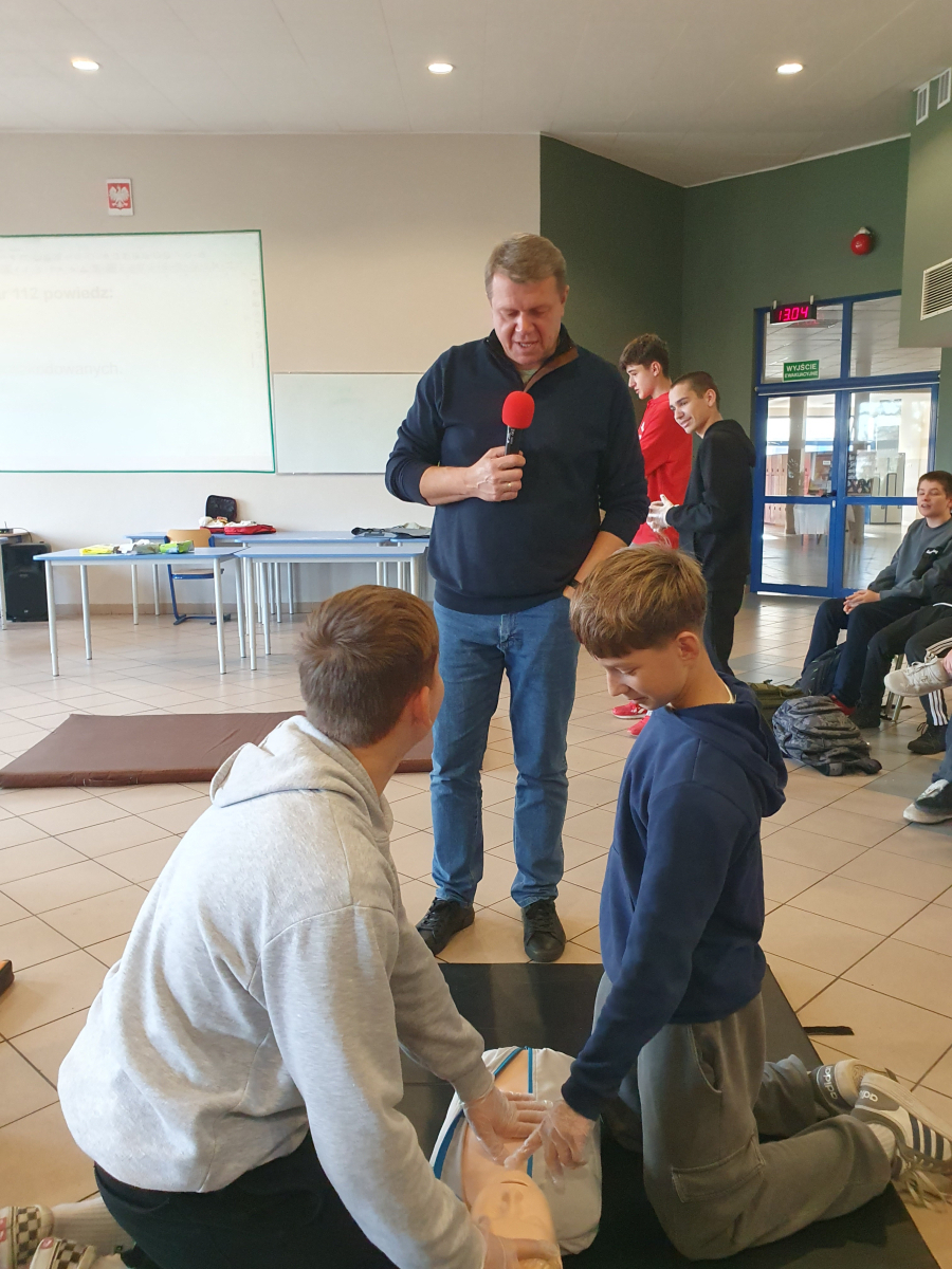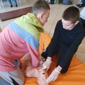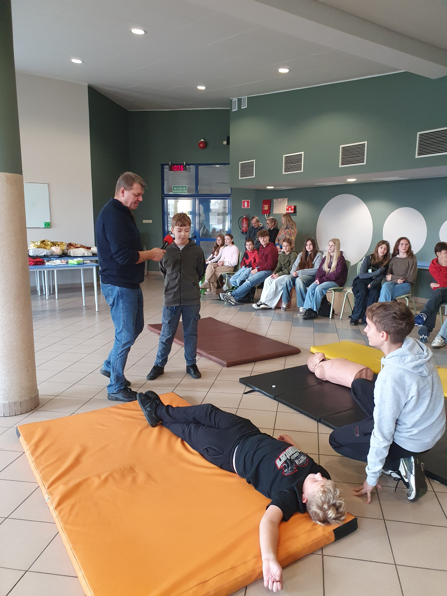 W środę w naszej szkole odbyło się szkolenie z pierwszej pomocy dla klas VI i VII. Podczas dwóch godzin lekcyjnych uczniowie poznawali wyposażenie apteczki, algorytm postępowania na wypadek udzielania pierwszej pomocy oraz sposoby dbania o własne bezpieczeństwo na miejscu zdarzenia. Kurs prowadził pan Przemysław Nowicki i pan Paweł Ciosek.