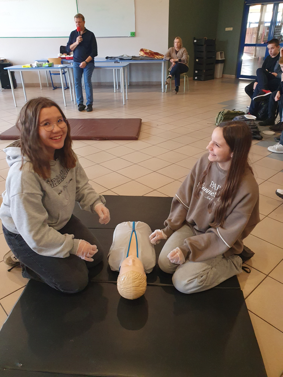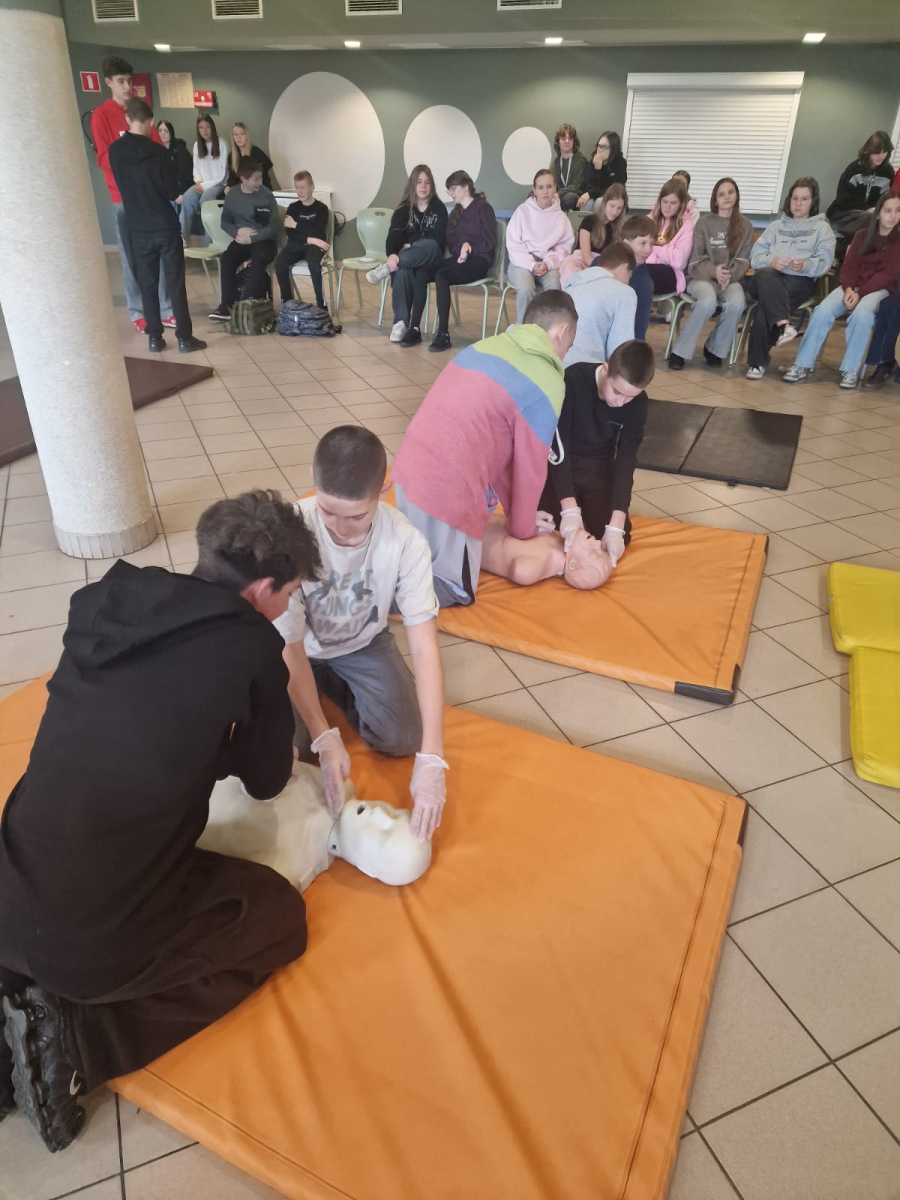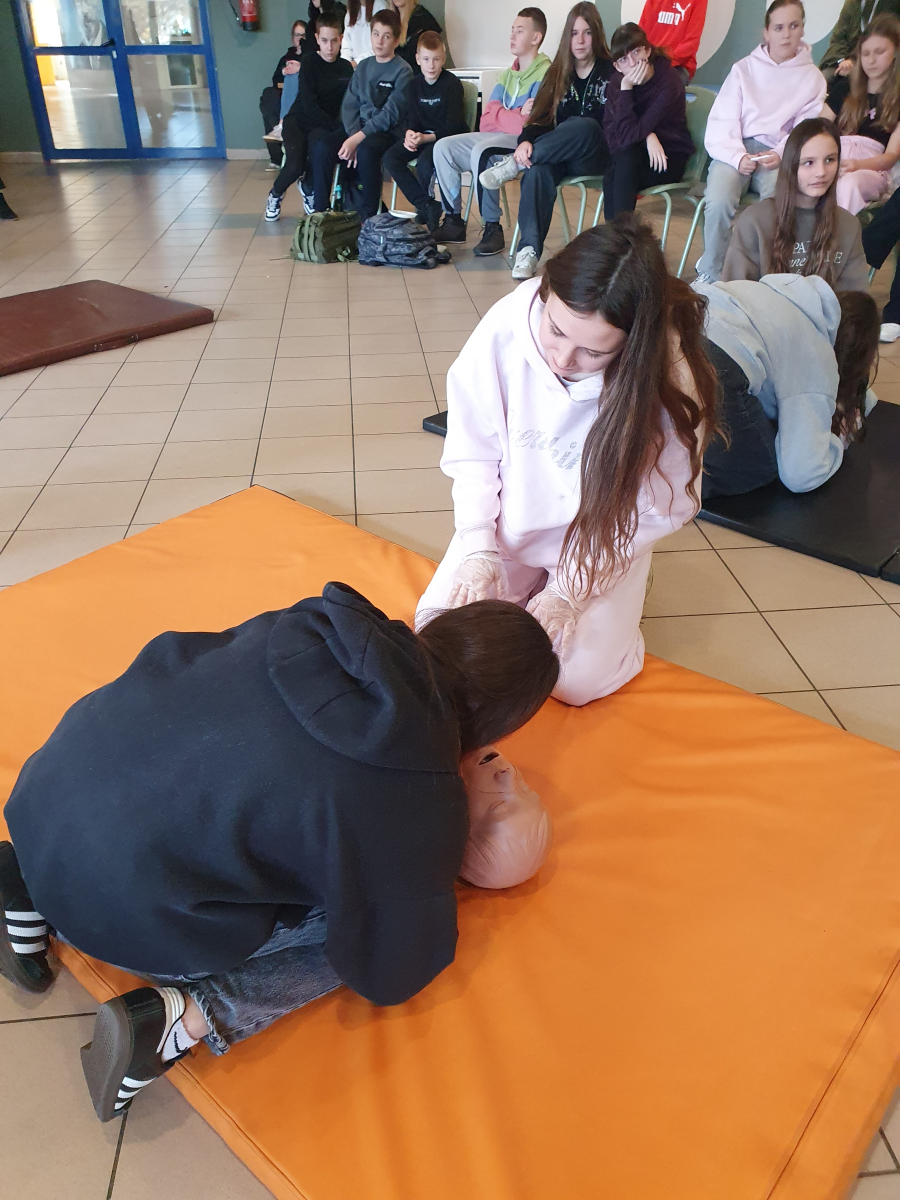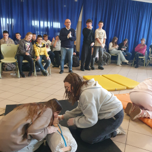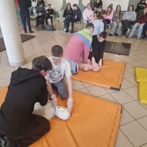 W środę w naszej szkole odbyło się szkolenie z pierwszej pomocy dla klas VI i VII. Podczas dwóch godzin lekcyjnych uczniowie poznawali wyposażenie apteczki, algorytm postępowania na wypadek udzielania pierwszej pomocy oraz sposoby dbania o własne bezpieczeństwo na miejscu zdarzenia. Kurs prowadził pan Przemysław Nowicki i pan Paweł Ciosek.