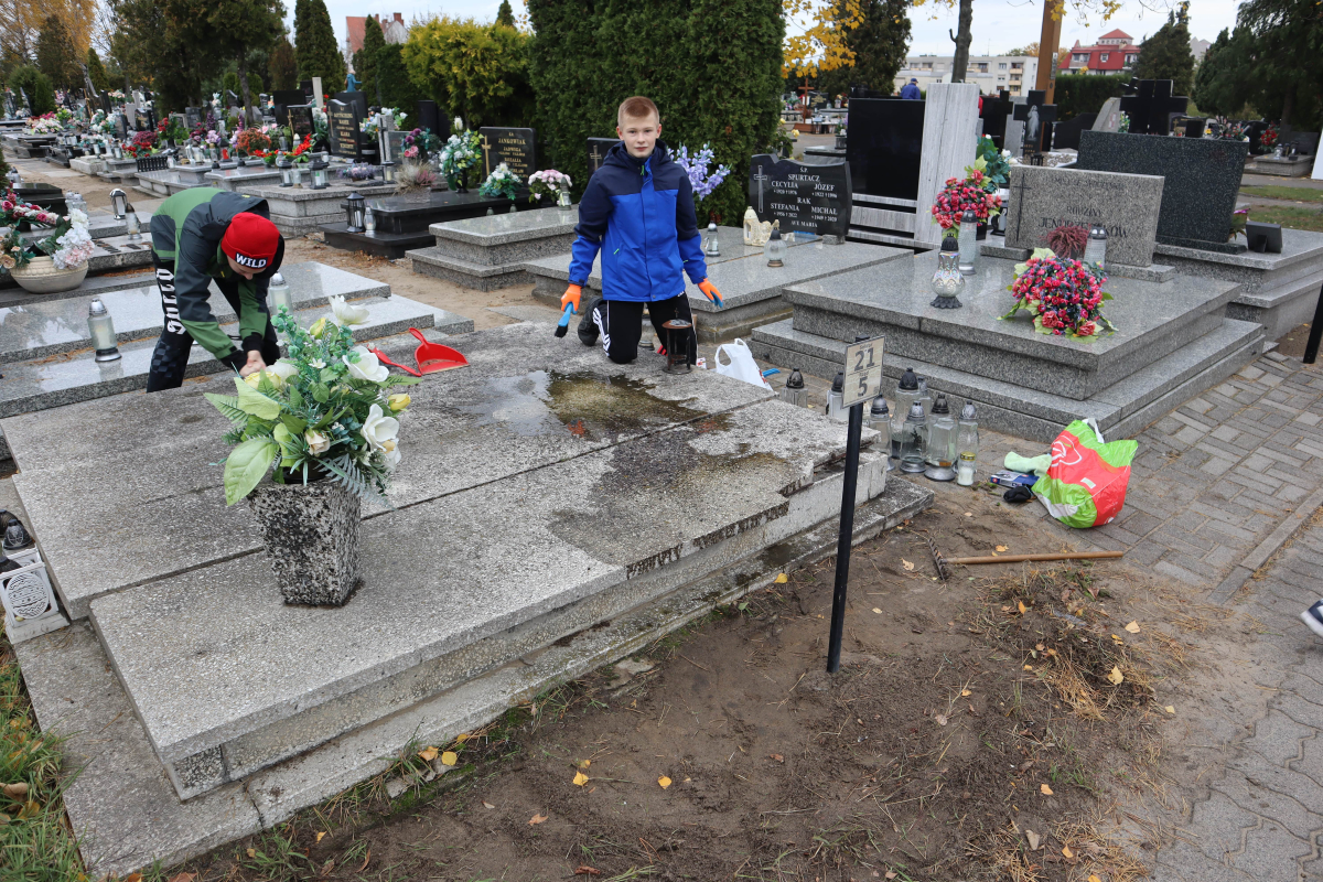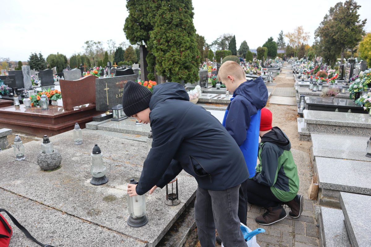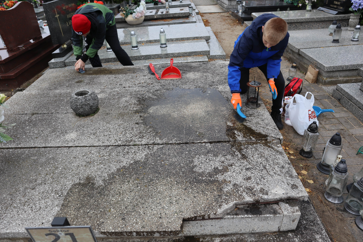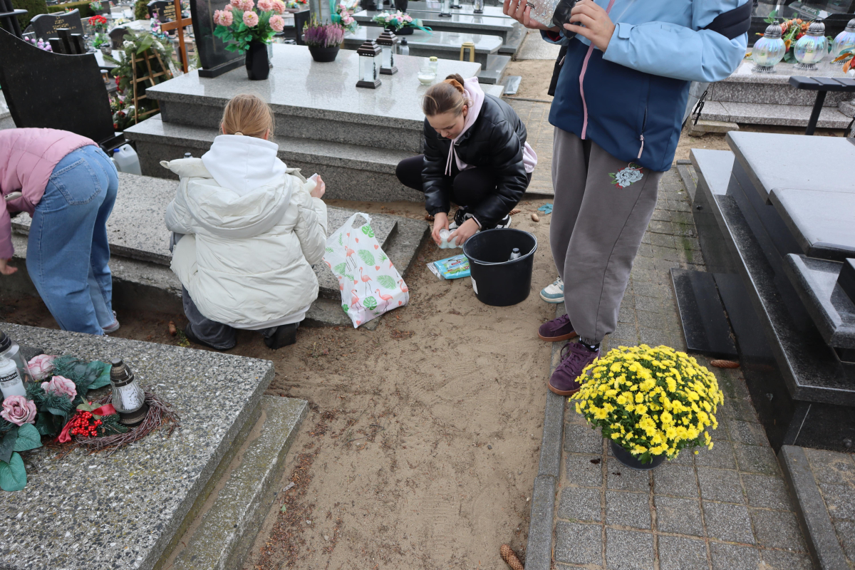 Uczniowie spisali się na medal! Z zaangażowaniem porządkowali groby, grabili liście, myli nagrobki i tworzyli piękne, ciche świadectwo empatii i szacunku.