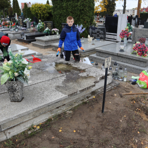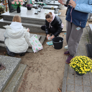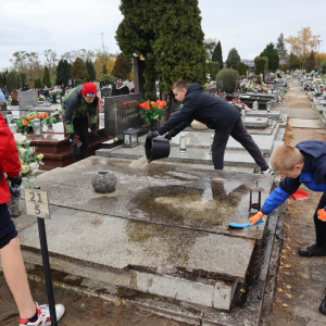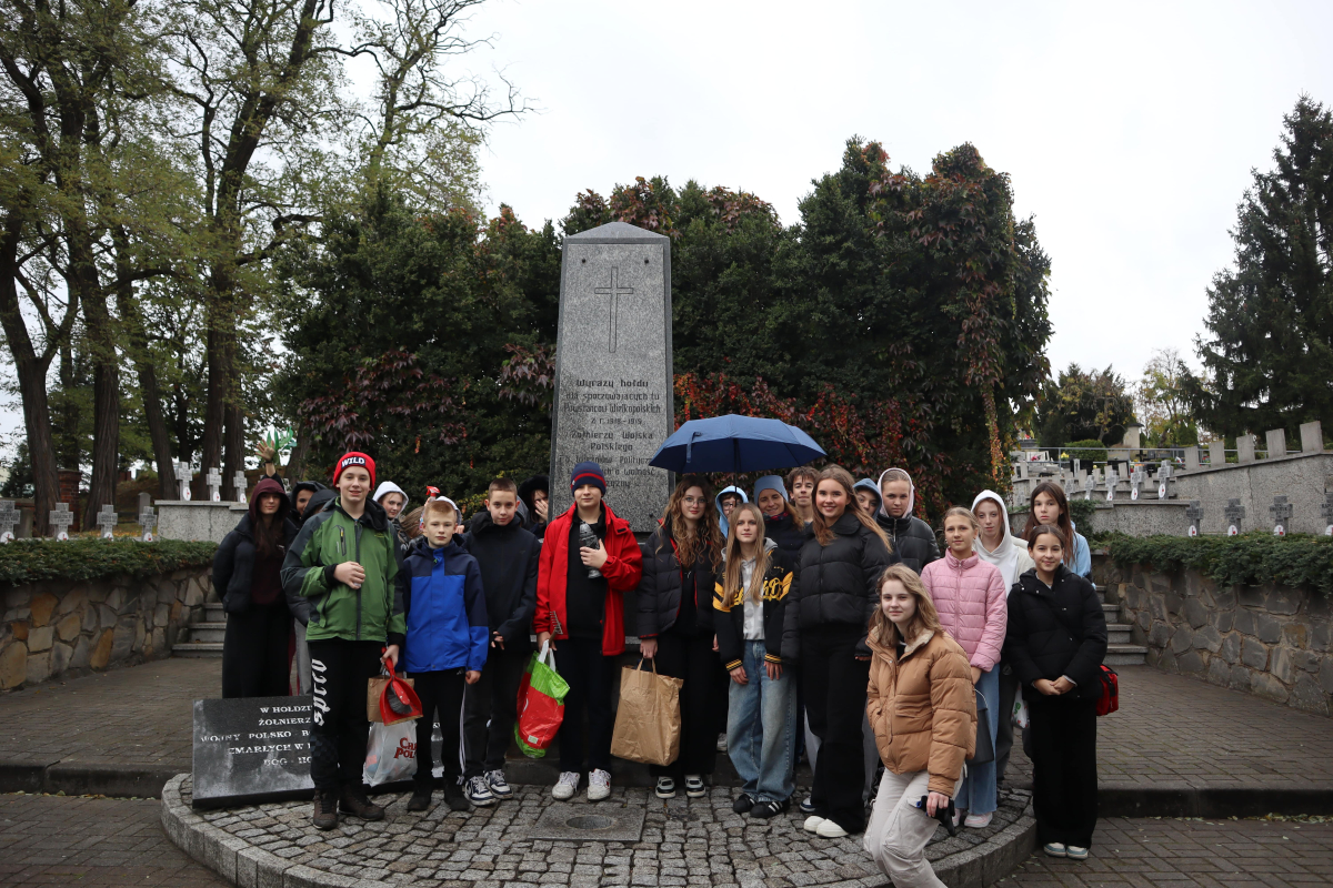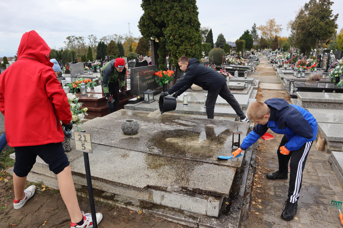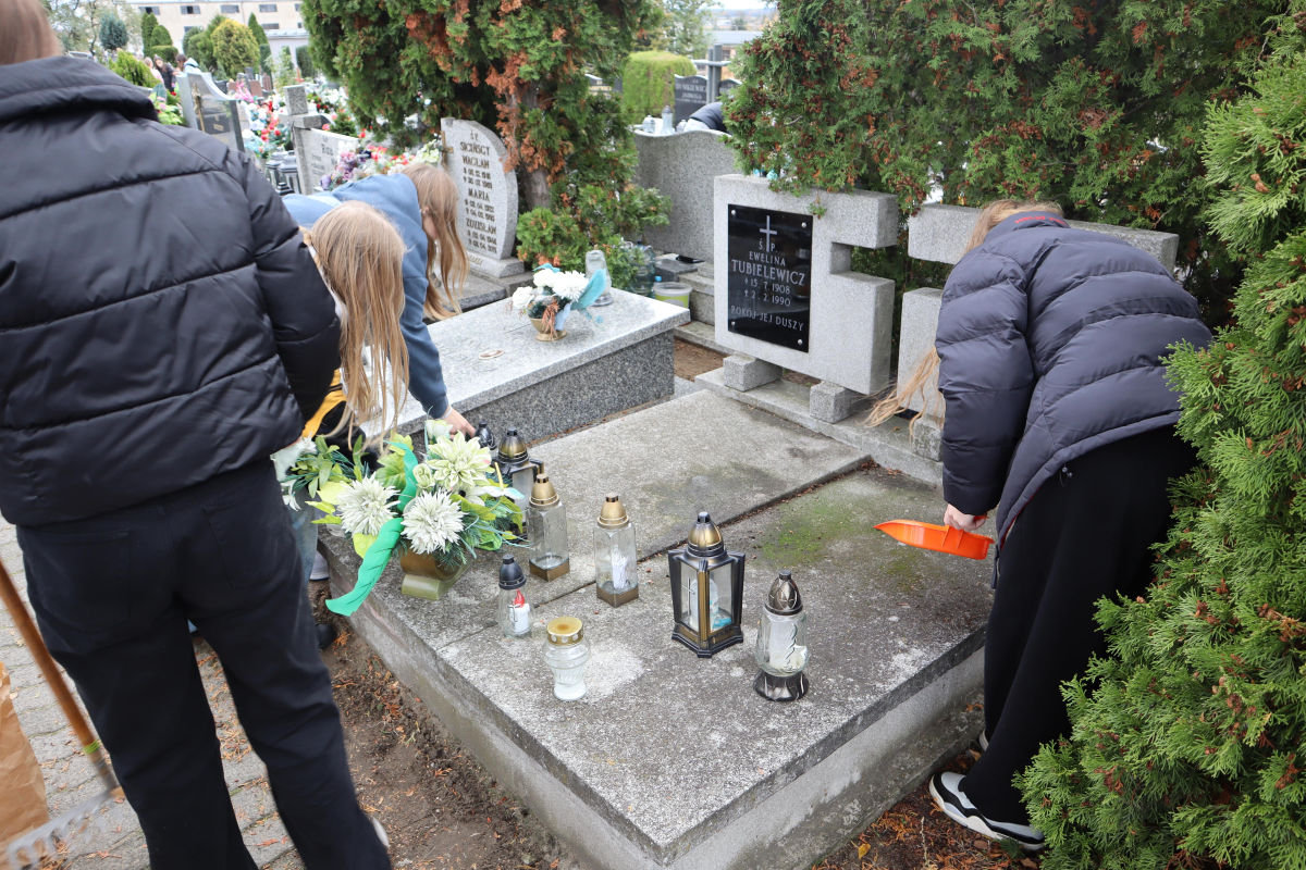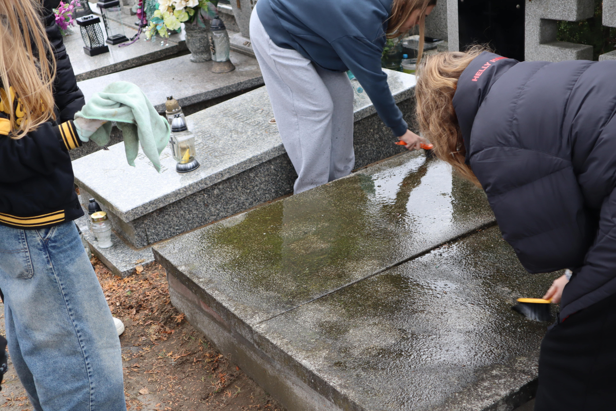 Uczniowie spisali się na medal! Z zaangażowaniem porządkowali groby, grabili liście, myli nagrobki i tworzyli piękne, ciche świadectwo empatii i szacunku.