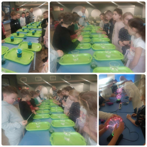 W poniedziałek 24.11 klasa IIc i IIIc uczestniczyły w warsztatach BIO-ART Eksperymentalna Akademia Żywiołów. Pani prowadząca zajęcia wprowadziła uczniów w magiczny świat wiedzy fizyczno-chemicznej. Dzieci miały okazję doświadczyć potęgi ognia, ziemi, siły wody, lekkości powietrza oraz elektryzującej mocy. Celem warsztatów było rozbudzenie ciekawości świata, uwrażliwienie na środowisko, rozwój twórczości i umiejętności obserwacji, a także nauka o znaczeniu żywiołów dla człowieka. Dzieci uczyły się, że nauka może być nie tylko wartościowa, ale także niezwykle zabawna i pełna niespodzianek.