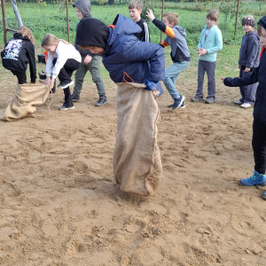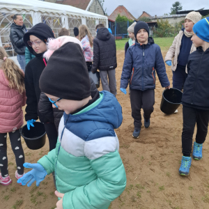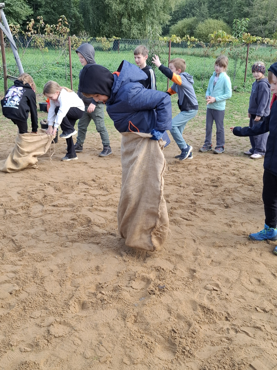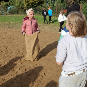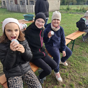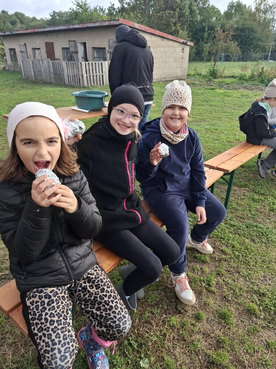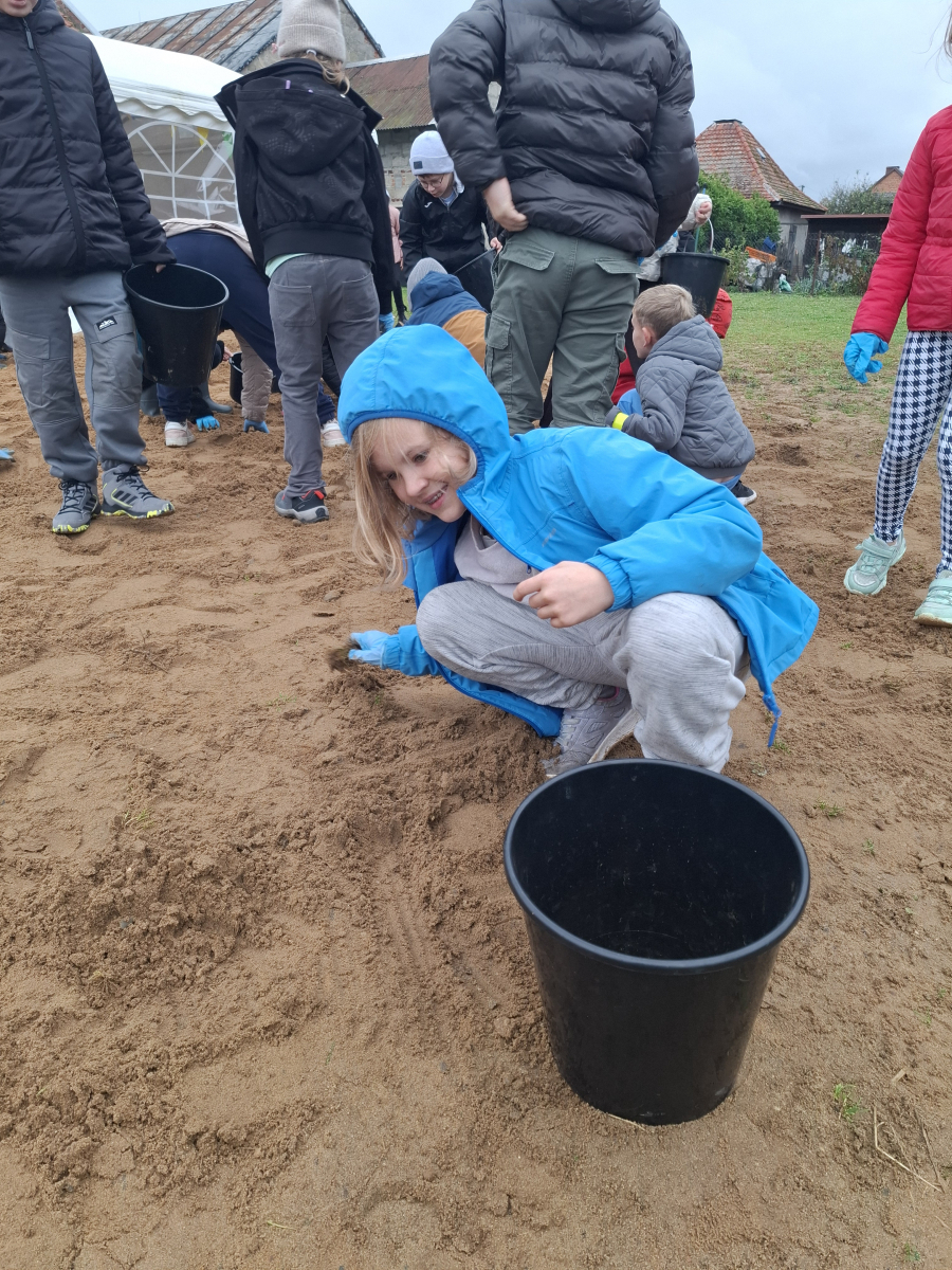 W październiku uczniowie klasy 2a i 3d wybrali się na wyjątkową wycieczkę - na wykopki. Choć dzisiaj to zajęcie coraz rzadziej spotykane, dzieci mogły na własne oczy zobaczyć, jak dawniej wyglądała praca na roli i jak wiele wysiłku trzeba włożyć, by zebrać plony z pola. Uczniowie poznali różne odmiany ziemniaków, dowiedzieli się, jak rośliny rosną. Po zakończonych wykopkach nadszedł czas na ognisko. Dzieci wspólnie piekły ziemniaki w popiele, a ich zapach roznosił się po całej okolicy. Nie zabrakło także zabaw ruchowych z ziemniakami czy konkursu na najśmieszniejszego ludzika z ziemniaka.