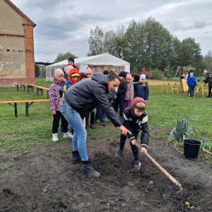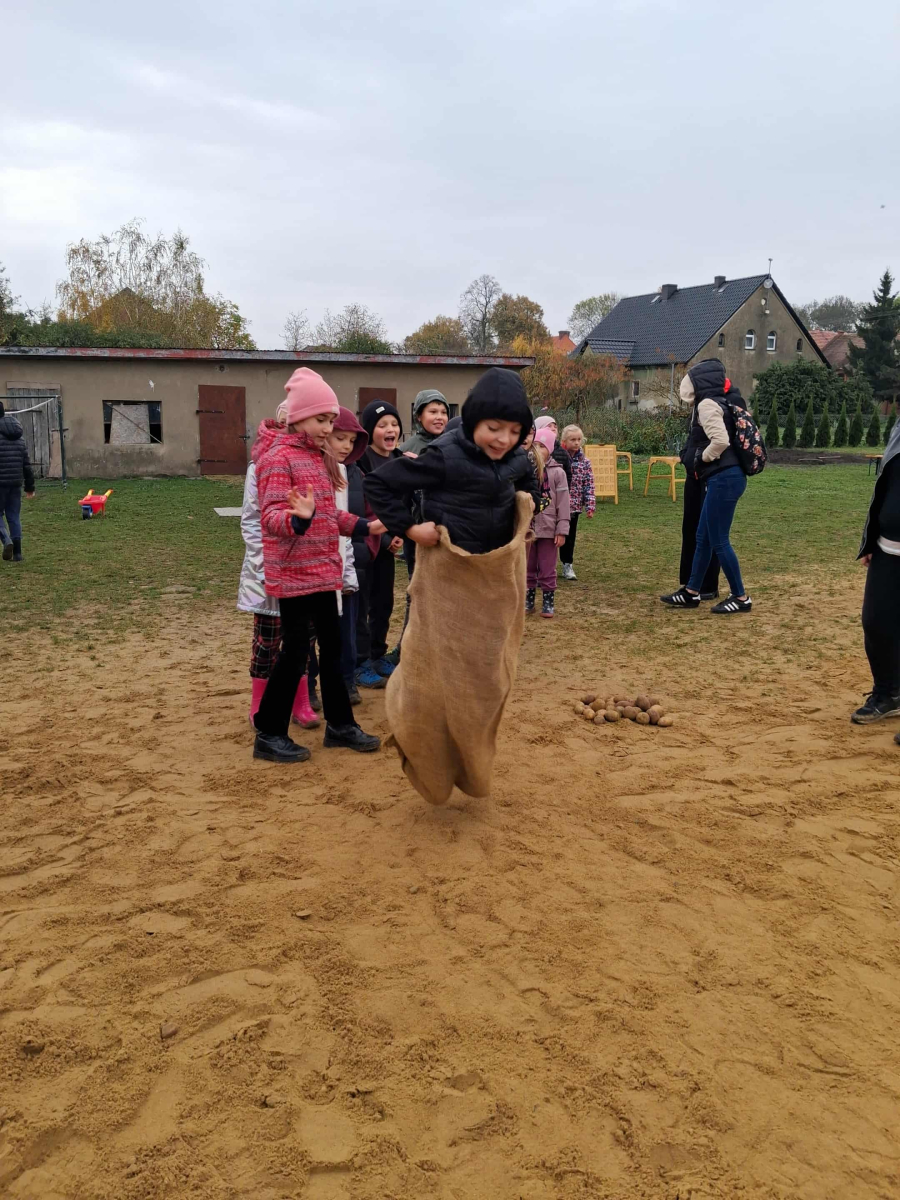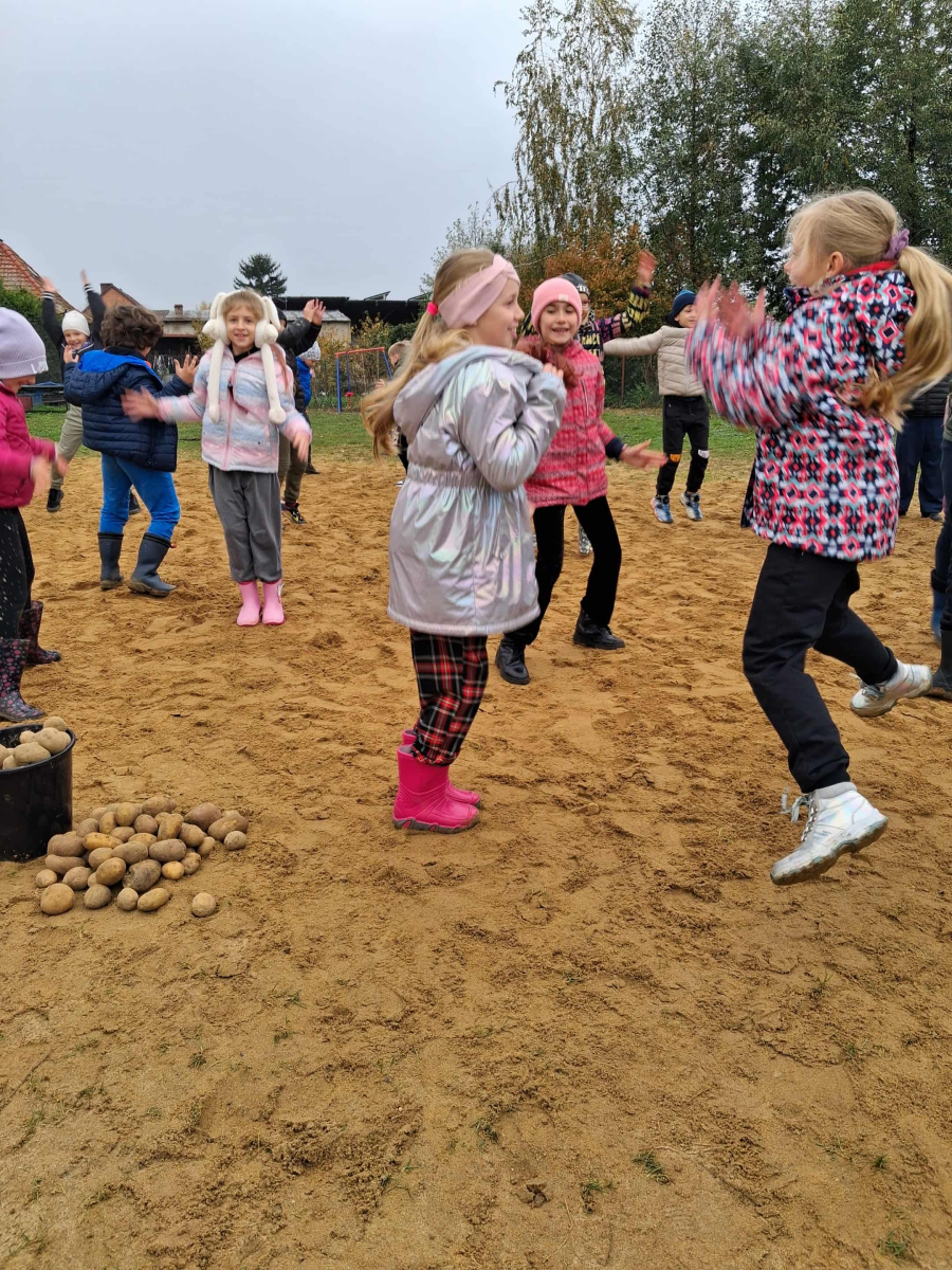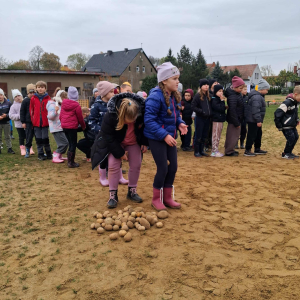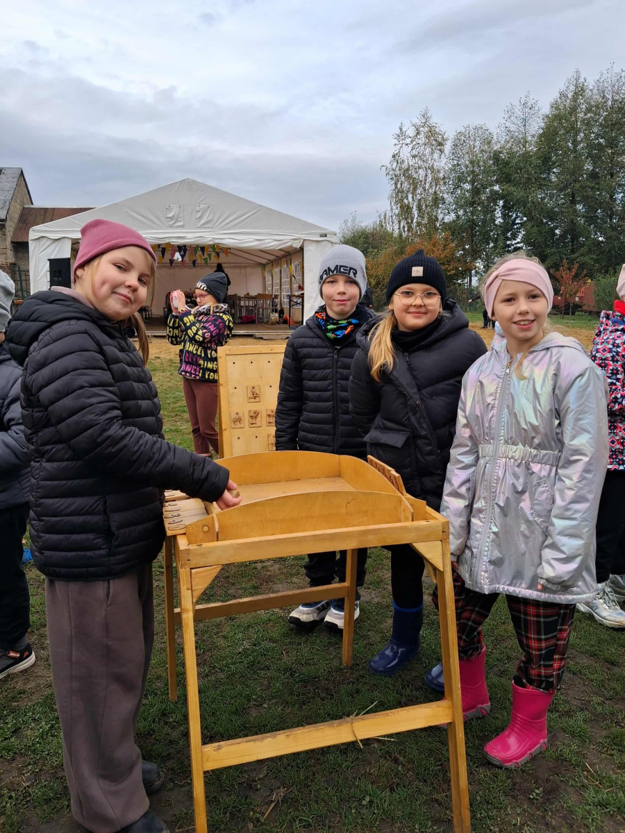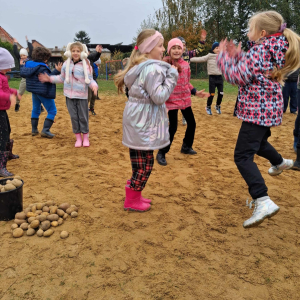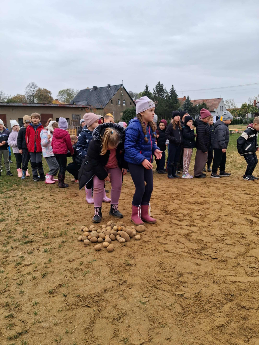 Dnia 22.10.2025r. klasy: 2b i 2e wyruszyły na jesienną wycieczkę do Czechnowa. Tematem przewodnim wyjazdu był "ziemniak". W trakcie wycieczki dzieci miały okazję zdobyć wiedzę na temat popularnego w Wielkopolsce warzywa, a także w praktyce przetestować zdobyte wiadomości. Były różnego rodzaju konkurencje sportowe z ziemniakami w roli głównej, popularne niegdyś "szkolne wykopki". Uczniowie mogli także samodzielnie przygotować i skosztować pieczonego w ognisku ziemniaka z tradycyjnym "gzikiem". Nie zabrakło również deseru, tj. słodkiej waty cukrowej. Na koniec wycieczki każde dziecko przygotowało kolorową przypinkę, która później ozdobiła ich ubrania, plecaki. Pełni wrażeń oraz nowych doświadczeń wróciliśmy do szkoły.