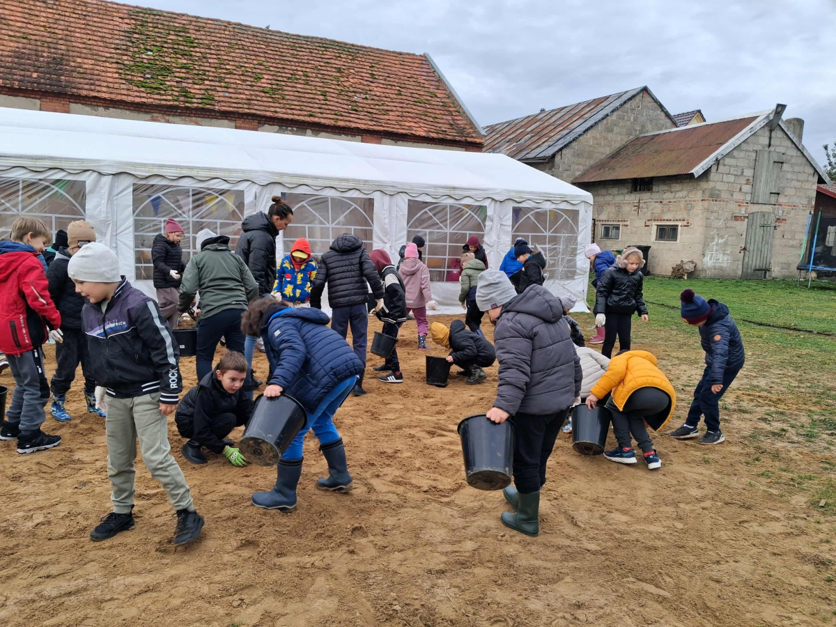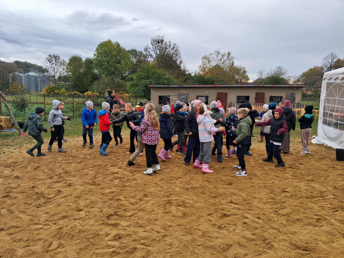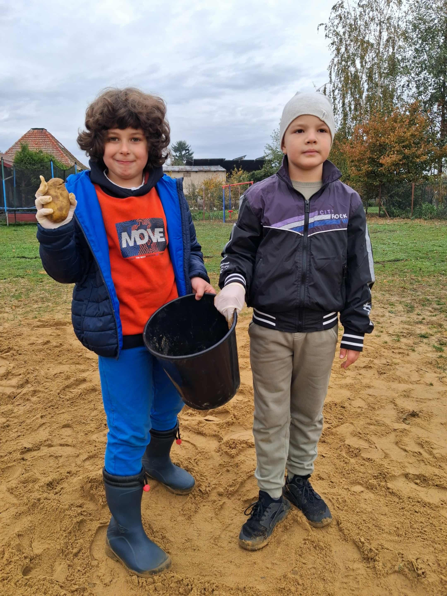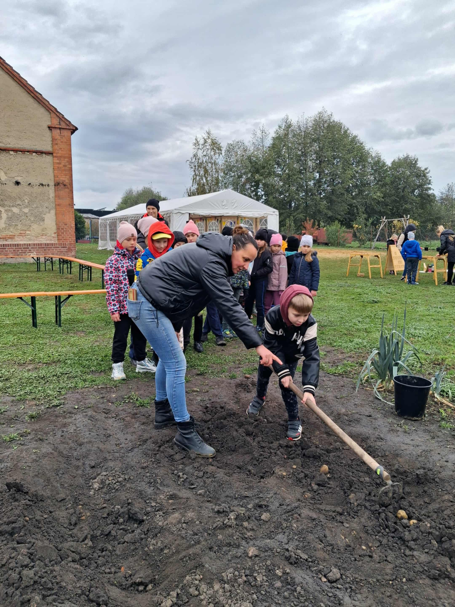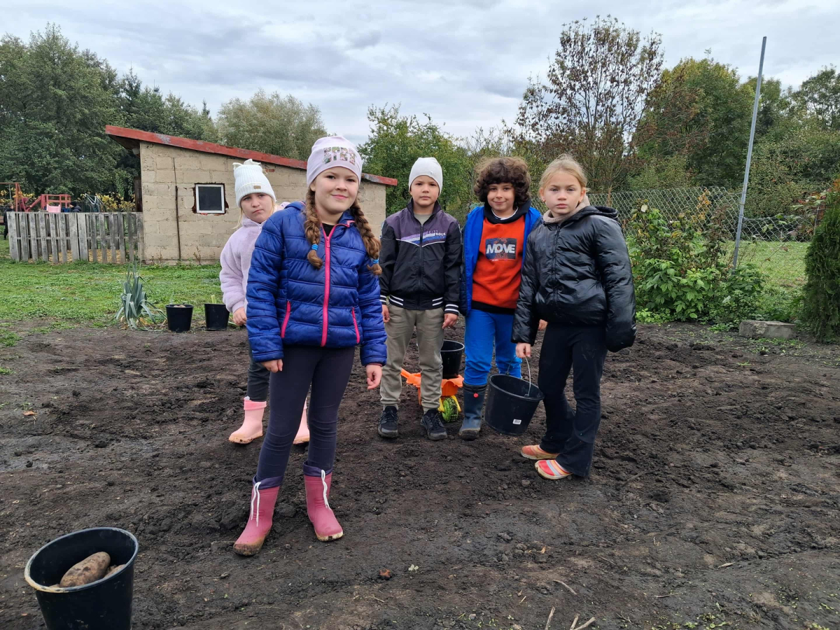 Dnia 22.10.2025r. klasy: 2b i 2e wyruszyły na jesienną wycieczkę do Czechnowa. Tematem przewodnim wyjazdu był "ziemniak". W trakcie wycieczki dzieci miały okazję zdobyć wiedzę na temat popularnego w Wielkopolsce warzywa, a także w praktyce przetestować zdobyte wiadomości. Były różnego rodzaju konkurencje sportowe z ziemniakami w roli głównej, popularne niegdyś "szkolne wykopki". Uczniowie mogli także samodzielnie przygotować i skosztować pieczonego w ognisku ziemniaka z tradycyjnym "gzikiem". Nie zabrakło również deseru, tj. słodkiej waty cukrowej. Na koniec wycieczki każde dziecko przygotowało kolorową przypinkę, która później ozdobiła ich ubrania, plecaki. Pełni wrażeń oraz nowych doświadczeń wróciliśmy do szkoły.