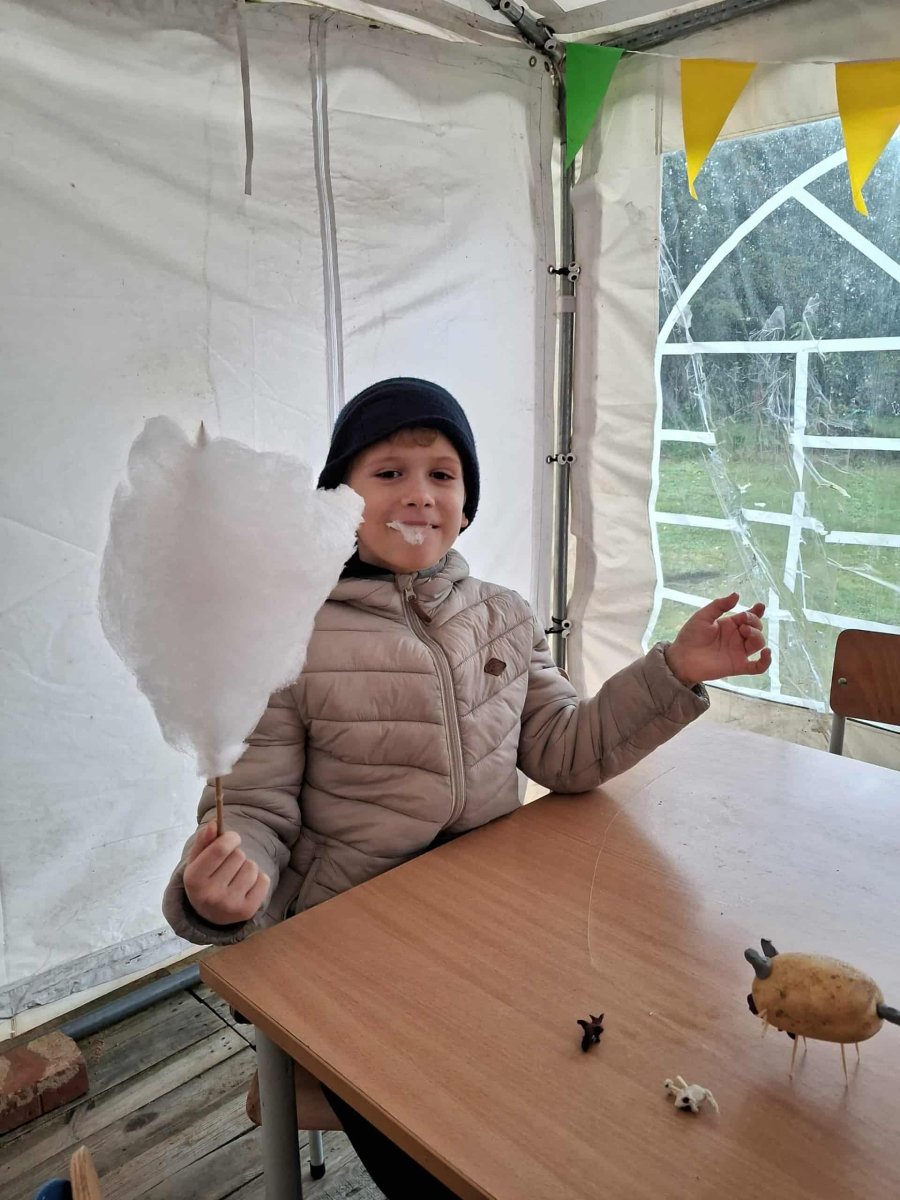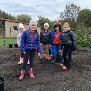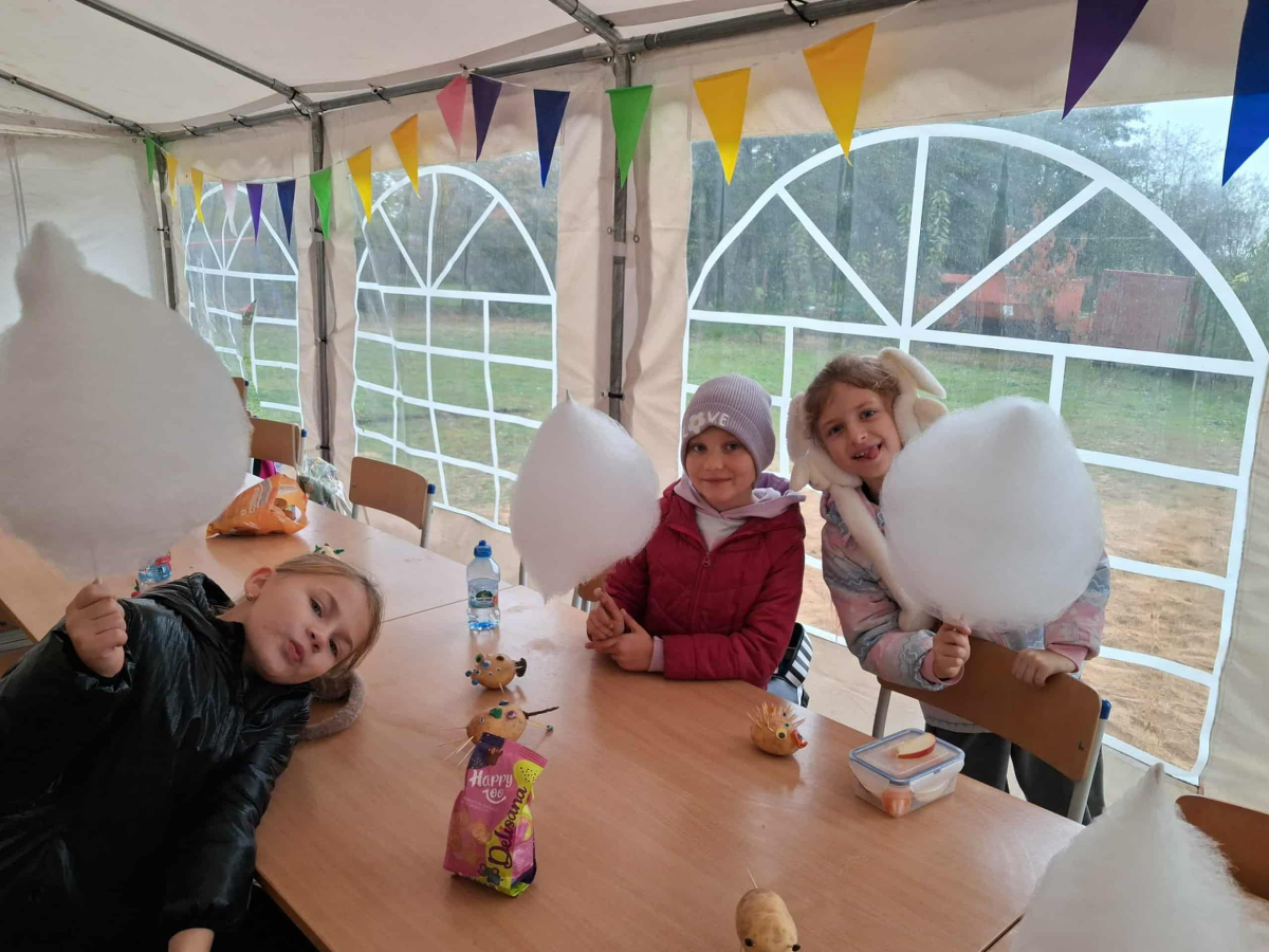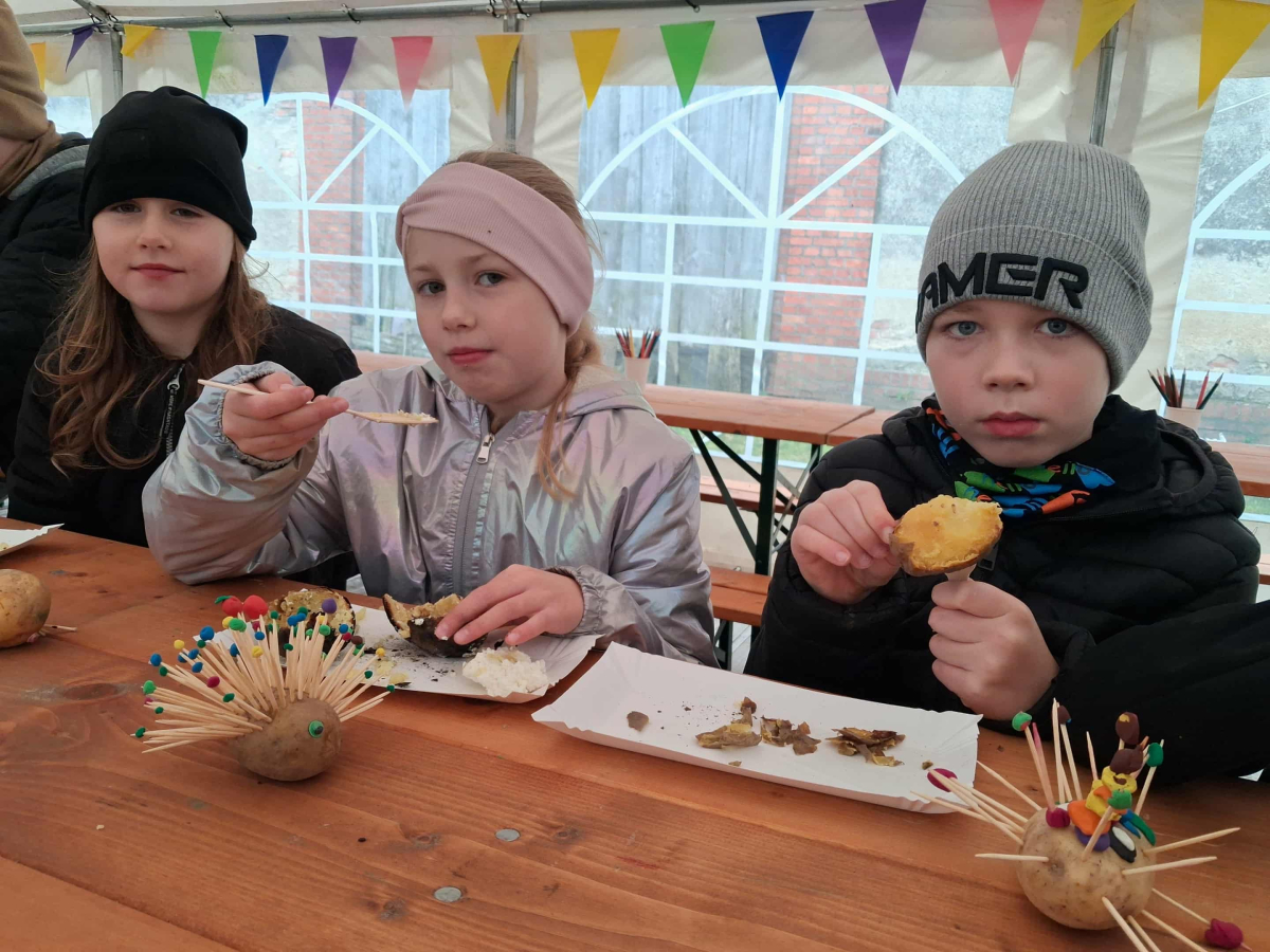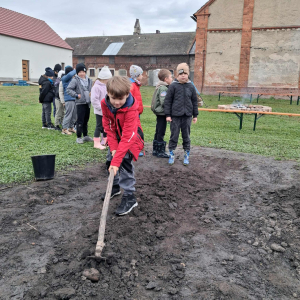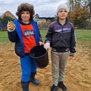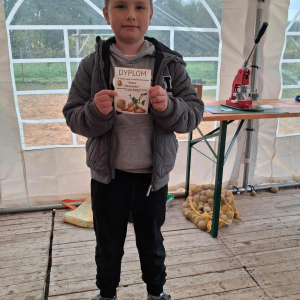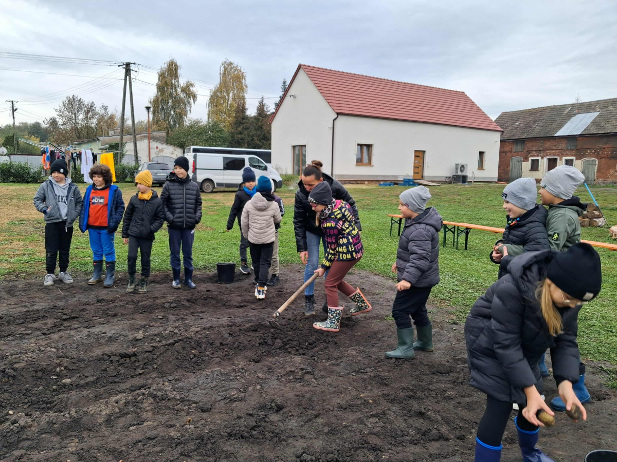 Dnia 22.10.2025r. klasy: 2b i 2e wyruszyły na jesienną wycieczkę do Czechnowa. Tematem przewodnim wyjazdu był "ziemniak". W trakcie wycieczki dzieci miały okazję zdobyć wiedzę na temat popularnego w Wielkopolsce warzywa, a także w praktyce przetestować zdobyte wiadomości. Były różnego rodzaju konkurencje sportowe z ziemniakami w roli głównej, popularne niegdyś "szkolne wykopki". Uczniowie mogli także samodzielnie przygotować i skosztować pieczonego w ognisku ziemniaka z tradycyjnym "gzikiem". Nie zabrakło również deseru, tj. słodkiej waty cukrowej. Na koniec wycieczki każde dziecko przygotowało kolorową przypinkę, która później ozdobiła ich ubrania, plecaki. Pełni wrażeń oraz nowych doświadczeń wróciliśmy do szkoły.