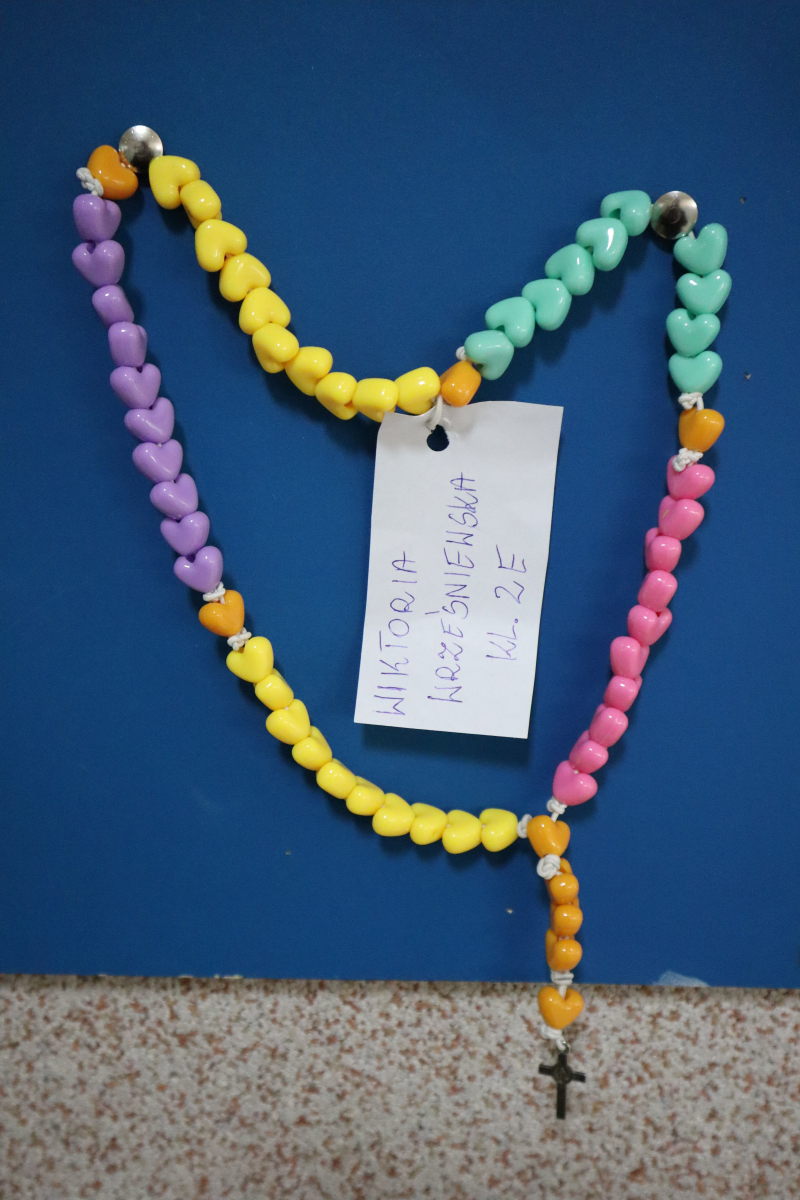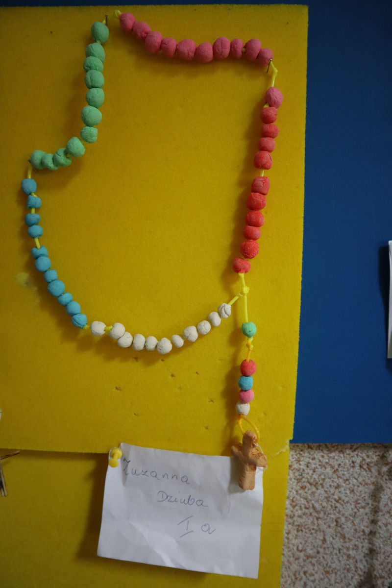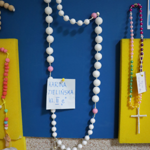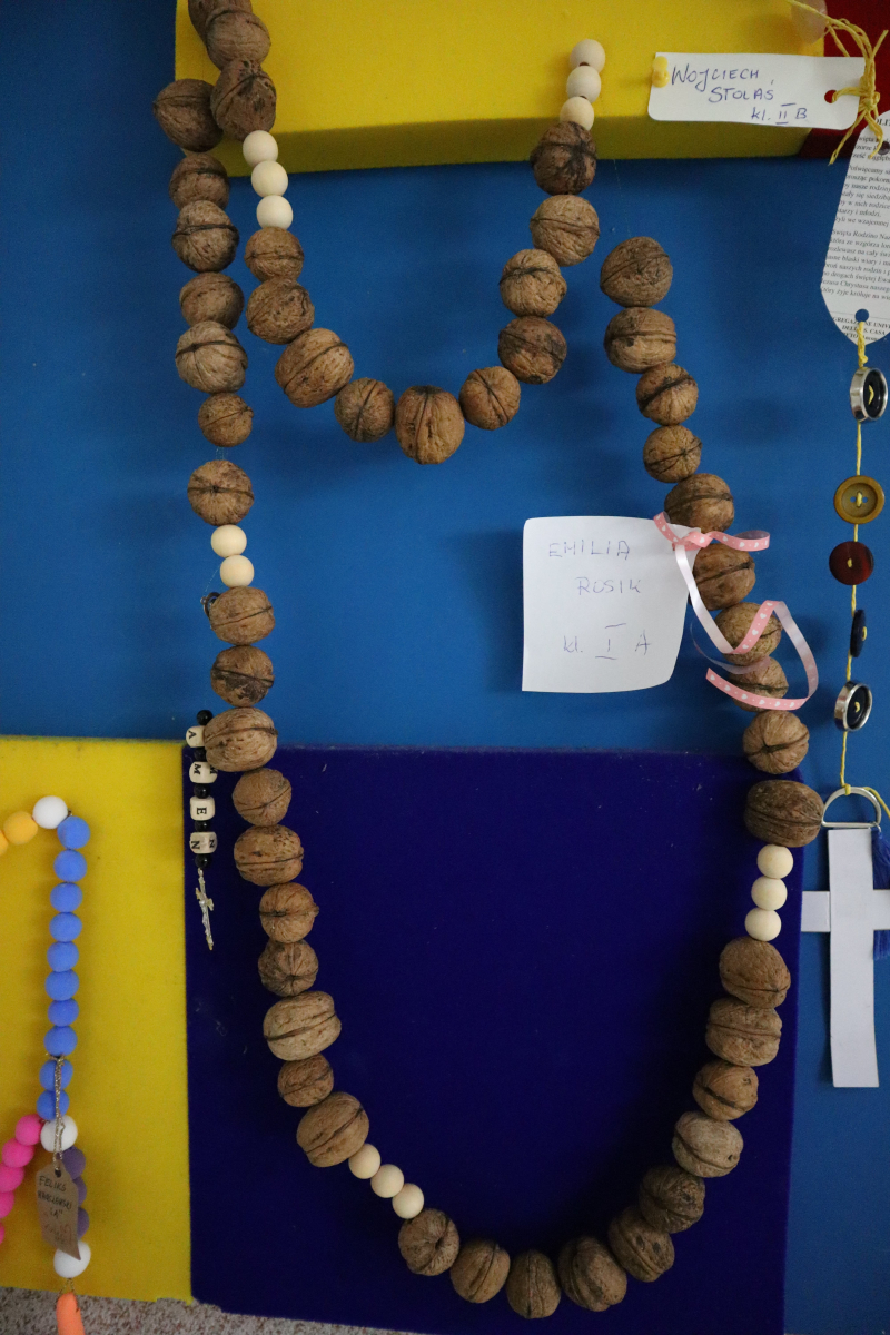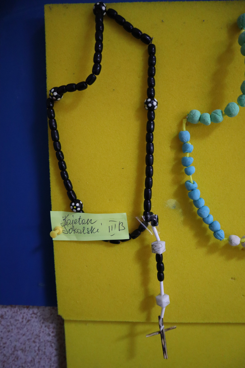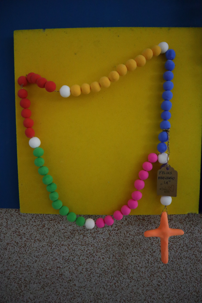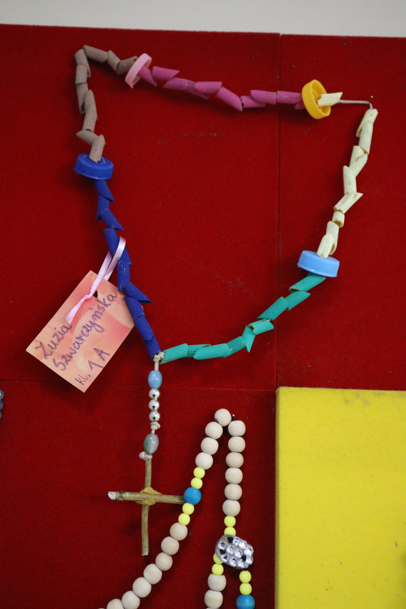 Od połowy października na gazetce przy sekretariacie zostały wyeksponowane kreatywne różańce wykonane przez chętnych uczniów. Technika i użyte materiały: chrupki, makaron, nakrętki, jarzębina, masa solna, cukierki, lizaki, modelina, plastelina i inne trudne do określenia surowce, świadczą o wielkiej kreatywności naszych uczniów. Każdy uczestnik otrzymał pamiątkowy dyplom i drobny upominek. Dziękujemy za podjęty wysiłek i ciekawe pomysły wykonania różańców.