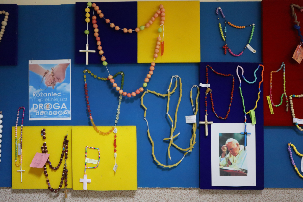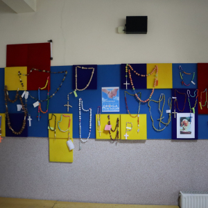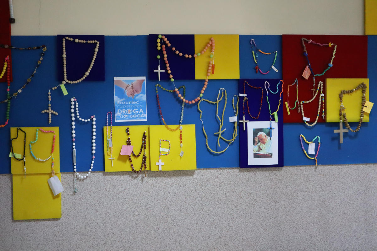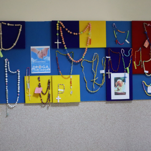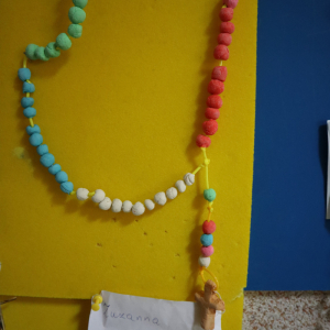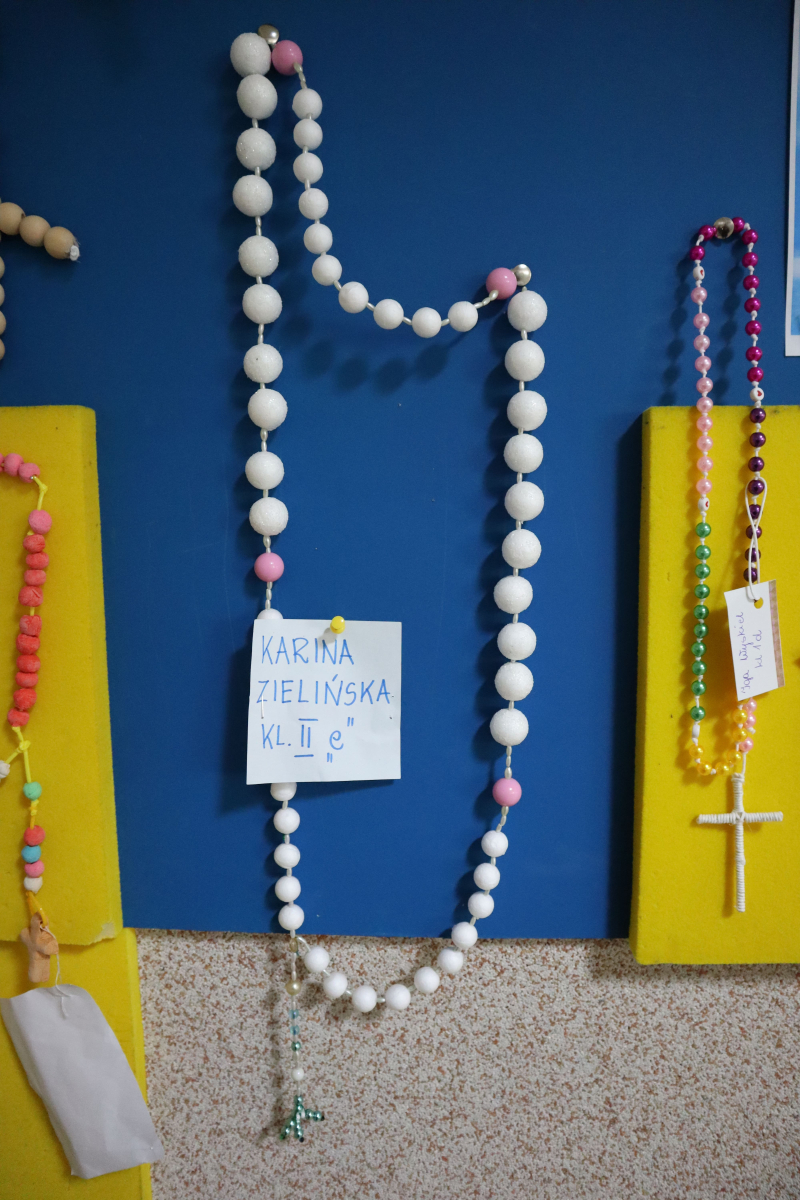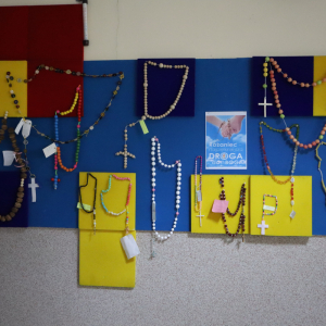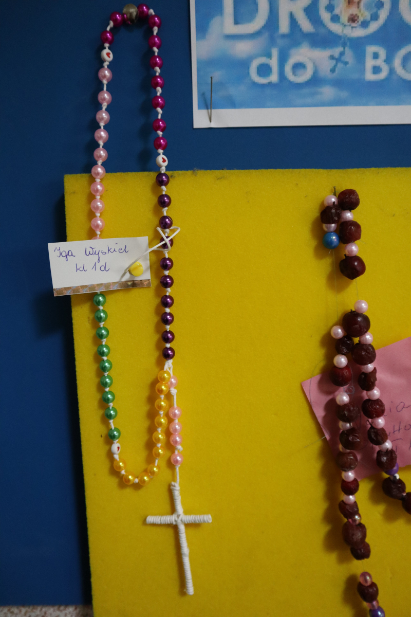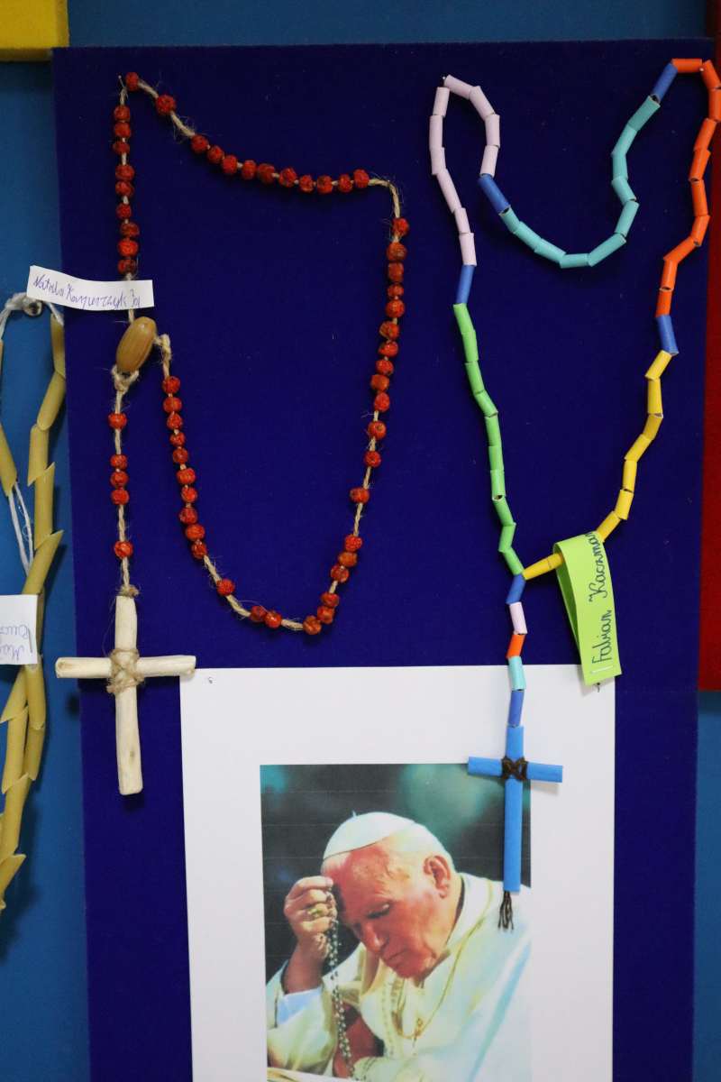 Od połowy października na gazetce przy sekretariacie zostały wyeksponowane kreatywne różańce wykonane przez chętnych uczniów. Technika i użyte materiały: chrupki, makaron, nakrętki, jarzębina, masa solna, cukierki, lizaki, modelina, plastelina i inne trudne do określenia surowce, świadczą o wielkiej kreatywności naszych uczniów. Każdy uczestnik otrzymał pamiątkowy dyplom i drobny upominek. Dziękujemy za podjęty wysiłek i ciekawe pomysły wykonania różańców.