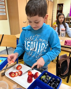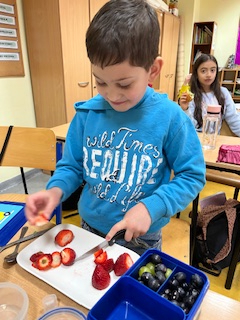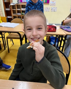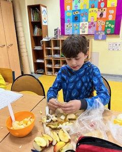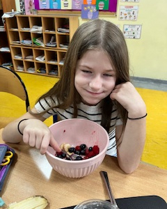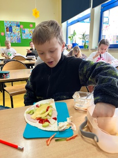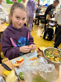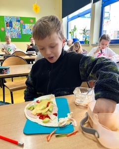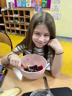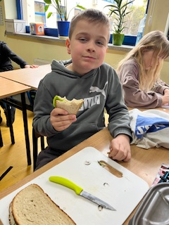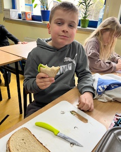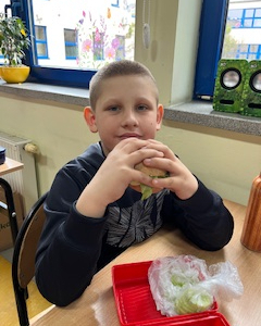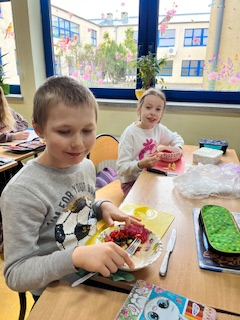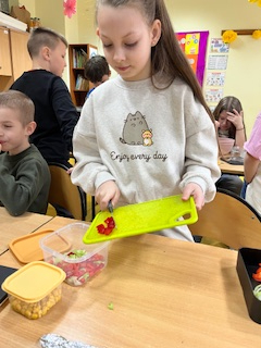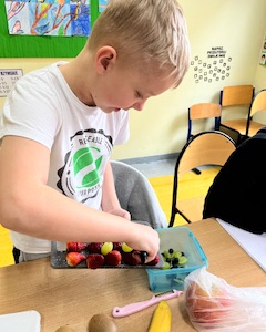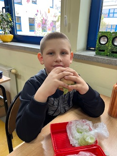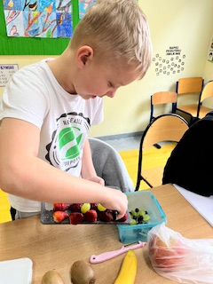 Następnie, korzystając z przygotowanych przez siebie przepisów, uczniowie przystąpili do działania i wykonali swoje zdrowe śniadania krok po kroku według własnych wskazówek.
